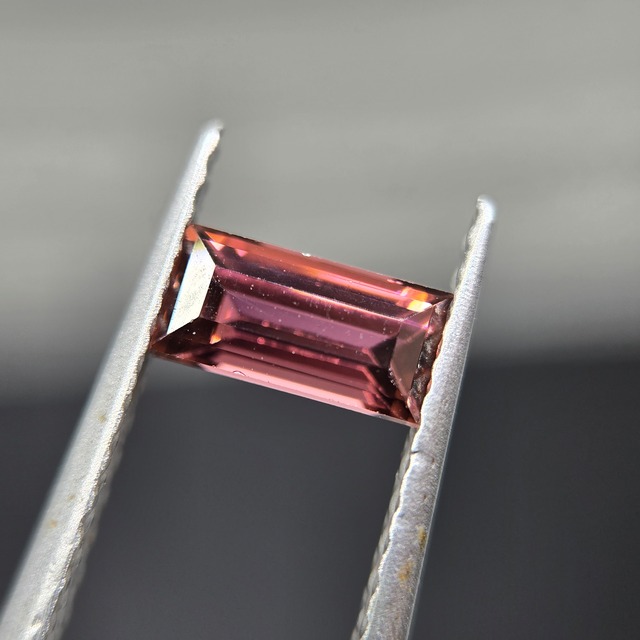 天然トルマリン 0.542カラット バケット 6.2×3.6×2.8㎜ 【コメント】 深みのあるピンク、オレンジ、紫、赤が混ざった色です。 長方形の中に光を反射して煌めく姿が魅力でもあります。 写真一枚目にありますように、ファセットエッジ部分に微細な欠けがございます。 その他肉眼ではとらえることのできない微細な傷などはございます。 販売開始日:2025.10.6