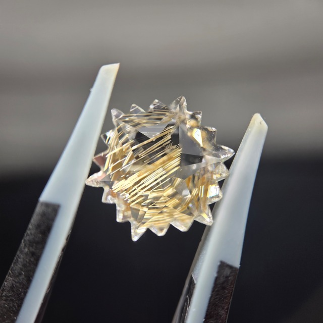 天然クォーツ ルチルクォーツ 4.483カラット ヘキサゴン、ファンシーカット、特殊カット 12.0×10.5×7.4㎜ 【コメント】 光が当たった時のルチルの煌めきとそれを包み込む透明度の高いクォーツが魅力の石です。 販売開始日:2025.12.17