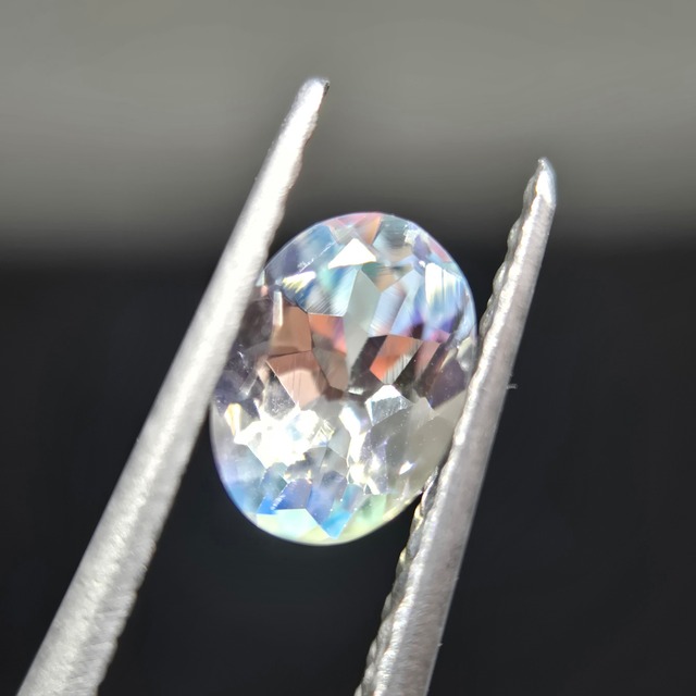 天然フェルスパー 1.797カラット オーバル 9.4×7.0×4.9㎜ 産地:マダガスカル 【コメント】 テーブルのシラーはオレンジと黄緑のバイカラー風で、見方によってはクラウンの青色とあわせてトリカラー風にも見える、少し個性的なフェルスパーです。 内包物少なく、透明度の高いピースです。 販売開始日:2025.12.7