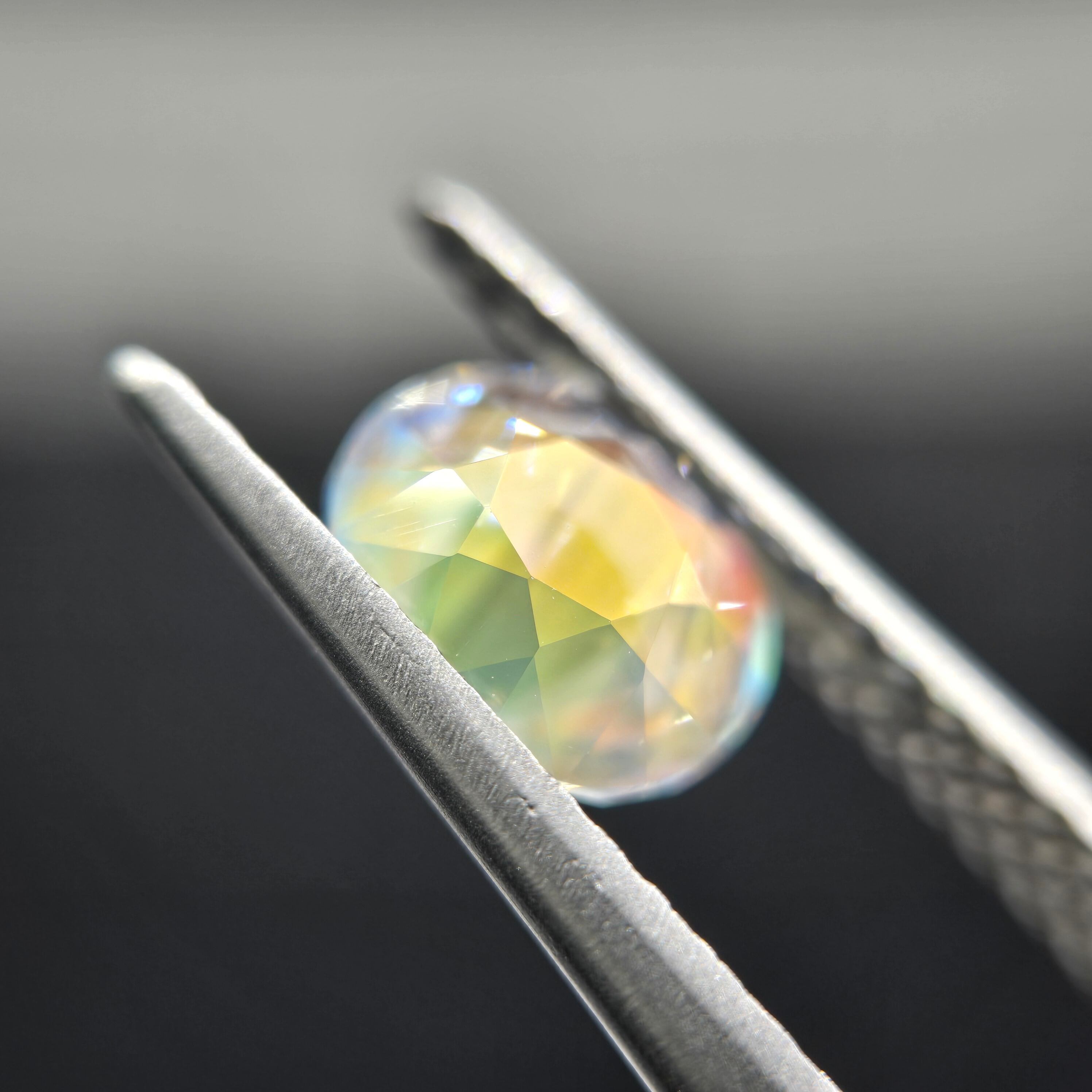 1カラットアッブの重さと、様々な色のシラーが見えるピース。