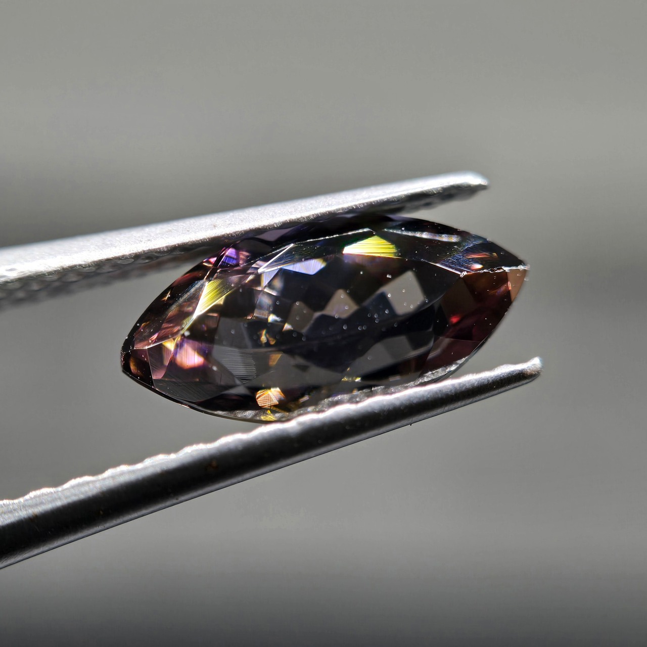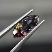 ソーティングでは色の表記はブラウン・ピンク紫とあります。褐色メインですが、先端部の色溜まりでは、見方によっては赤みも見ることができ、複雑な色を呈しております。