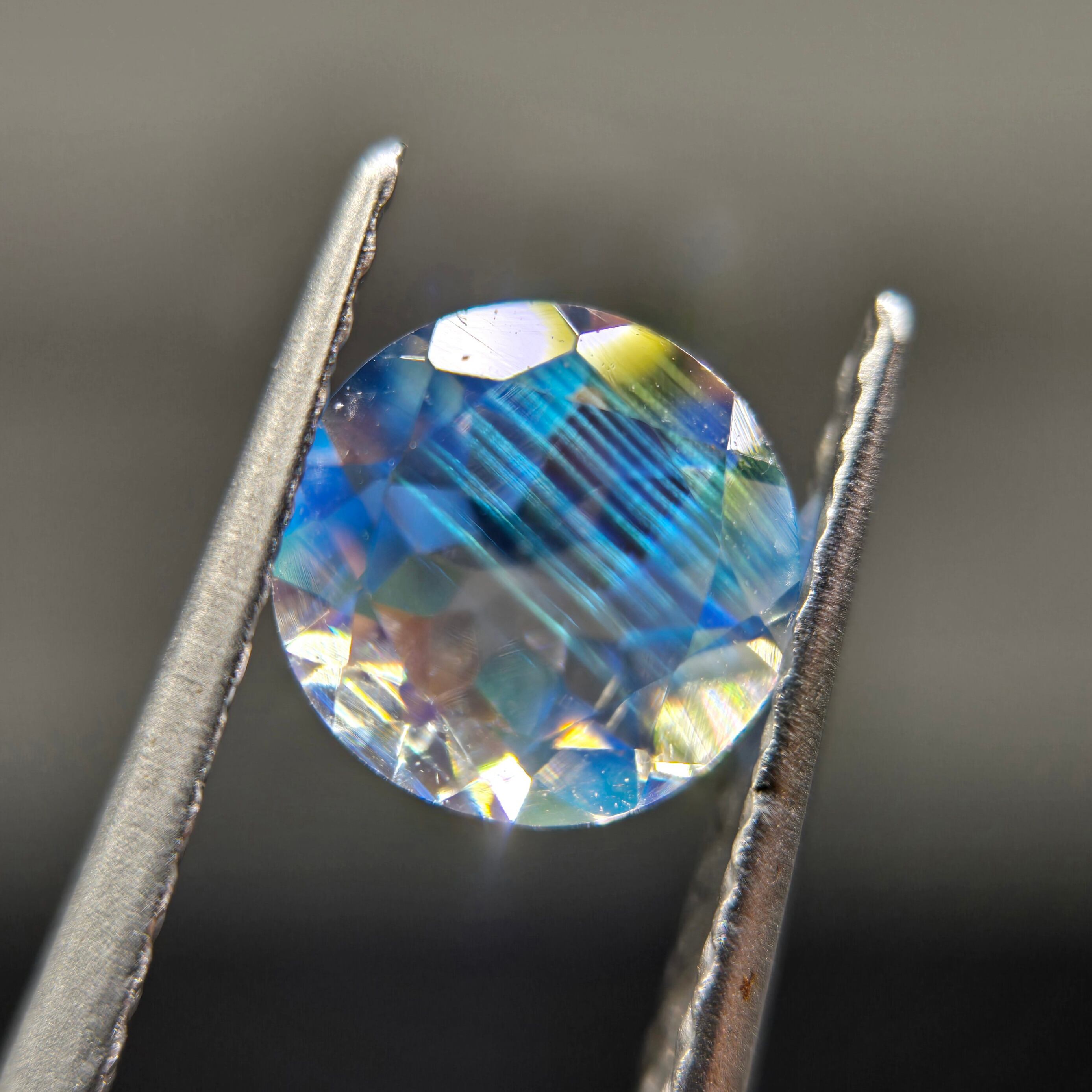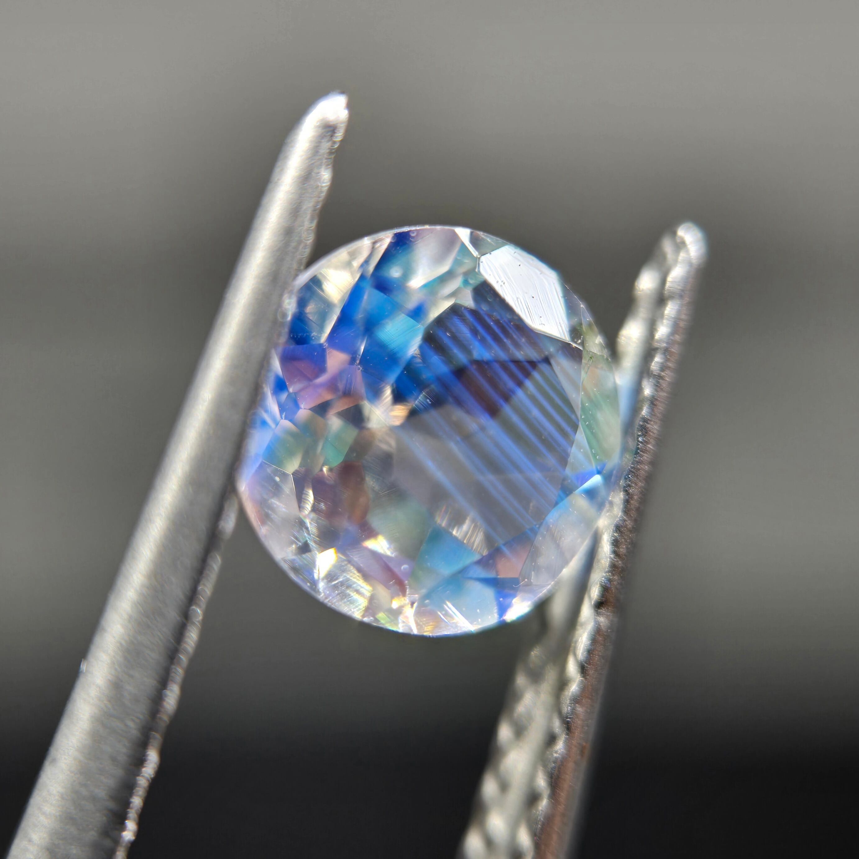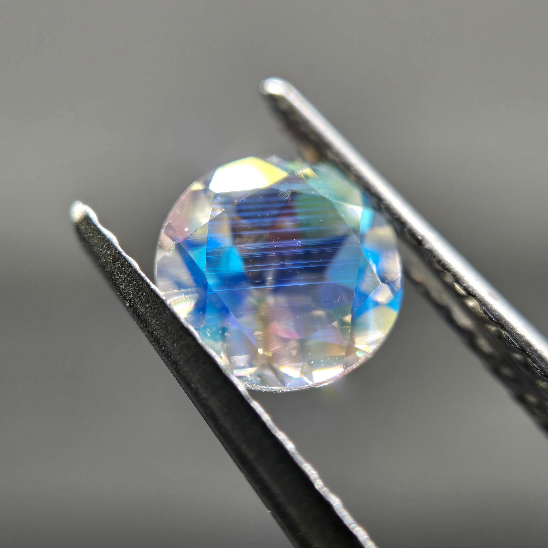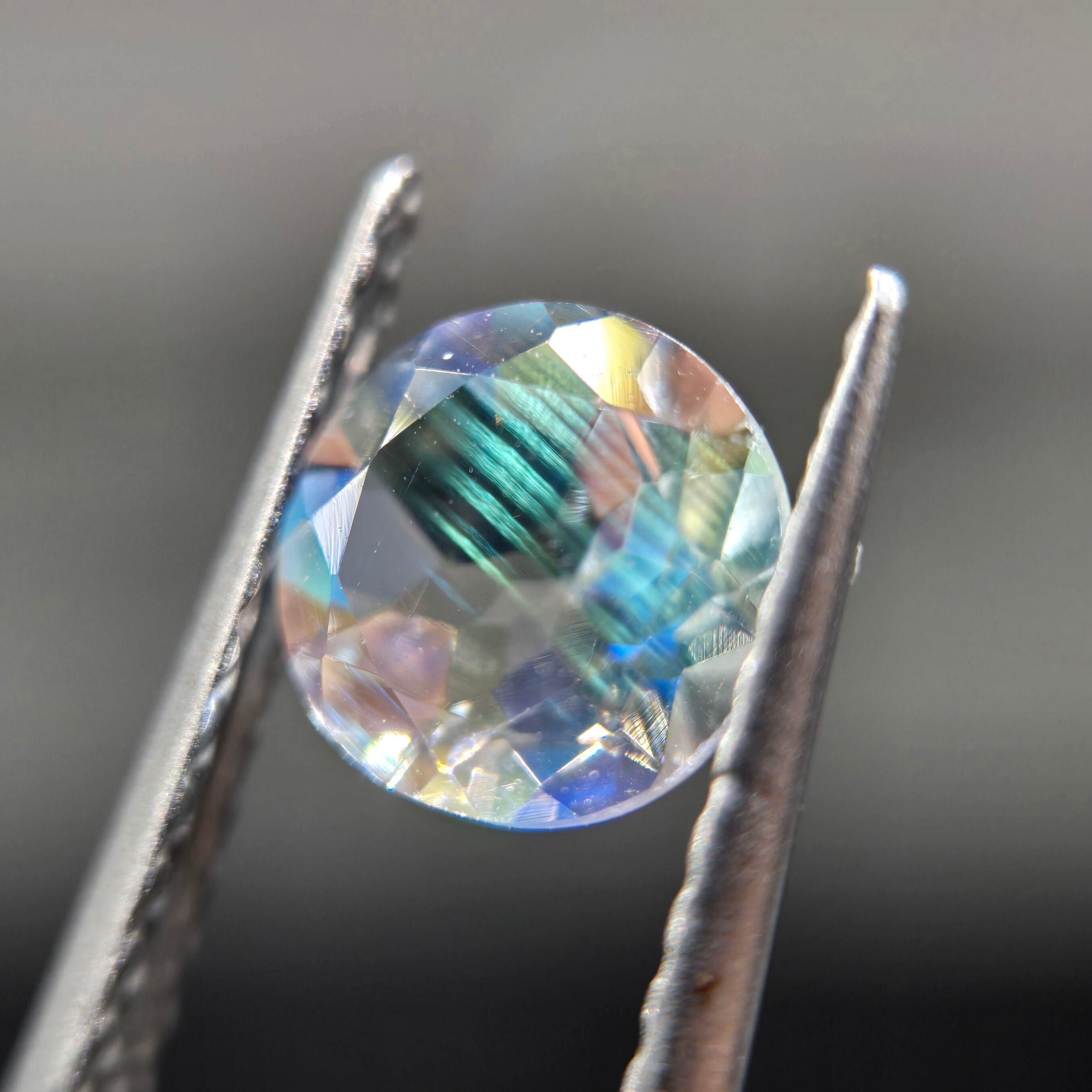 テーブルには目立ったシラーはございませんが、透明感と、ファセットに細かいシラーが映し出されます。