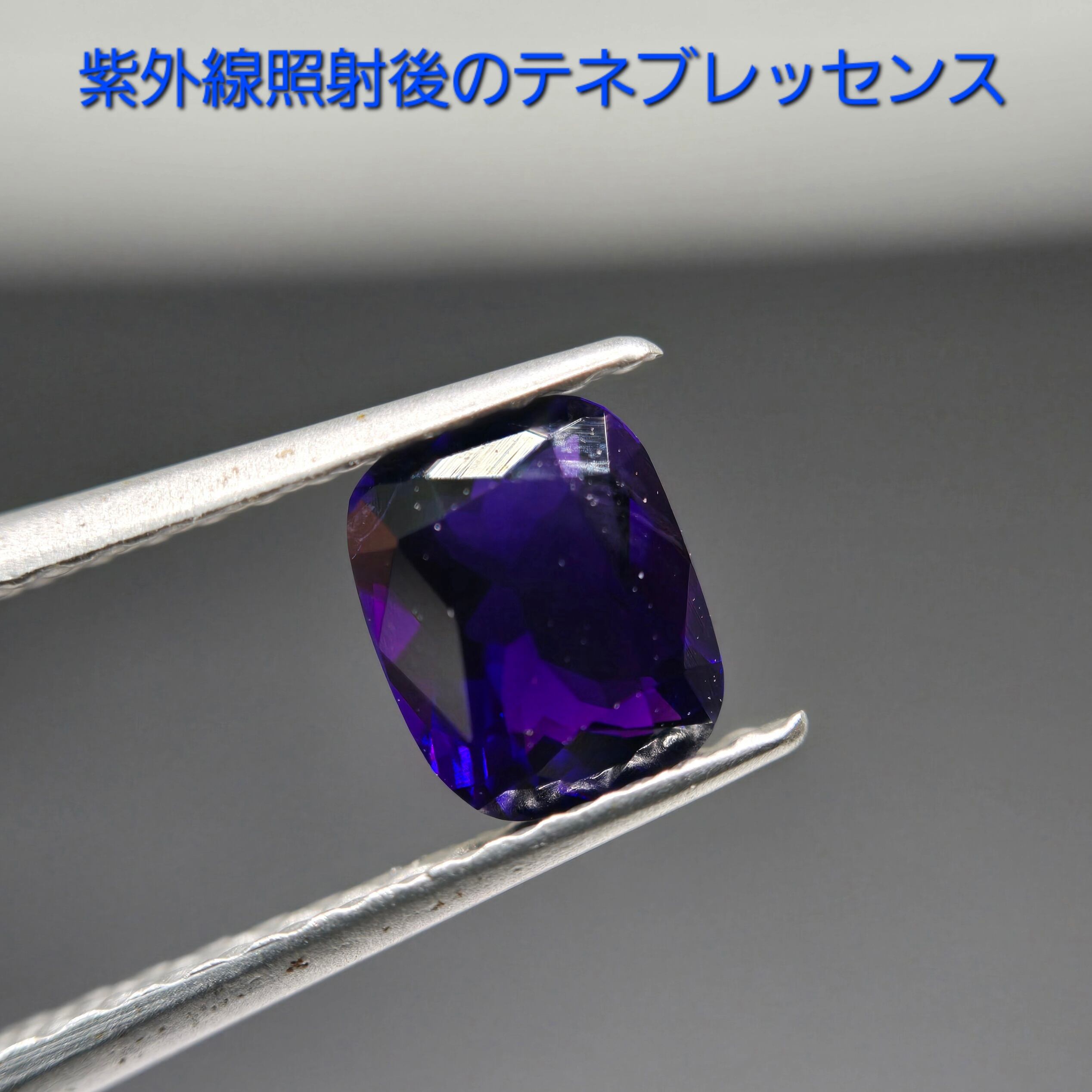 ・こちらのハックマナイトは濃い紫色から数秒間の紫外線照射により濃い青色(紺色)となり、時間と共に再び紫色に戻ります。
