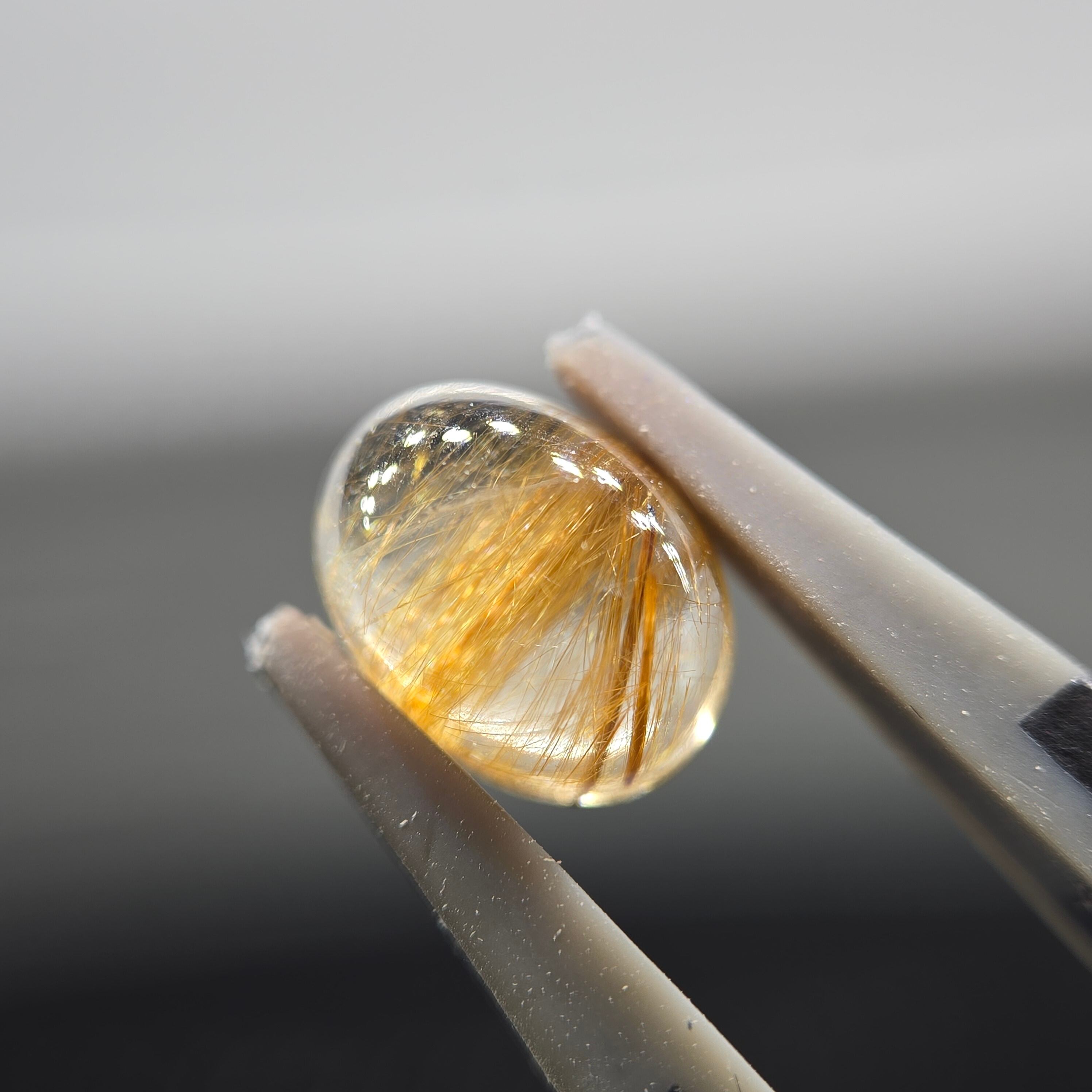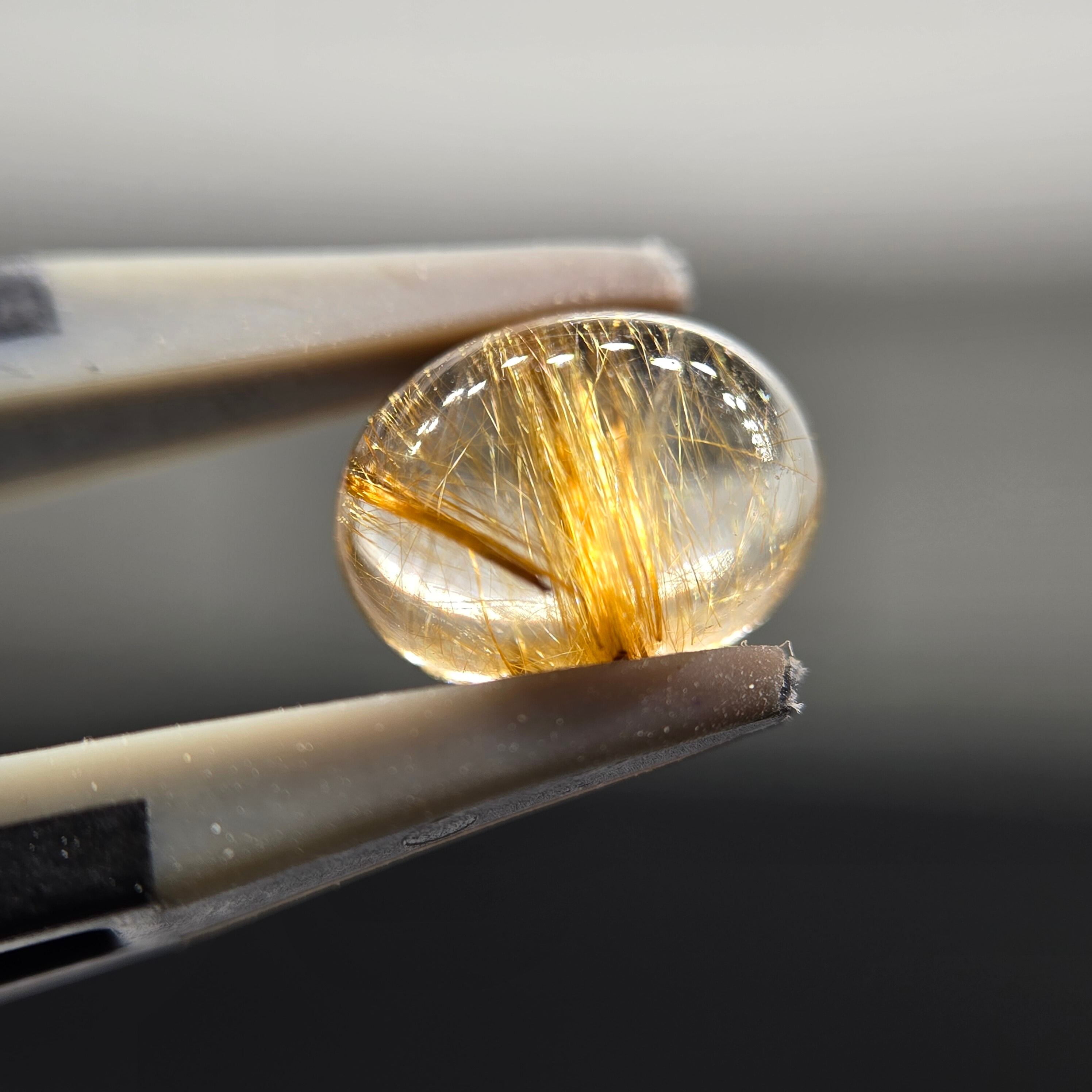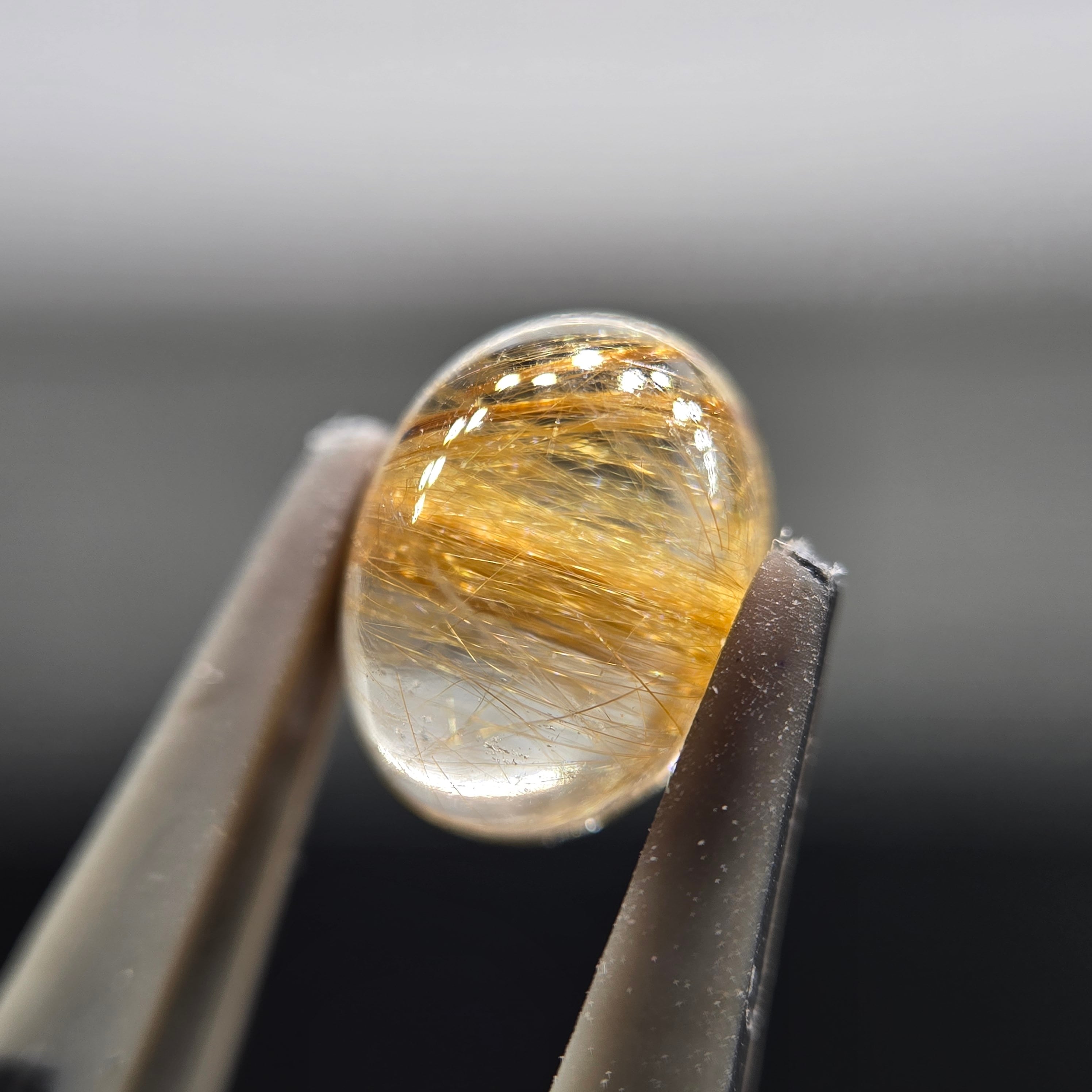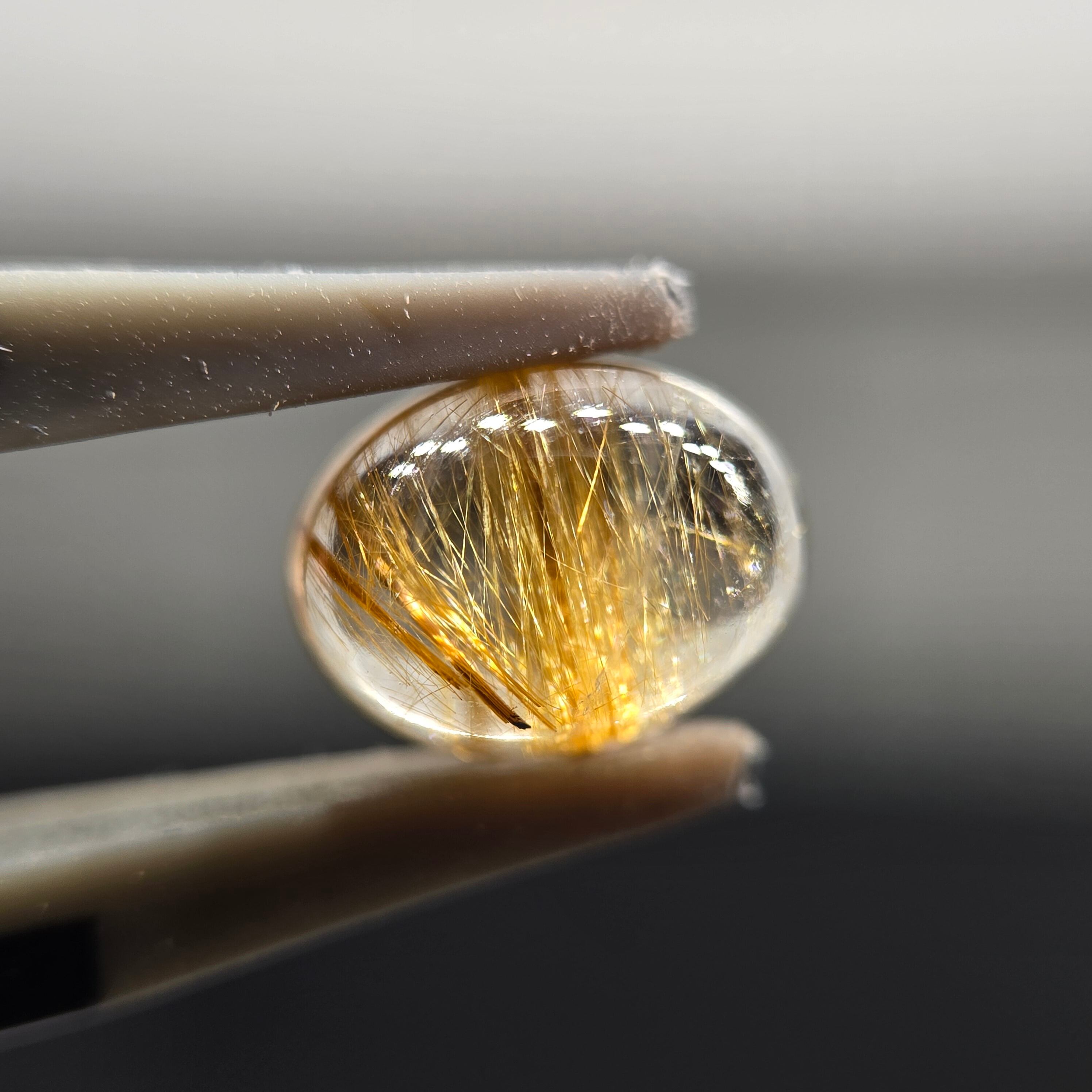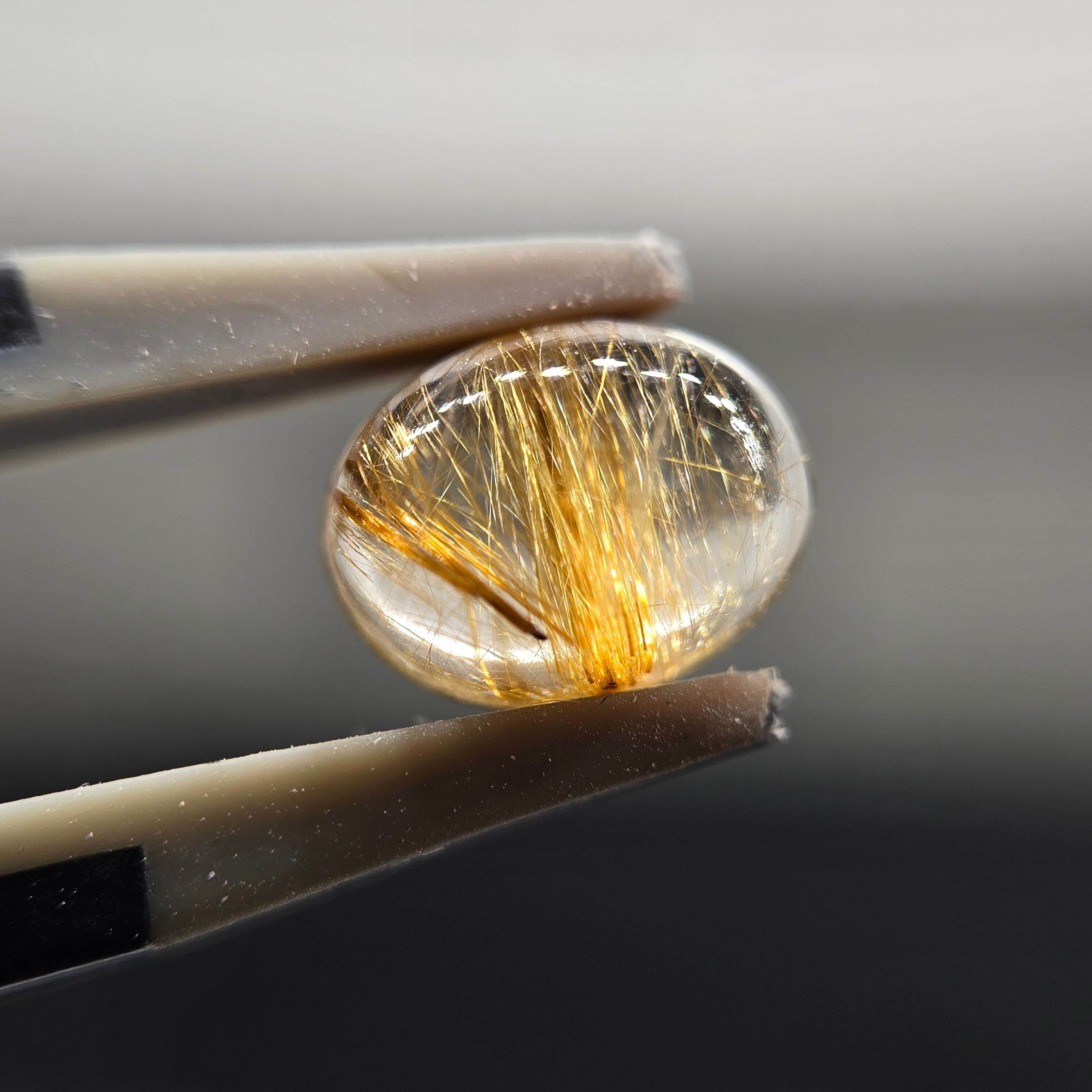 光に当てた際に金色に輝くルチル、細かい針状のインクルージョンの観察が楽しめます。