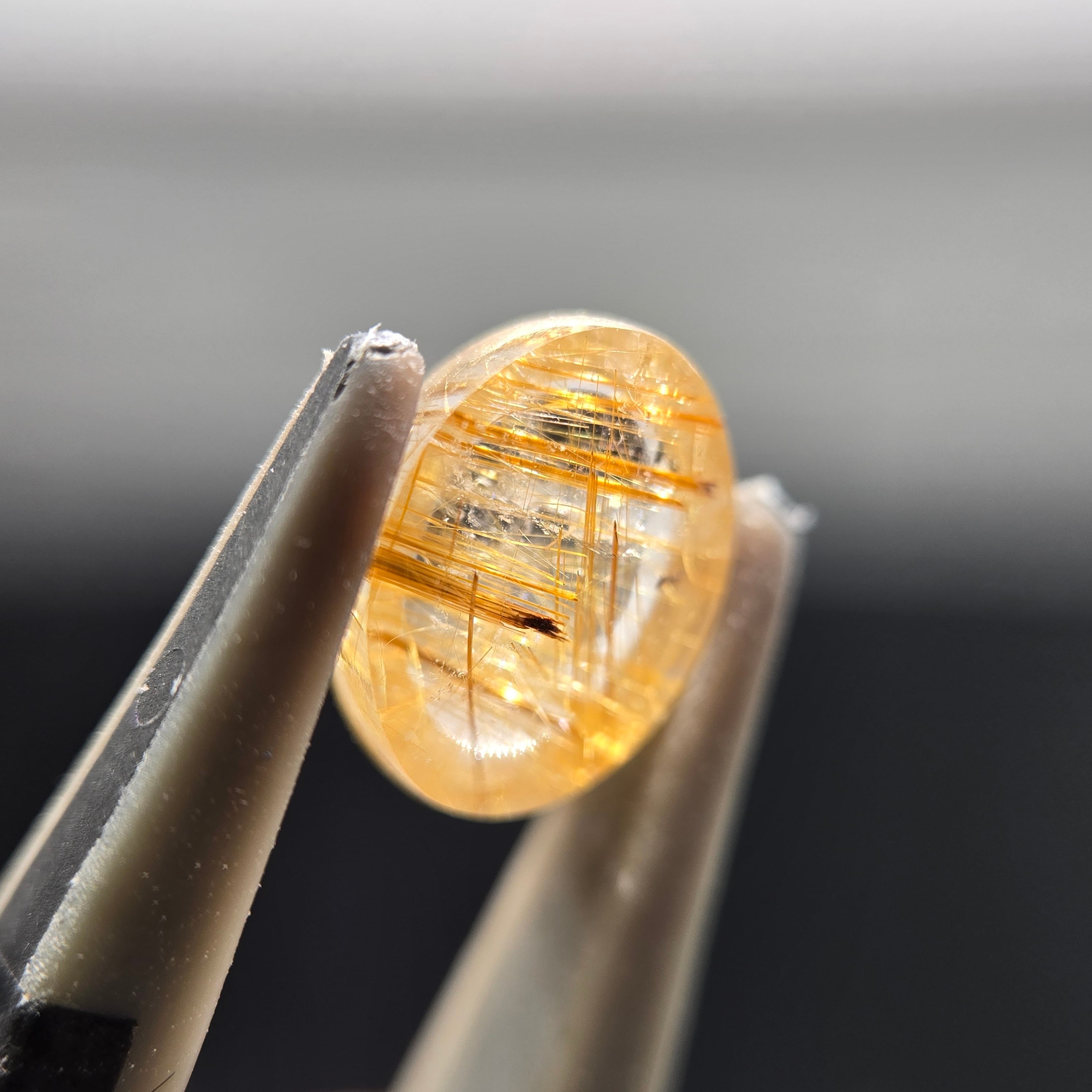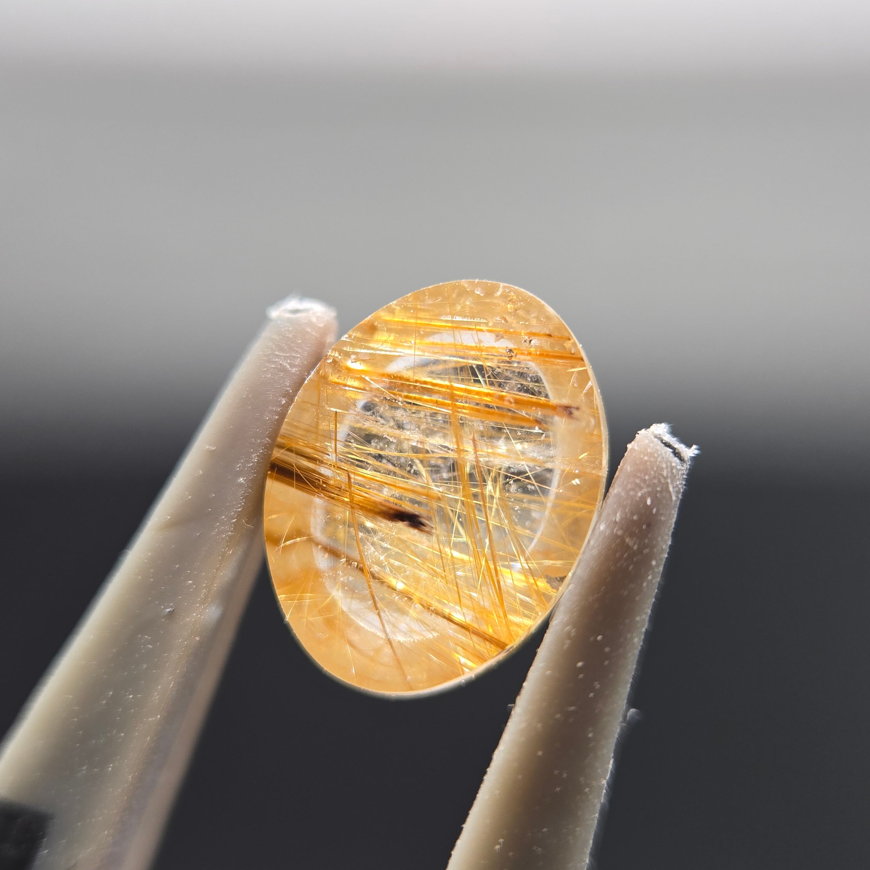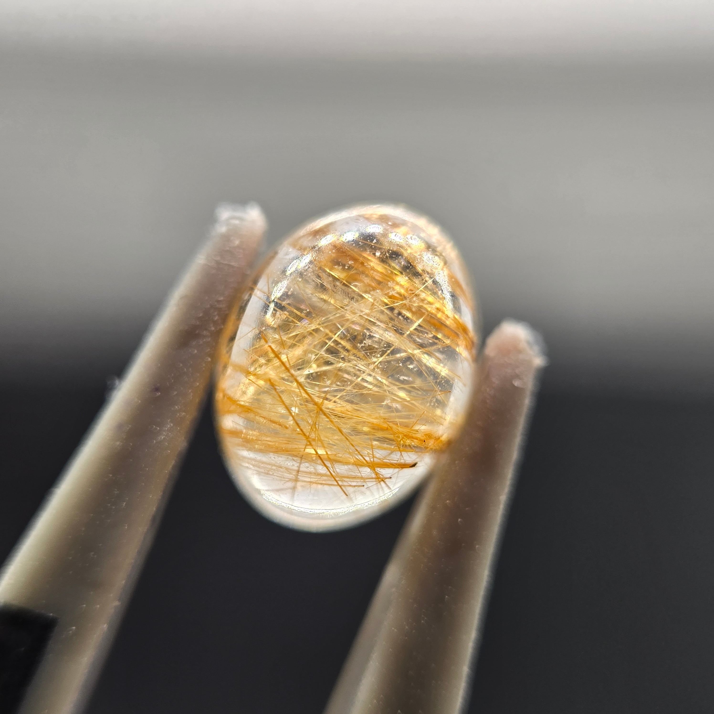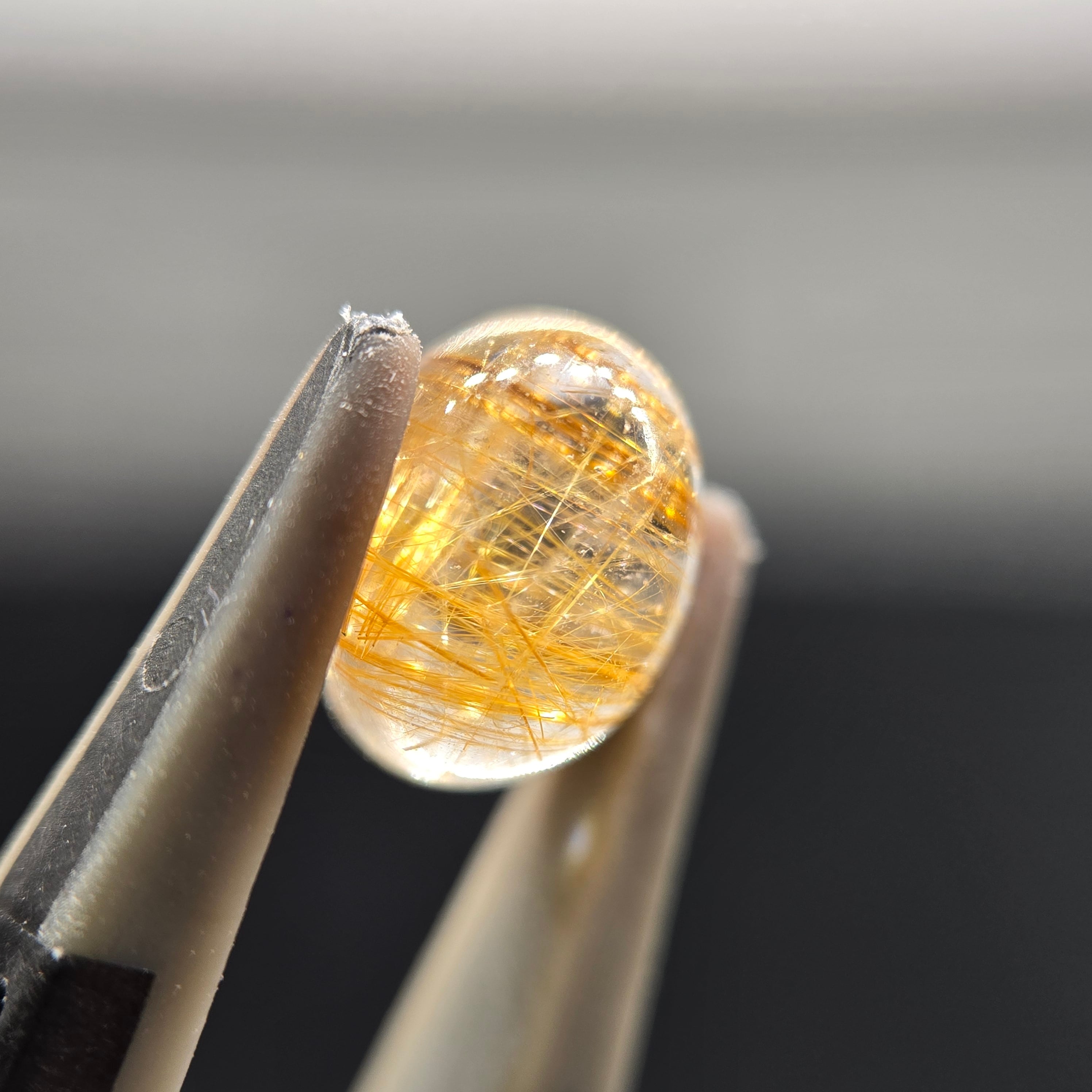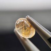 光に当てた際に金色に輝くルチル、細かい針状のインクルージョンの観察が楽しめます。