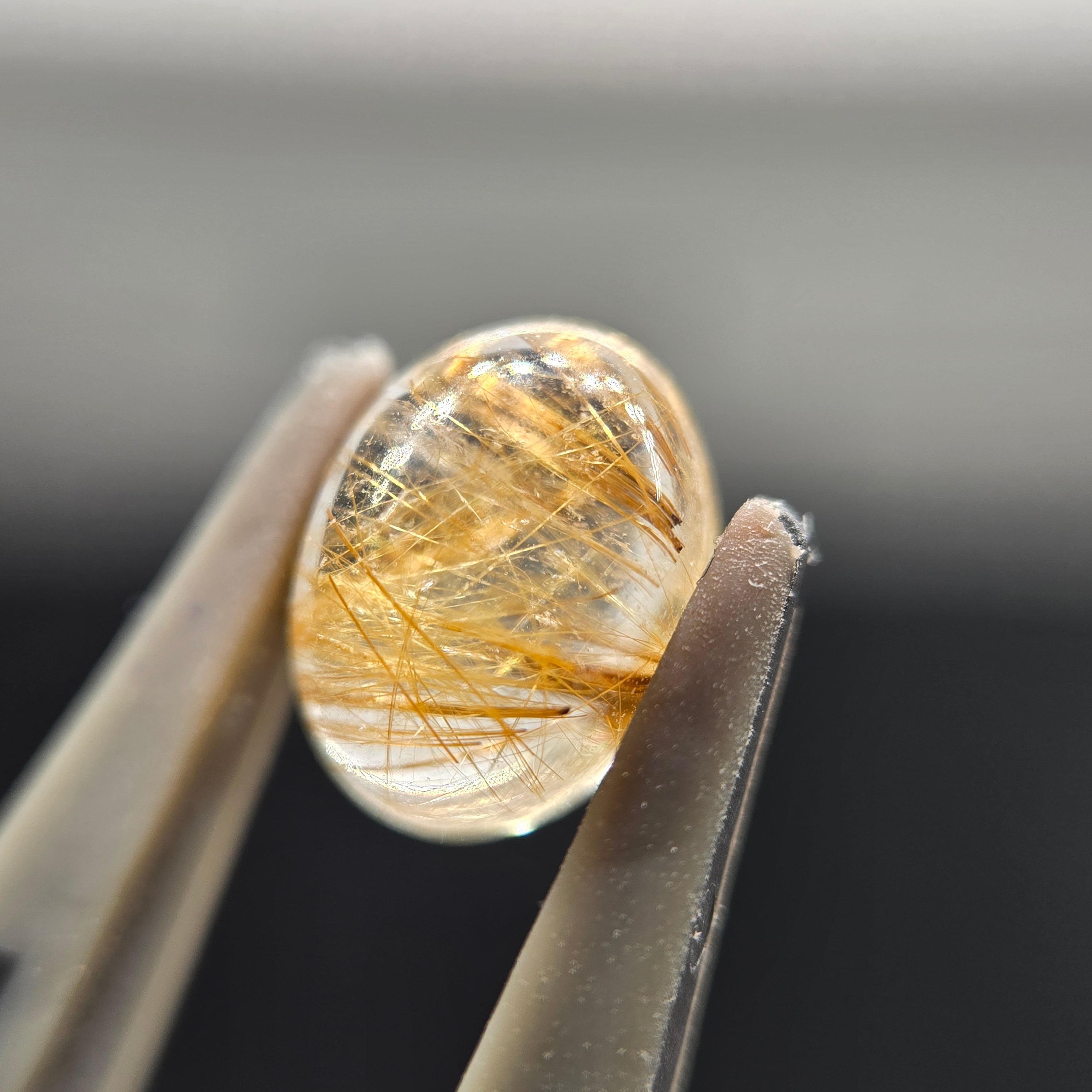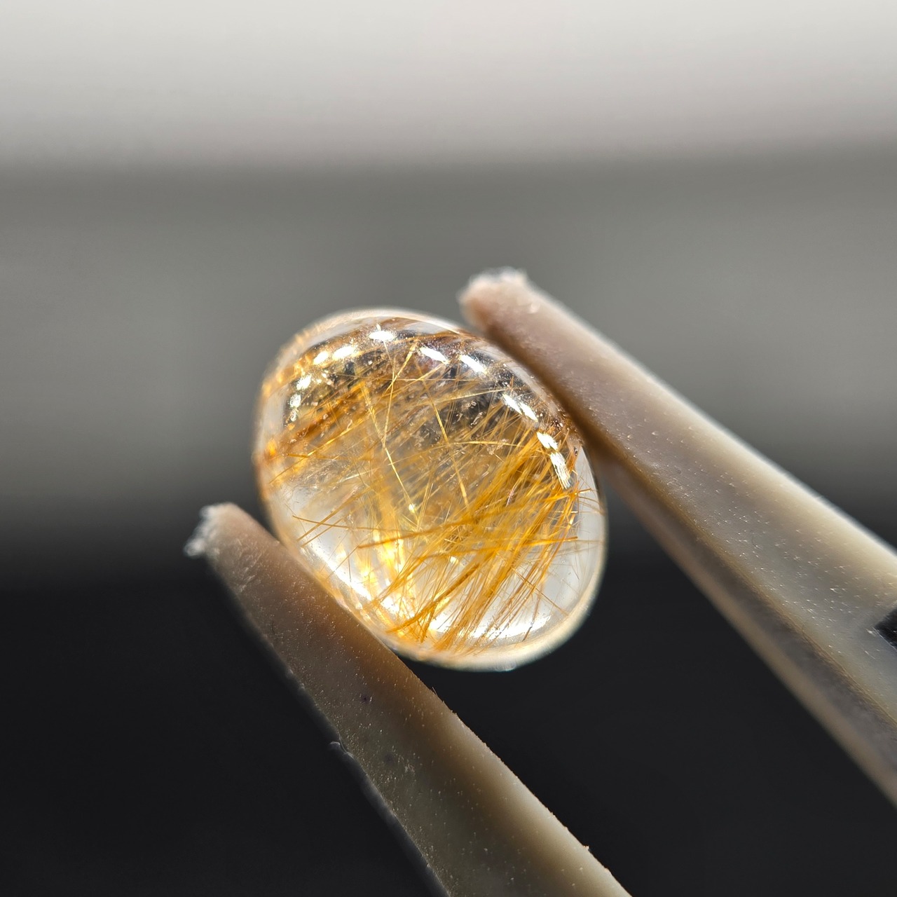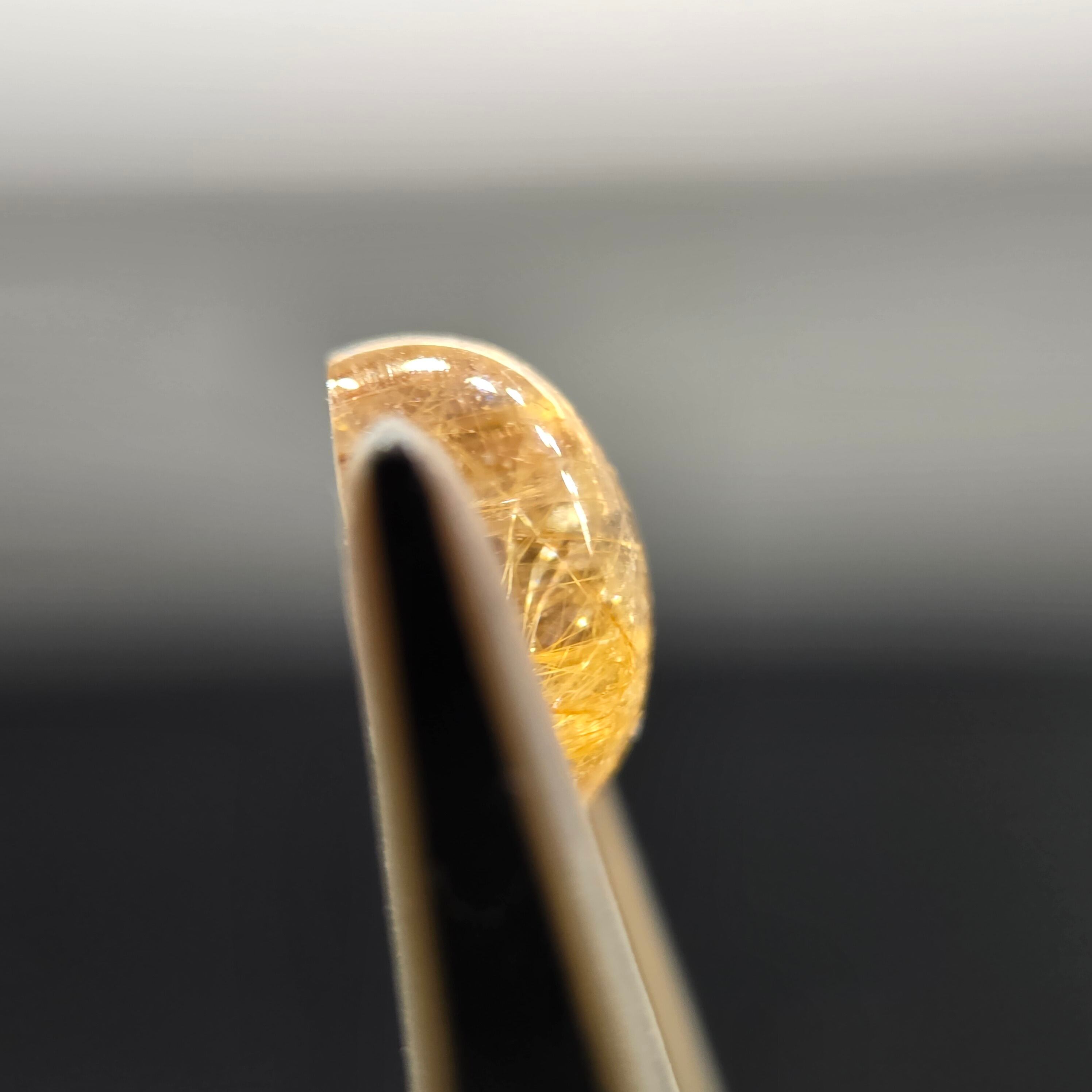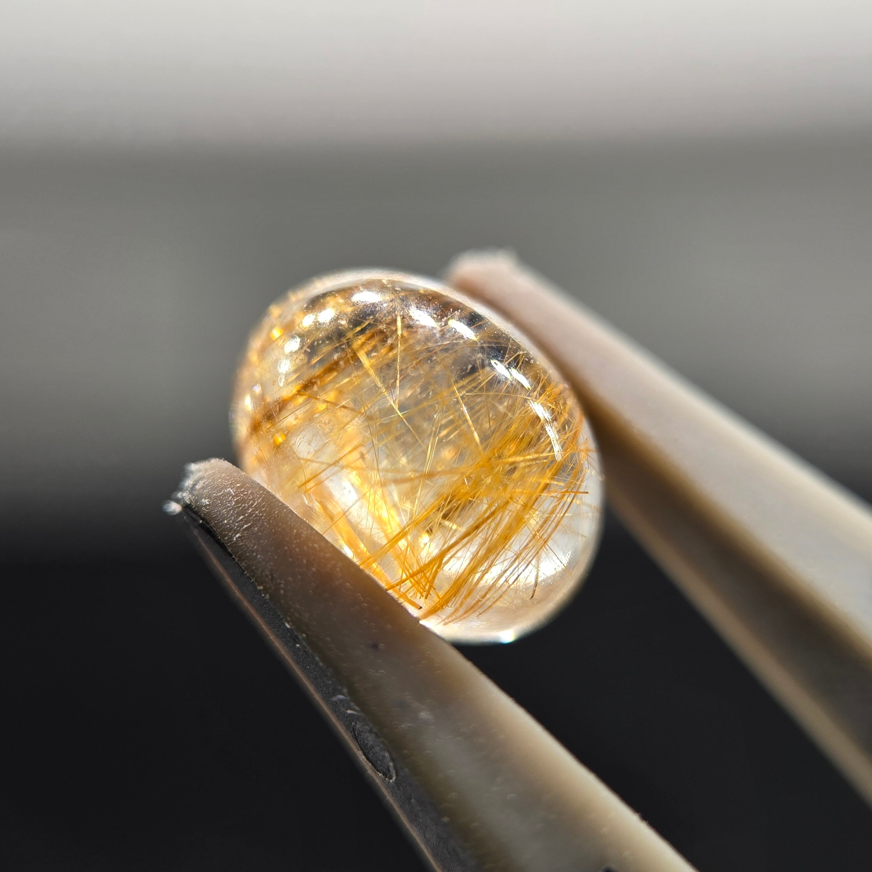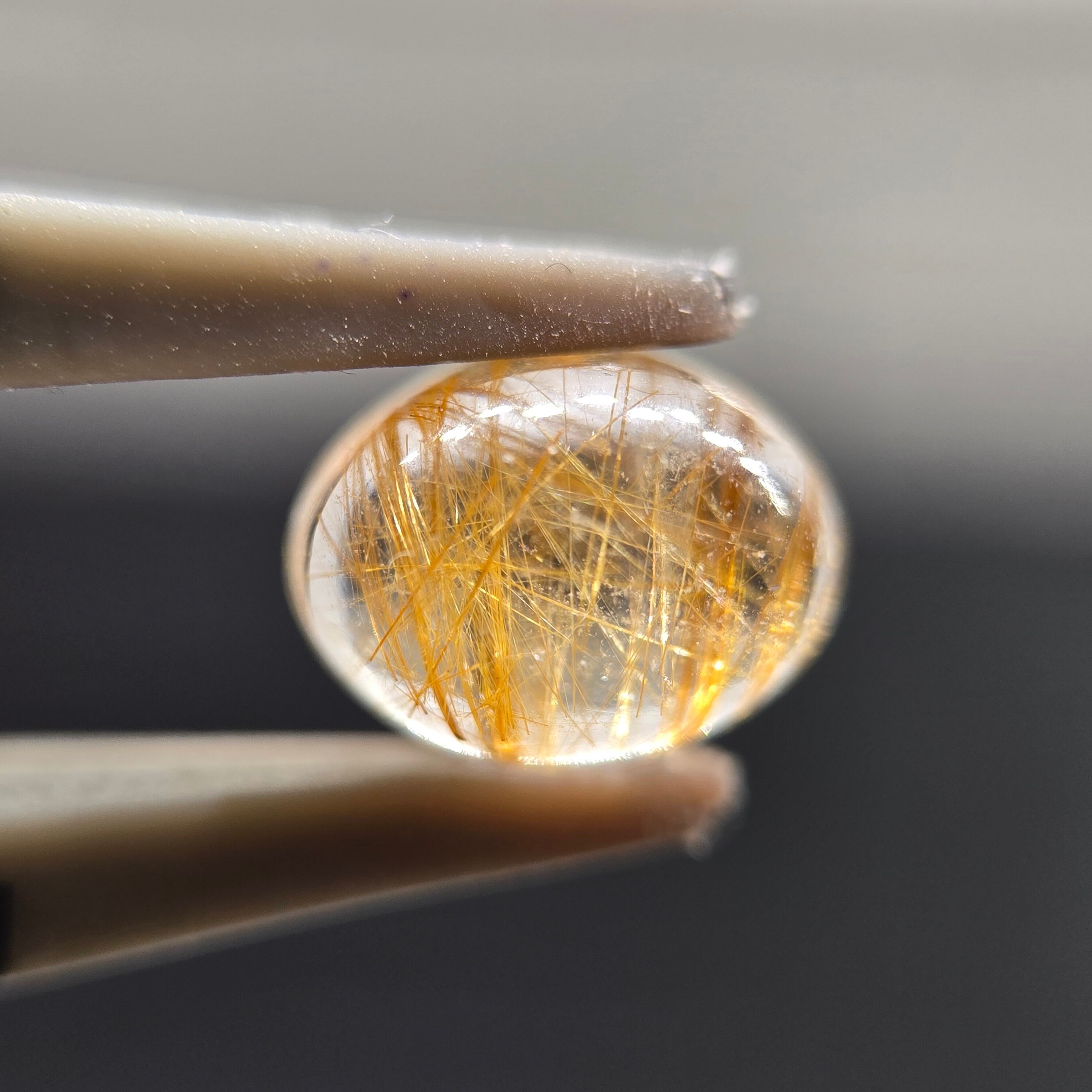 光に当てた際に金色に輝くルチル、細かい針状のインクルージョンの観察が楽しめます。