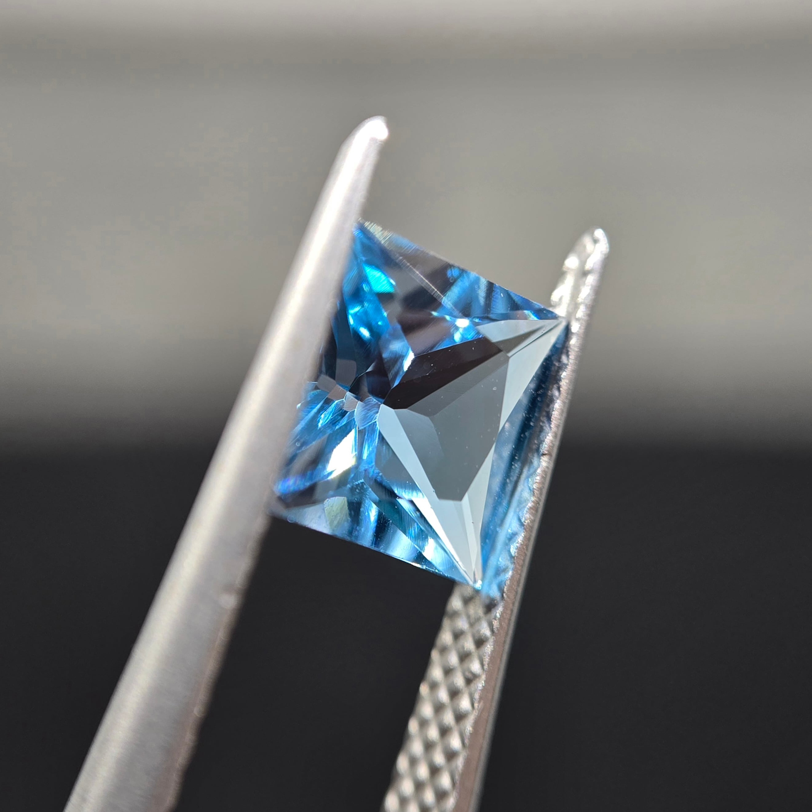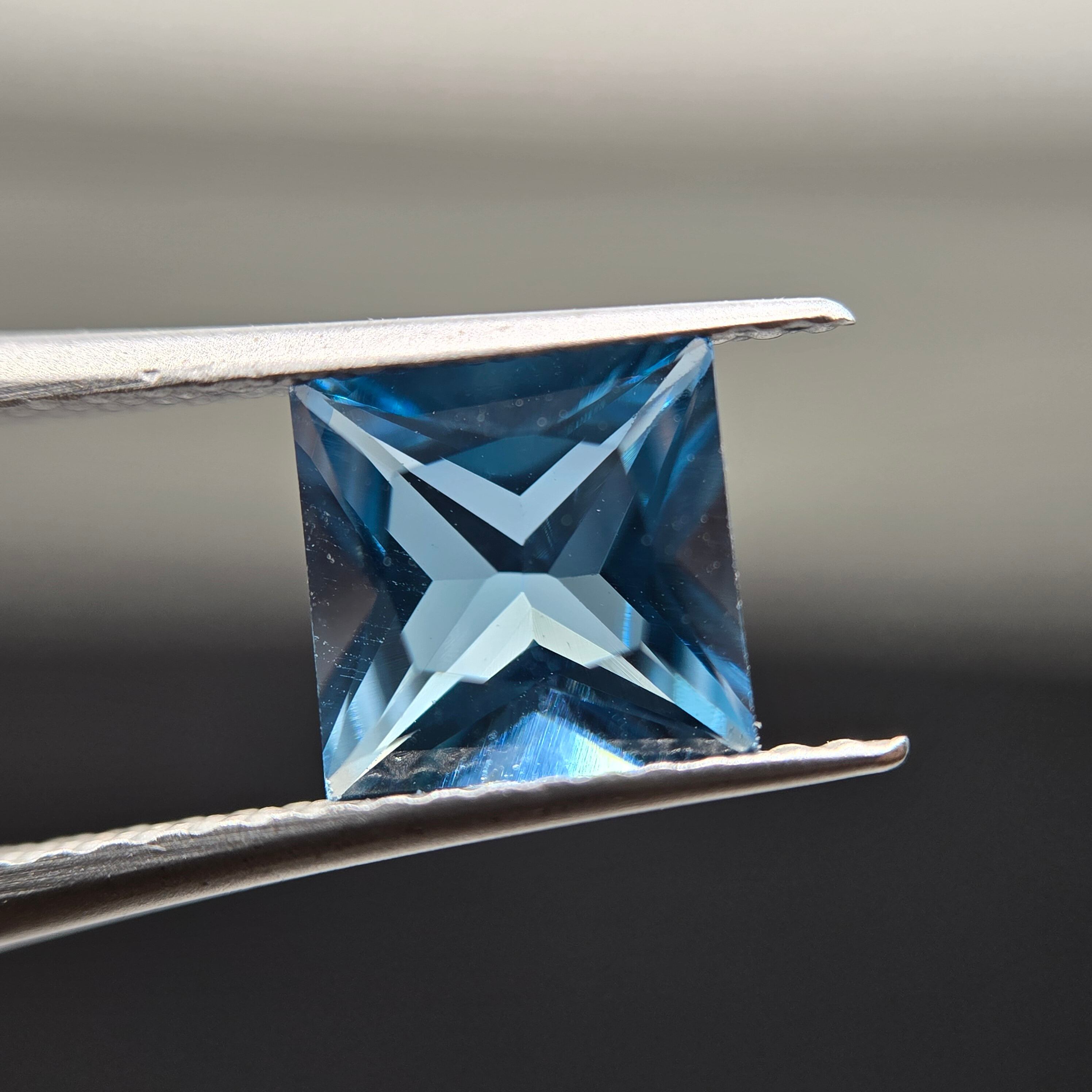 色はスイスブルートパーズよりも濃いロンドンブルートパーズ寄りの色。明るい青色ではございません。