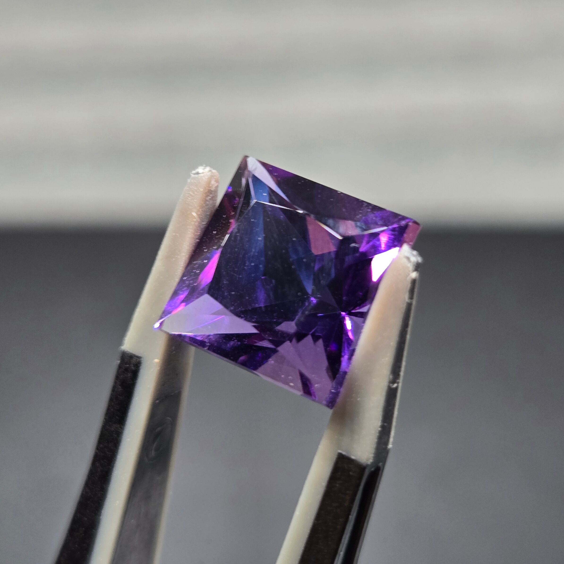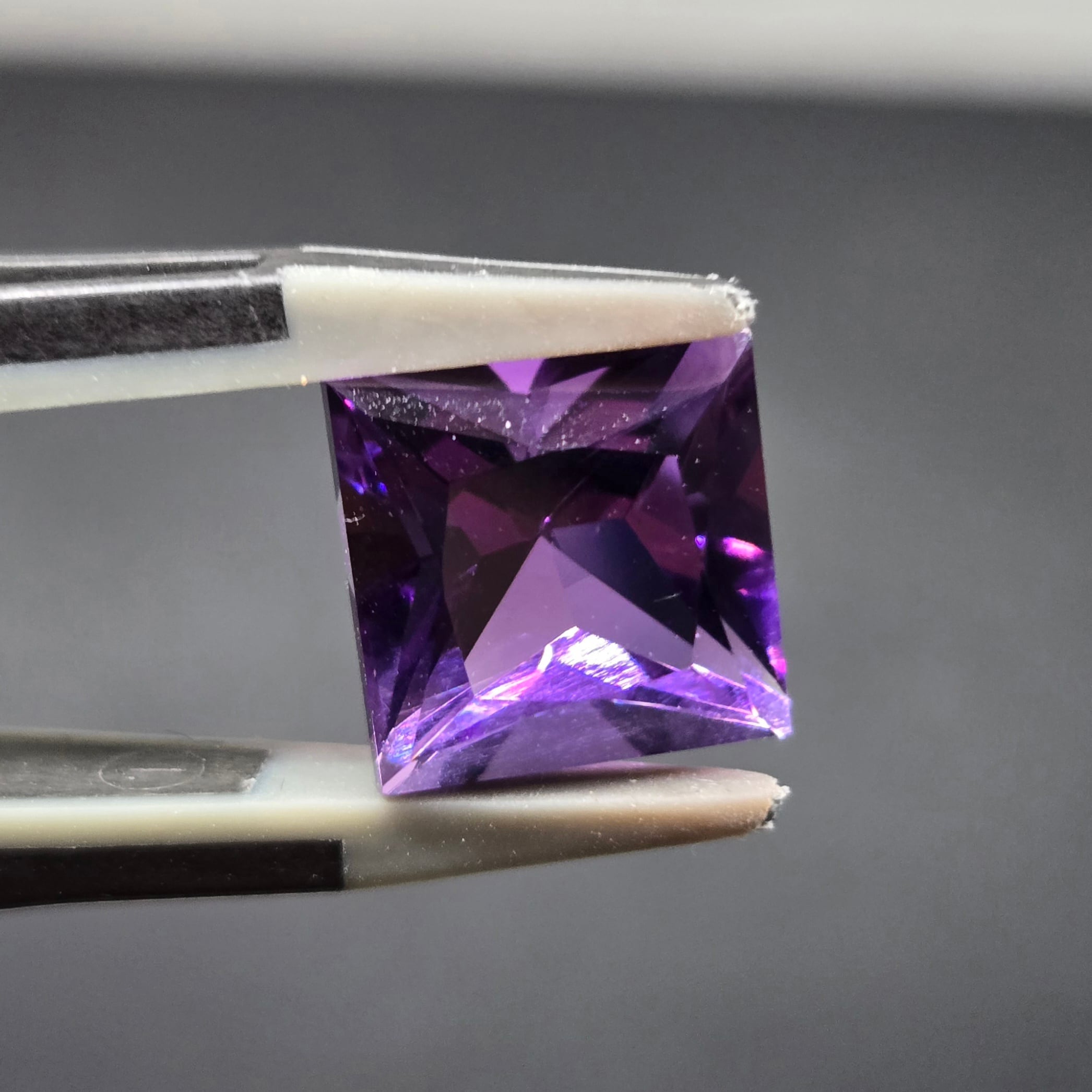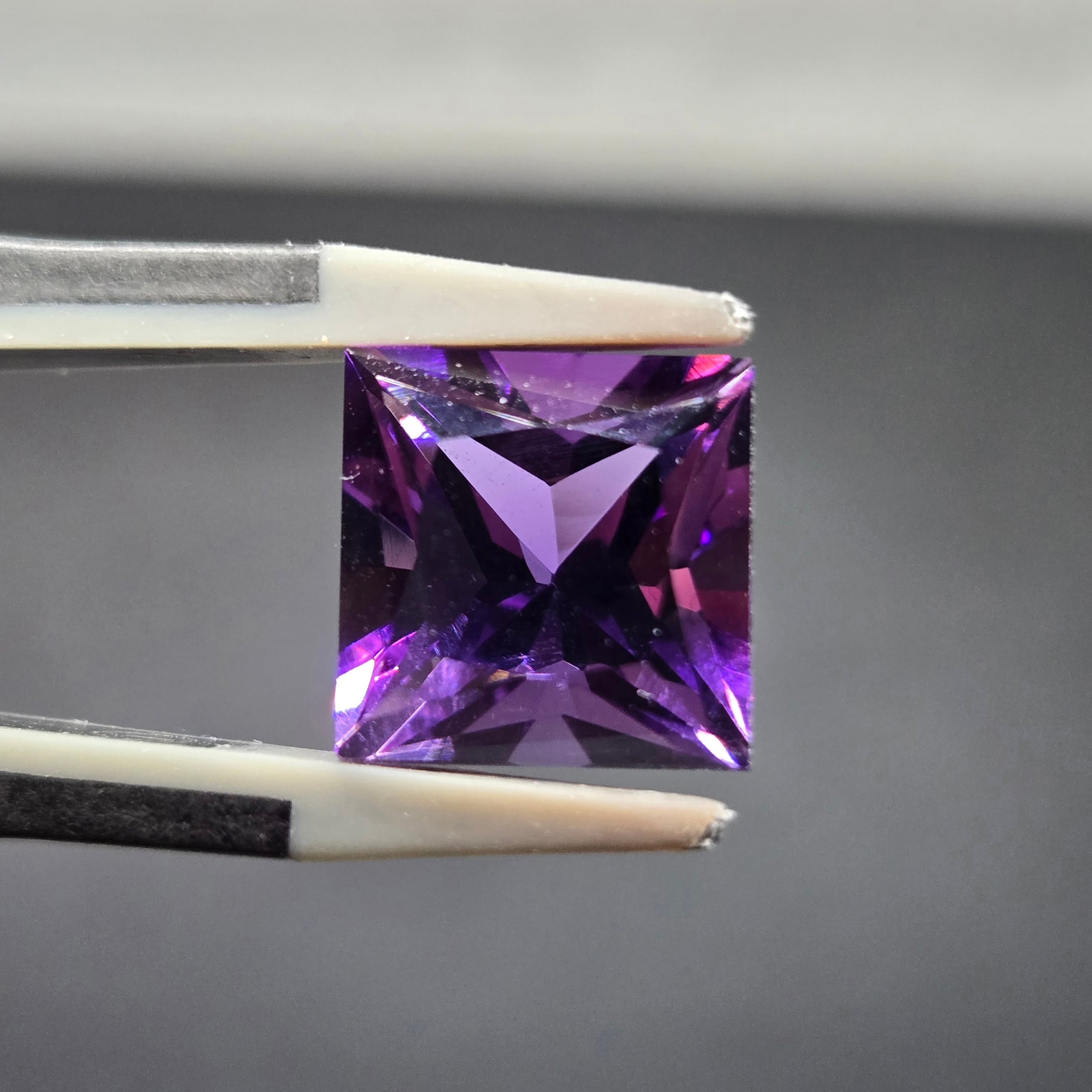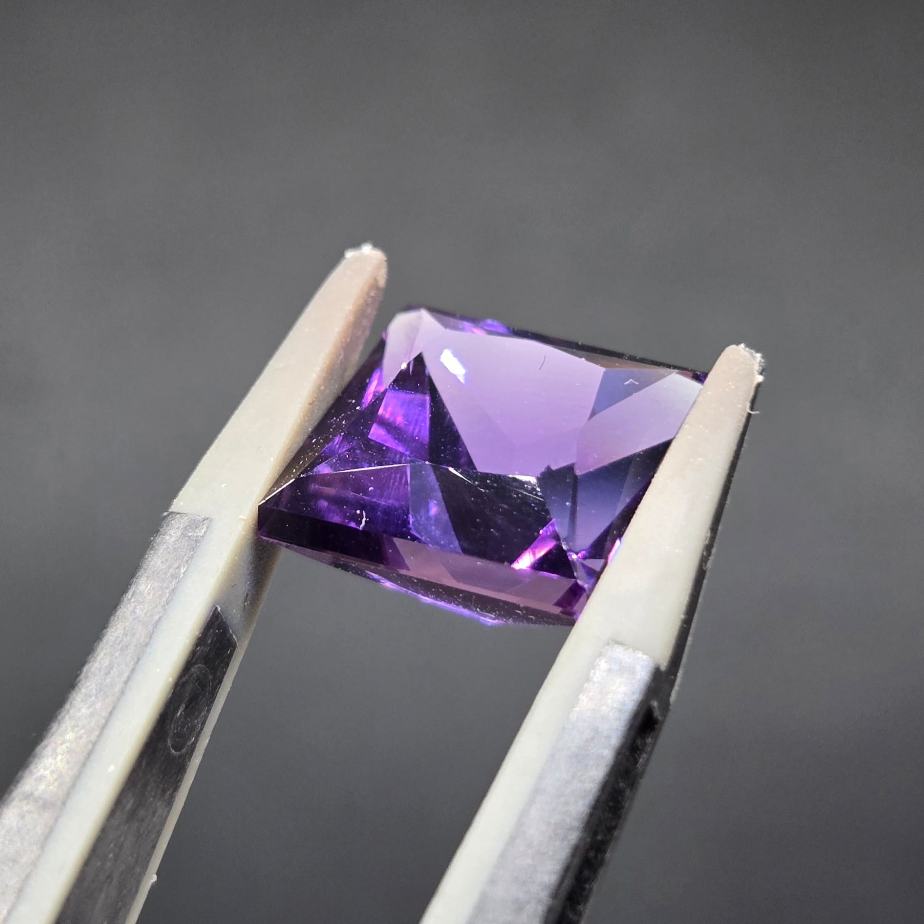 店主の好みでスクエアプリンセスカットのアメシストを作っていただきました。
