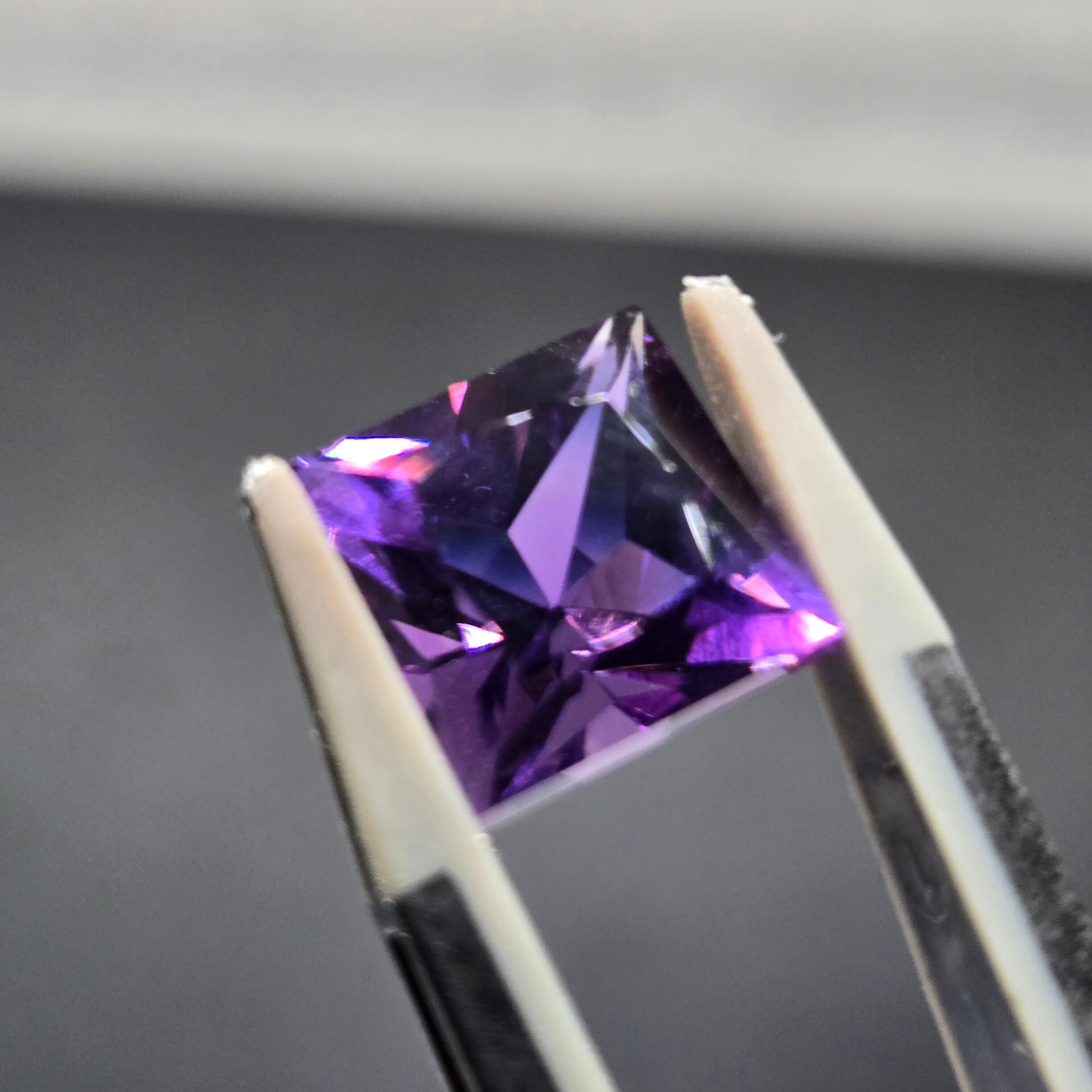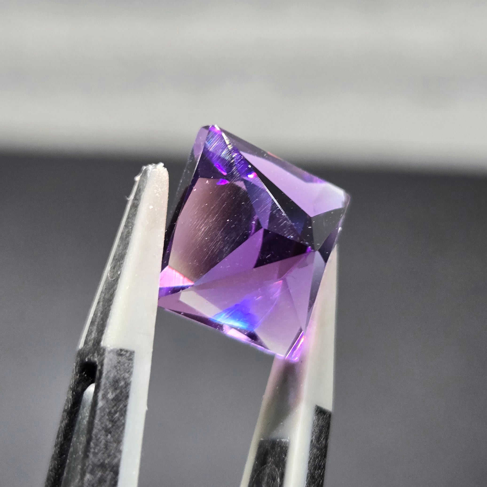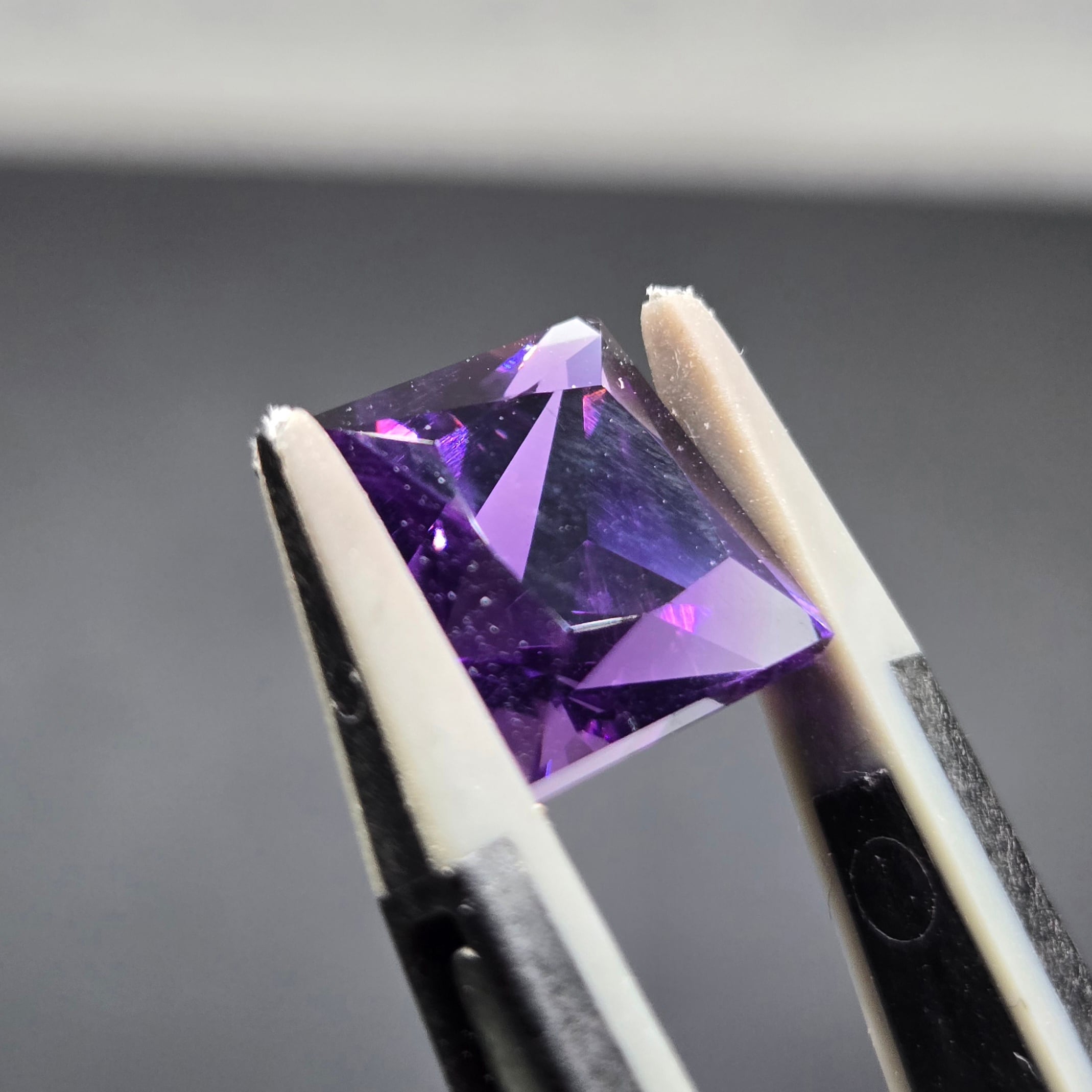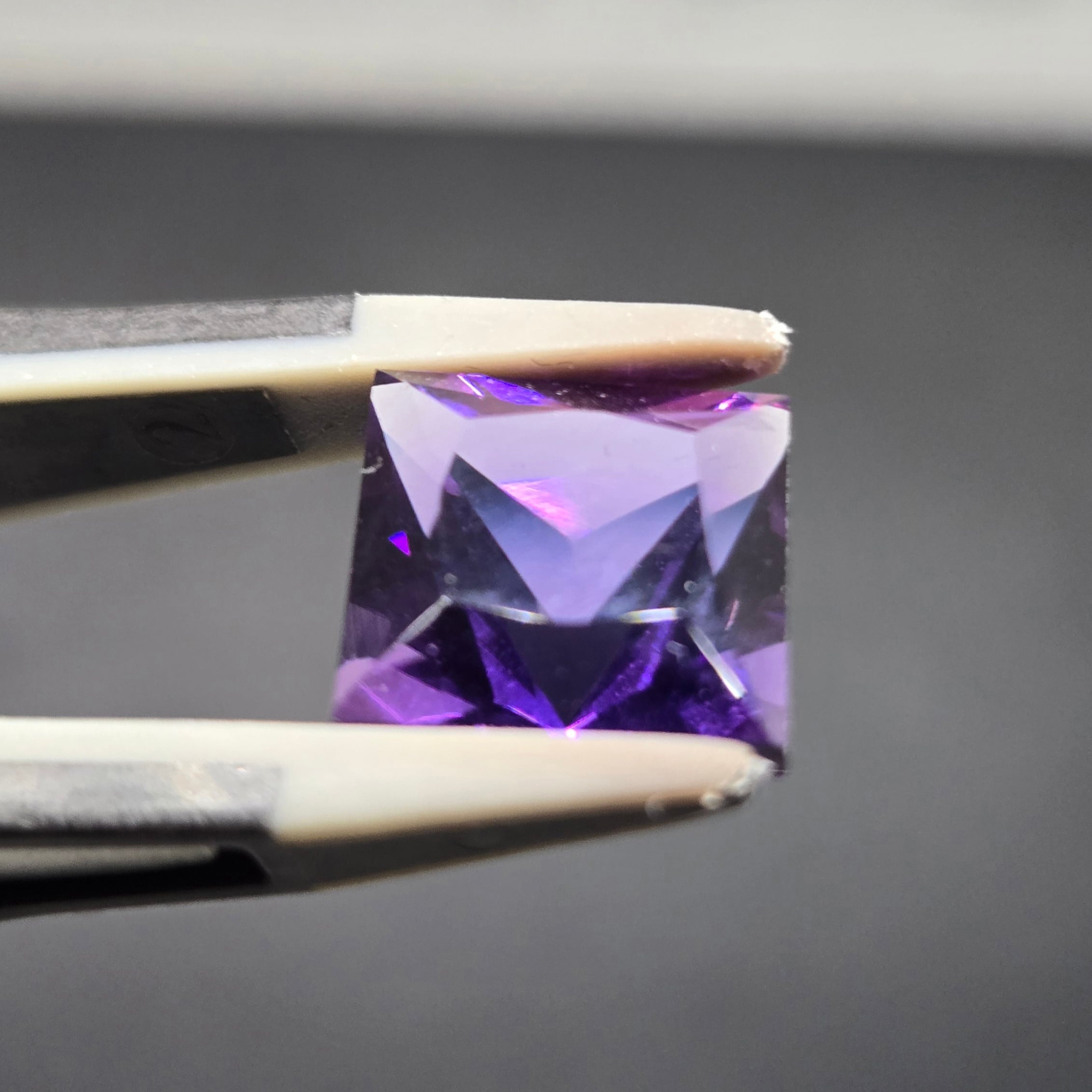 店主の好みでスクエアプリンセスカットのアメシストを作っていただきました。