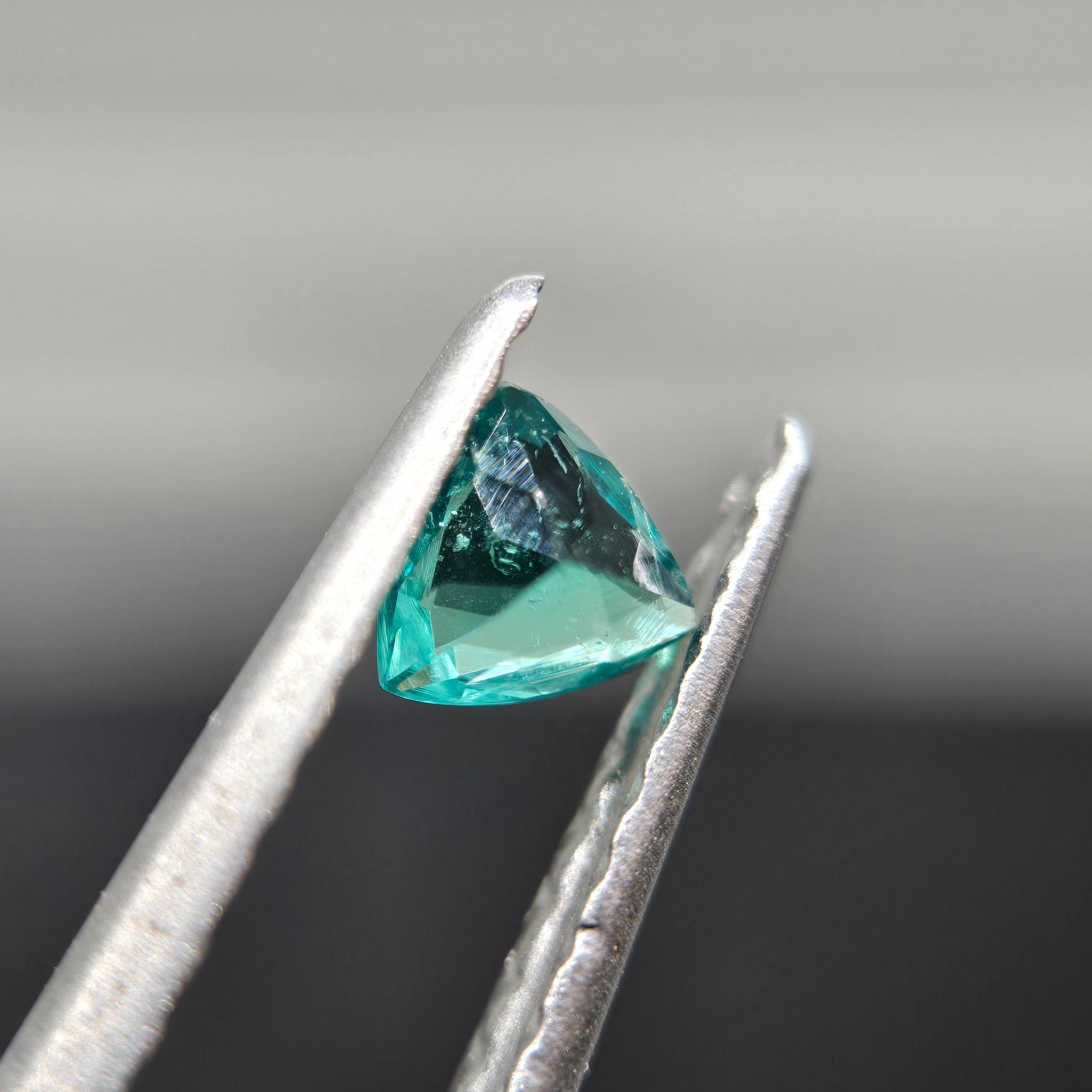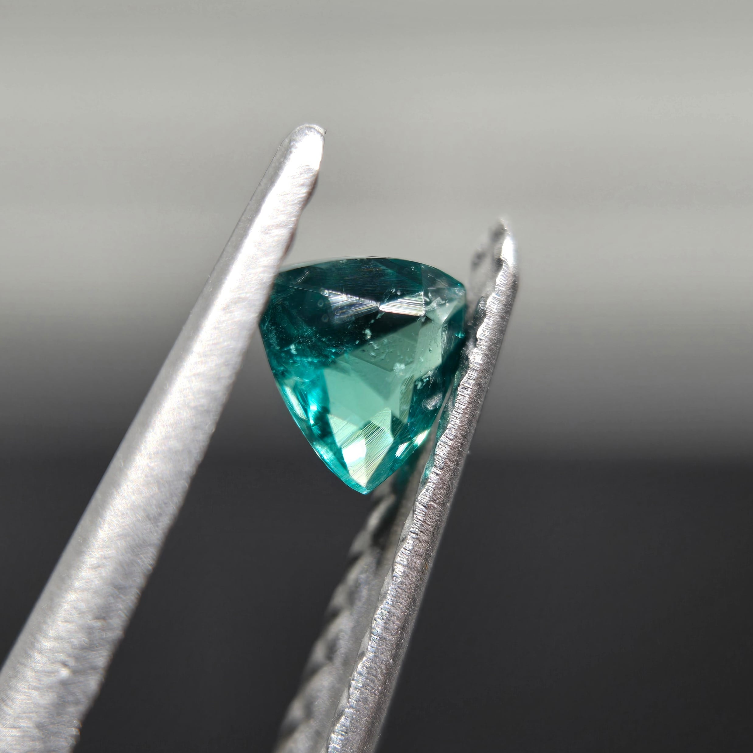 原石はカルサイトやパイライトなどの鉱物と共に採掘されることもあり、共生型の原石標本としても販売されていたりします。ルースとしては、加工できる透明の宝石質の結晶はとても小さいため、市場に流通するルースも必然的に小さくなっております。