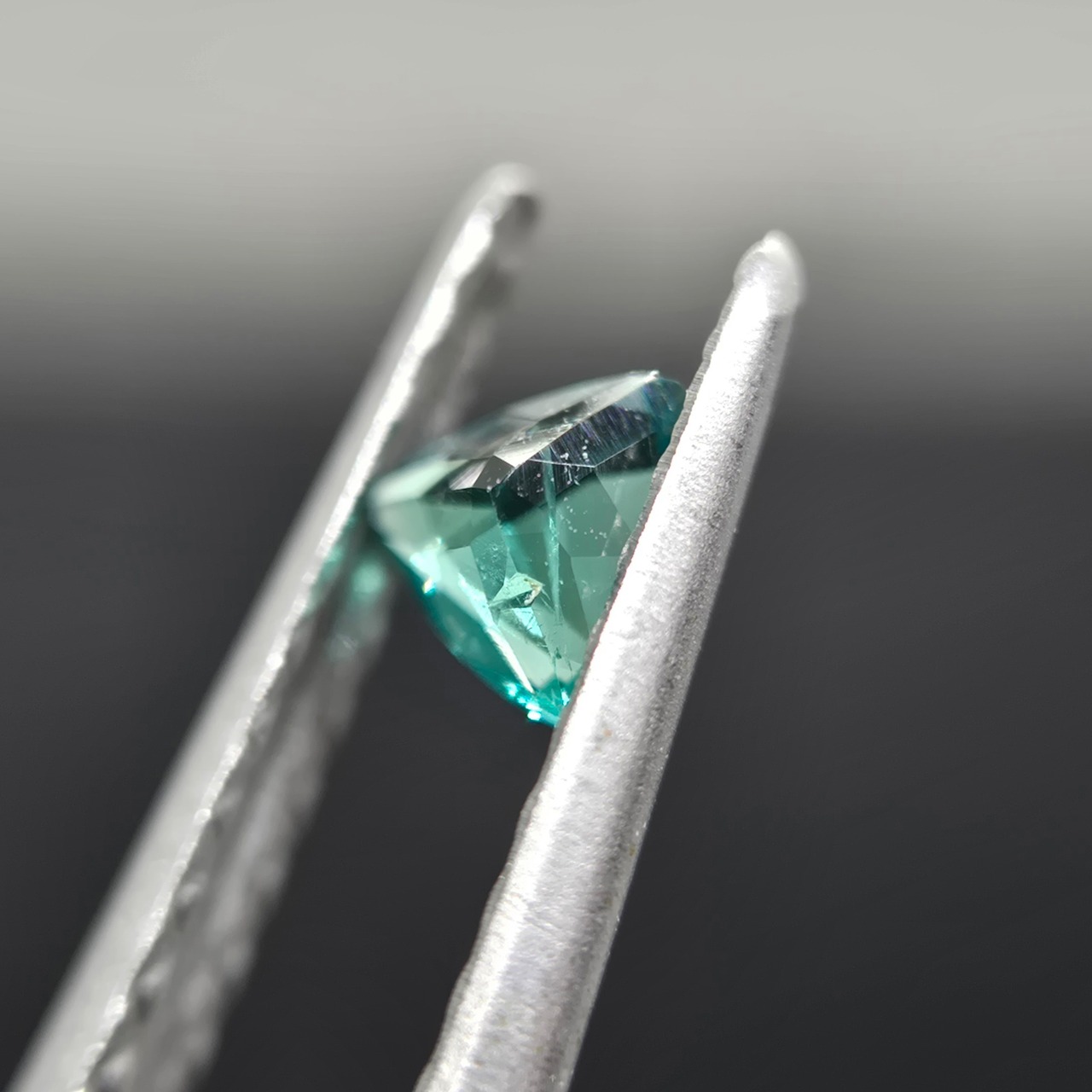 原石はカルサイトやパイライトなどの鉱物と共に採掘されることもあり、共生型の原石標本としても販売されていたりします。ルースとしては、加工できる透明の宝石質の結晶はとても小さいため、市場に流通するルースも必然的に小さくなっております。