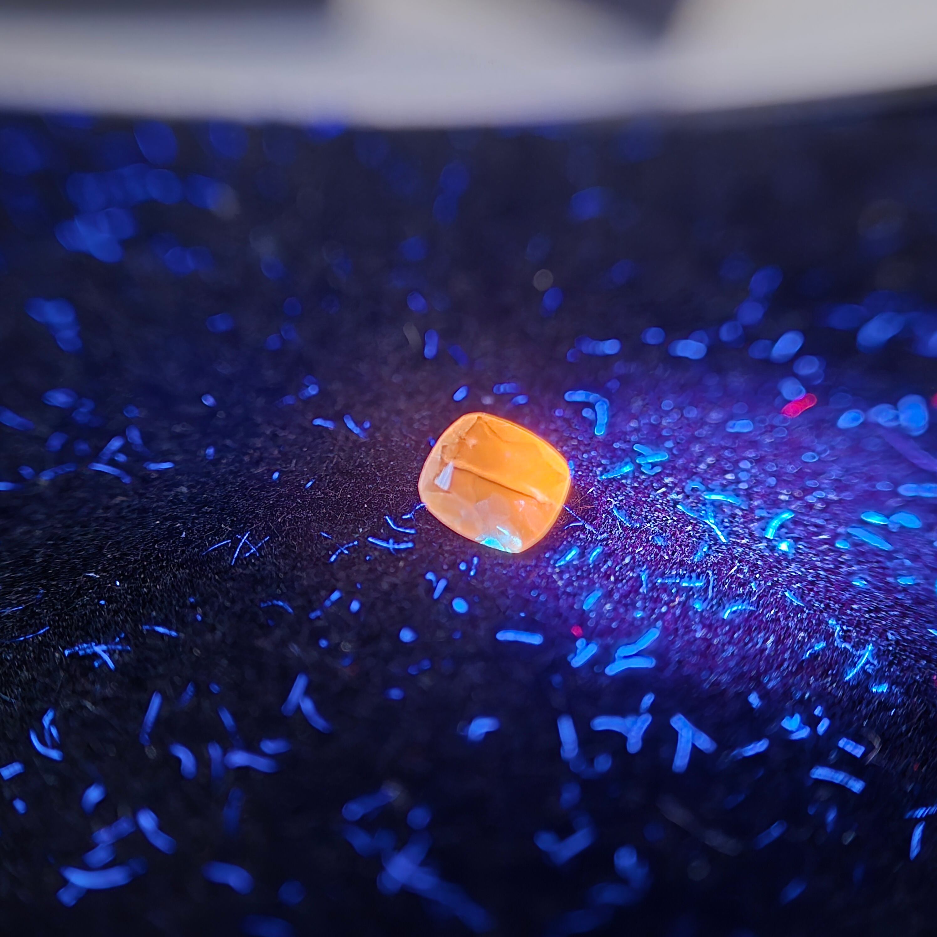 紫外線ライトを当てることでオレンジ色に蛍光します。