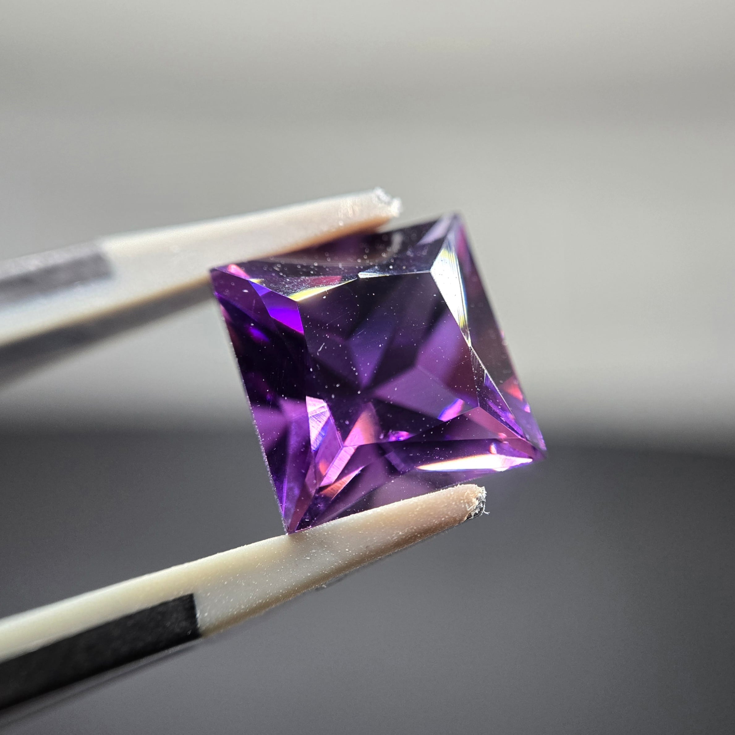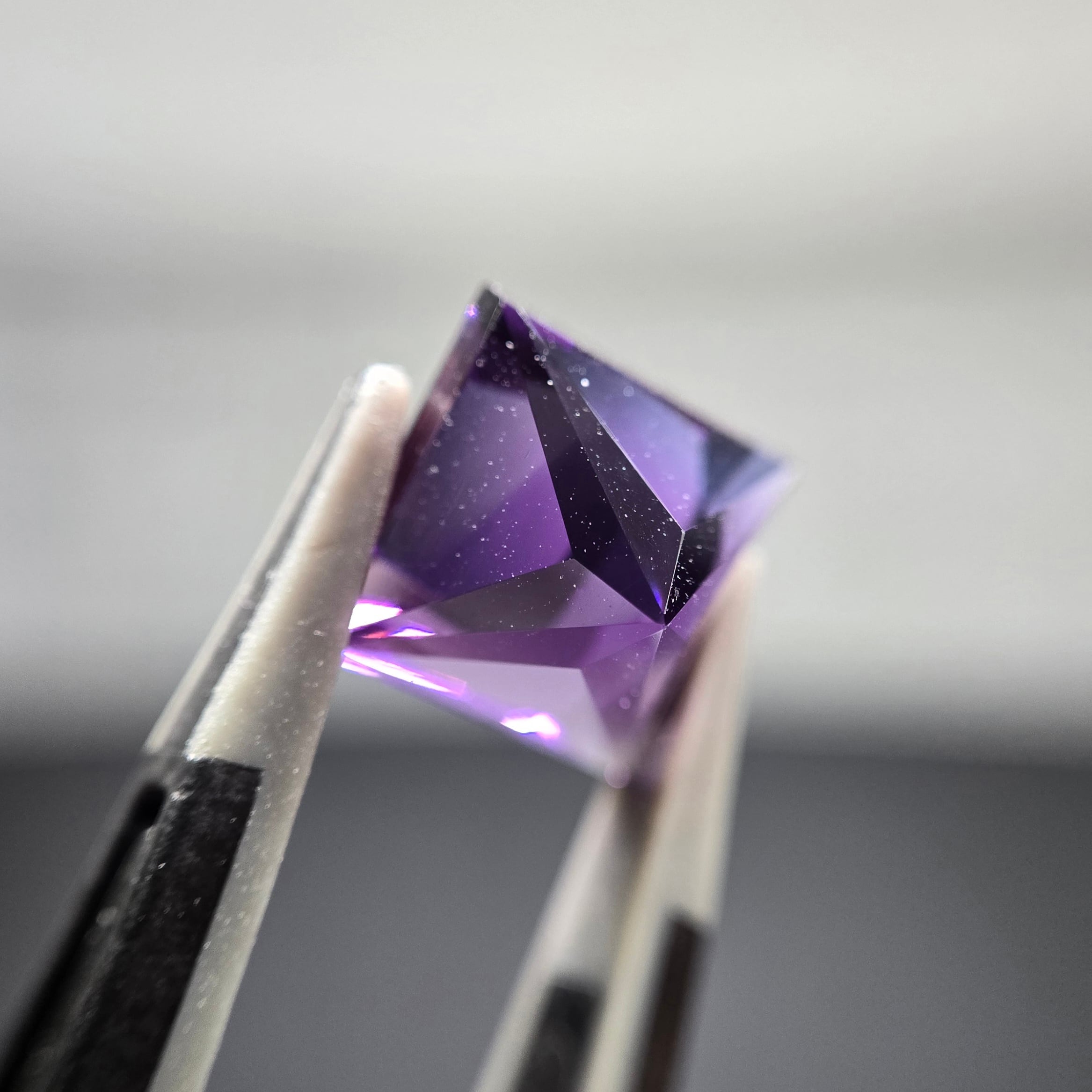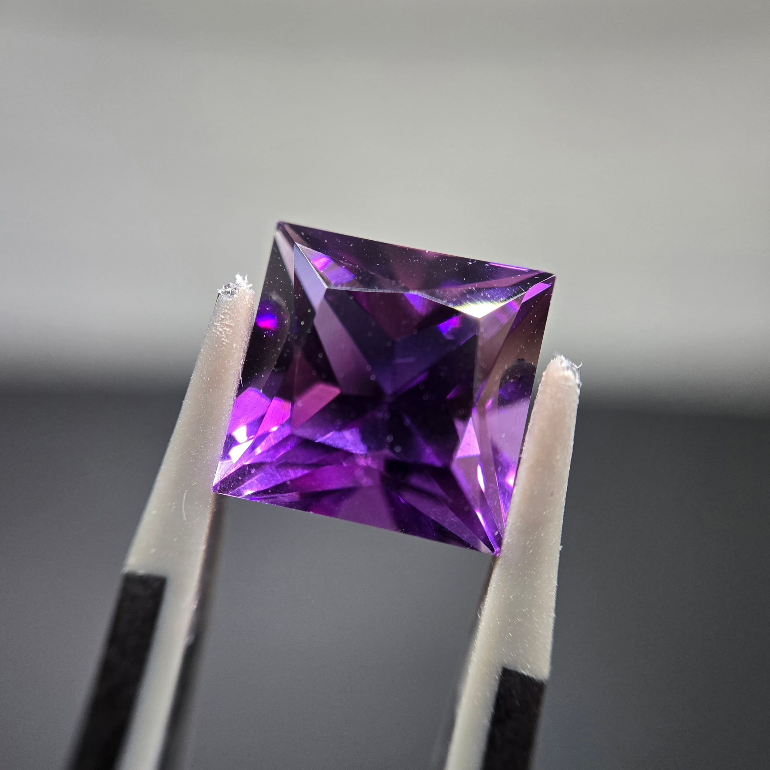 店主の好みでスクエアプリンセスカットのアメシストを作っていただきました。