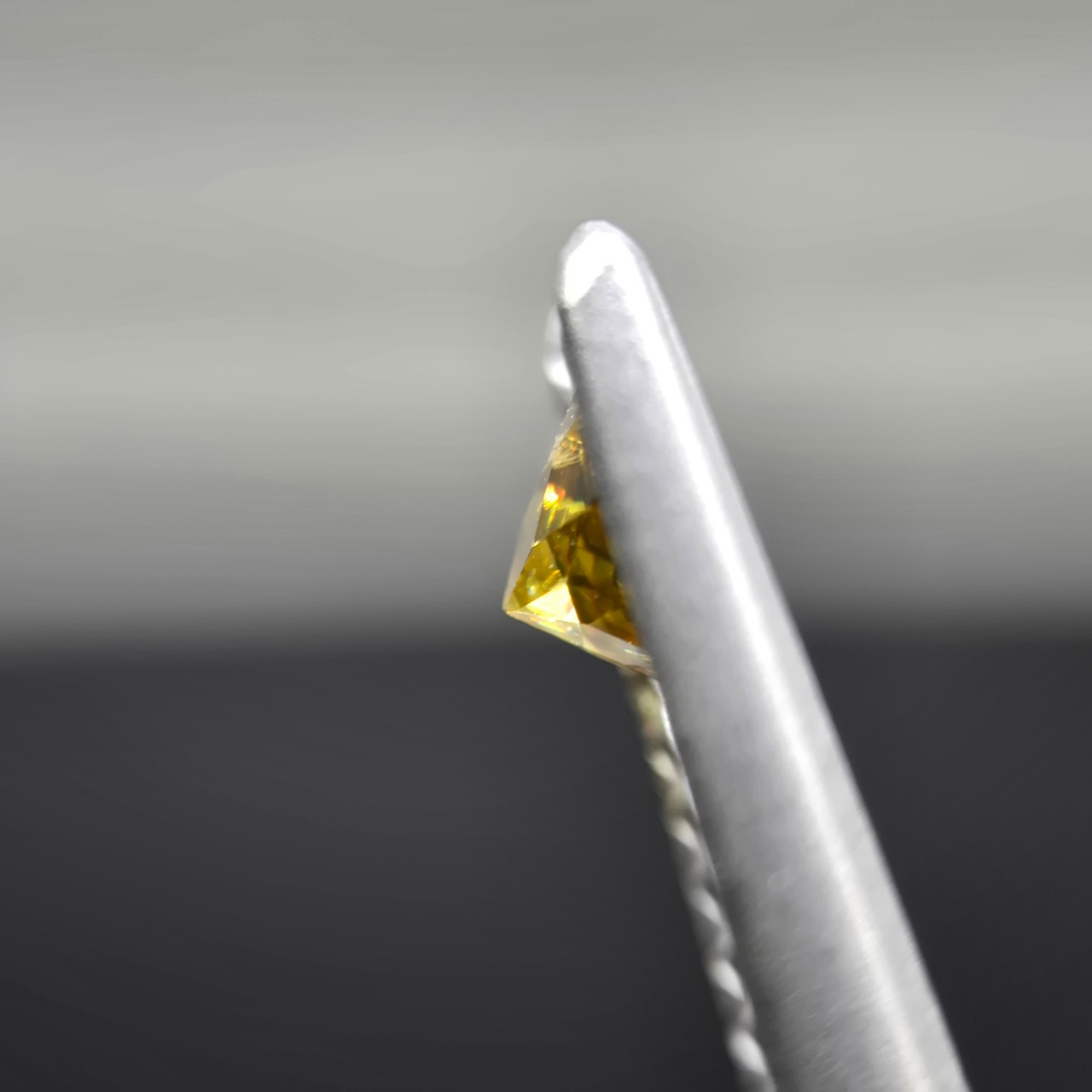 光を当てることで、黄色い地色に、赤や緑などの輝きが反射して見えます。
