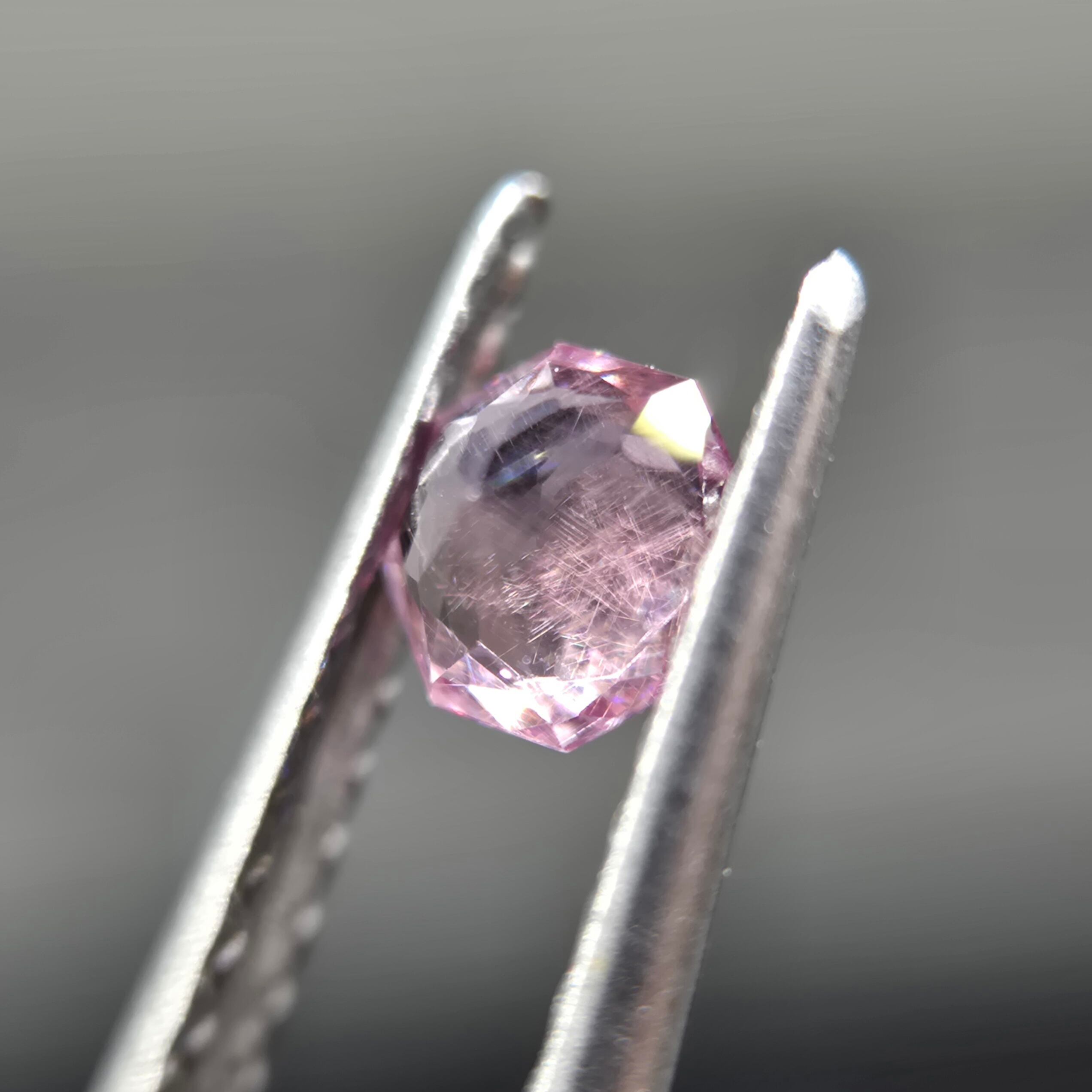 ルーペを通して細かい針状のインクルージョンを見ることができます。