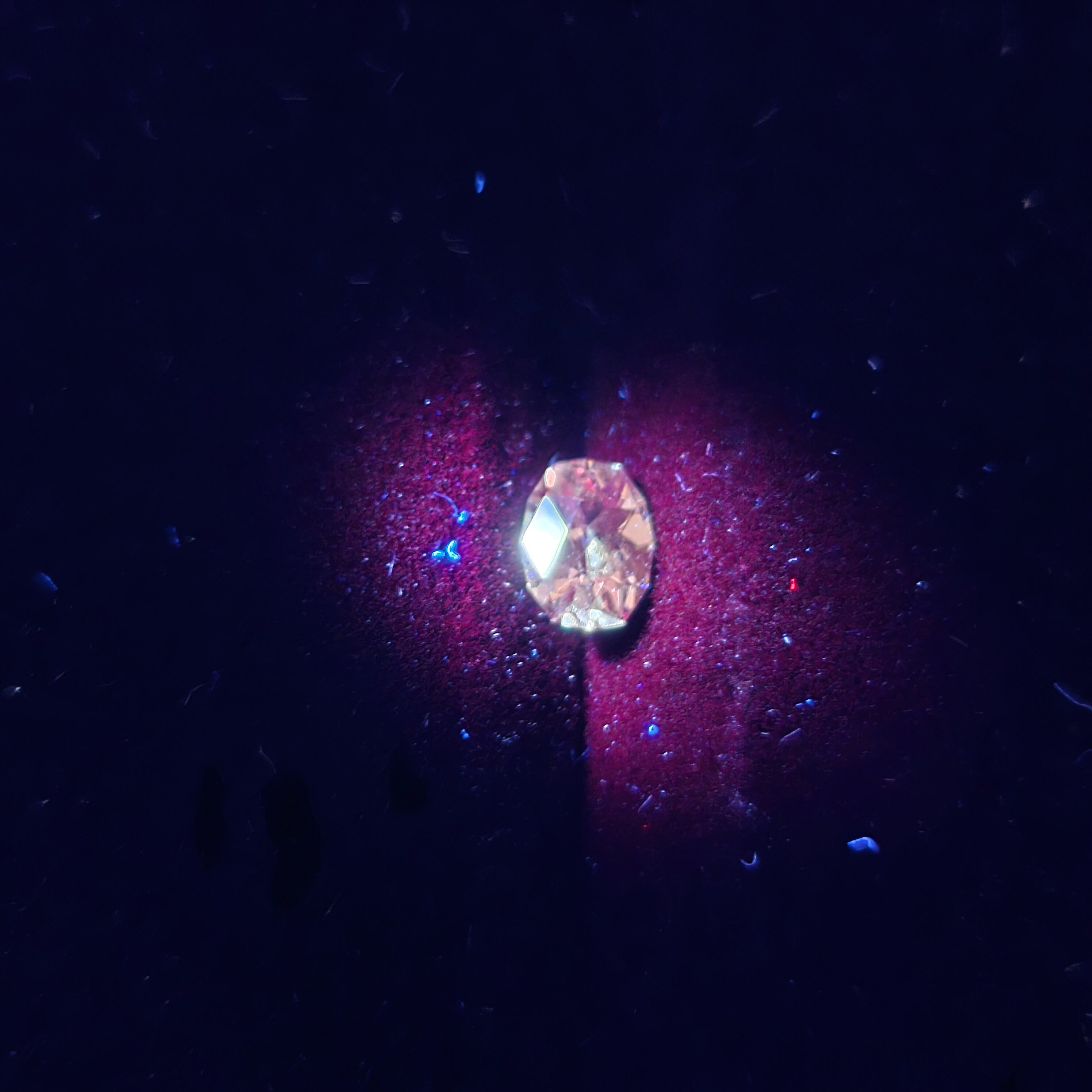 マラヤガーネットの中で、紫外線ライトを当てることで赤色に蛍光する、通称ドラゴンガーネットとなります。蛍光による色の変化は少し弱めです。