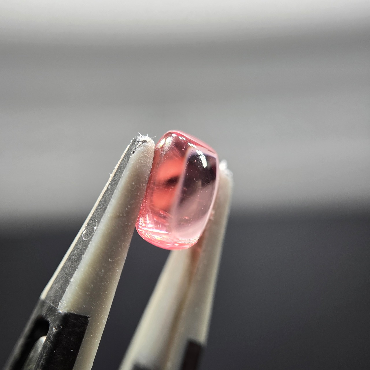 照明に当てると明るいピンクオレンジ色ですが、自然光日陰では、やや赤みを帯びた色になります。