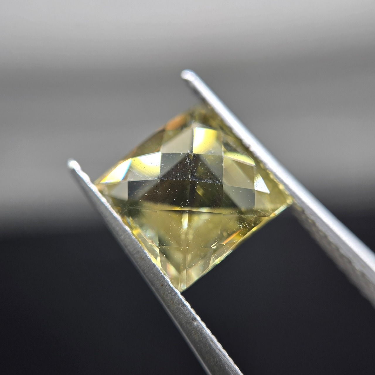 クラウンがチェッカーボードカットのため、石の向きを変える際には、光が四角いファセットに反射して煌めきがあります。