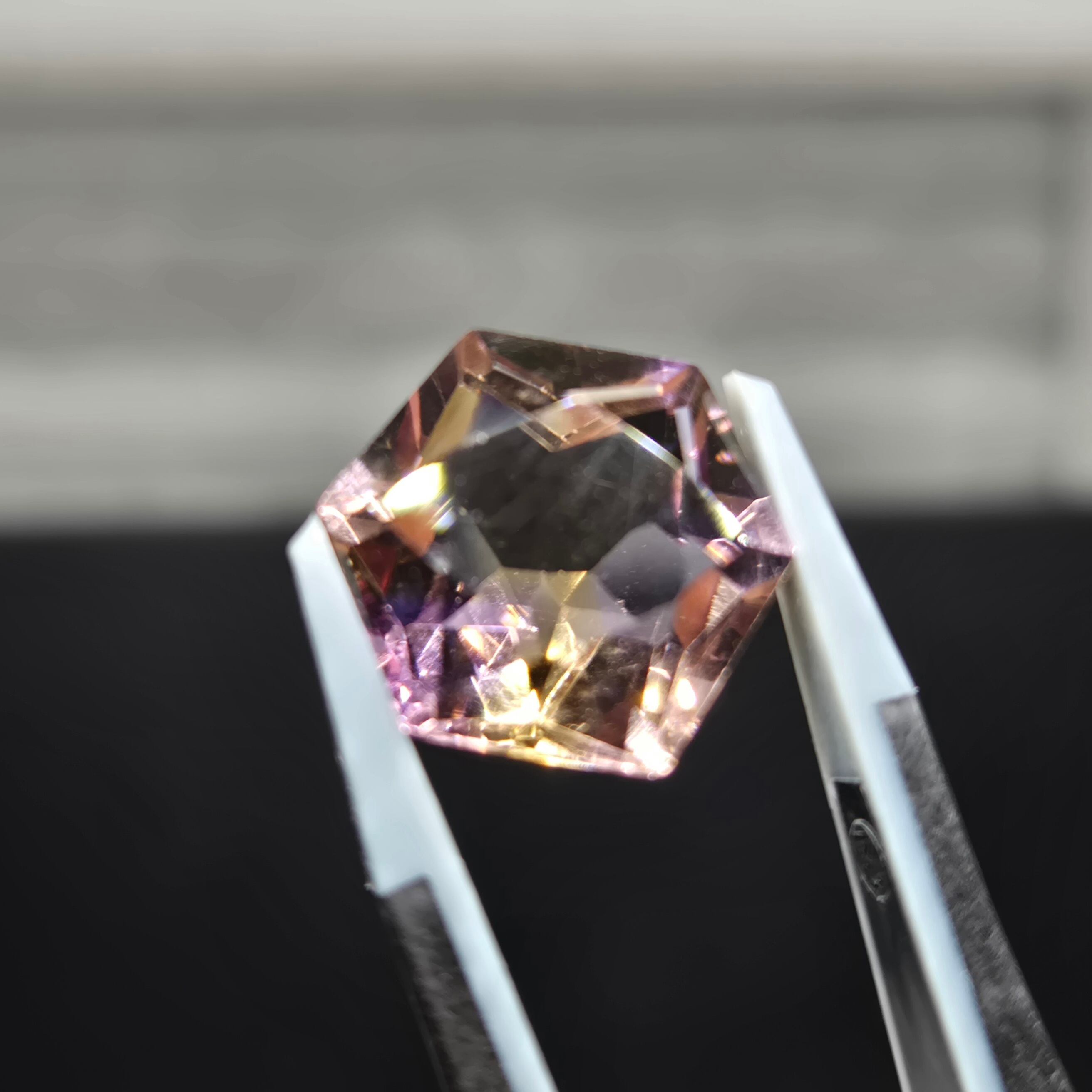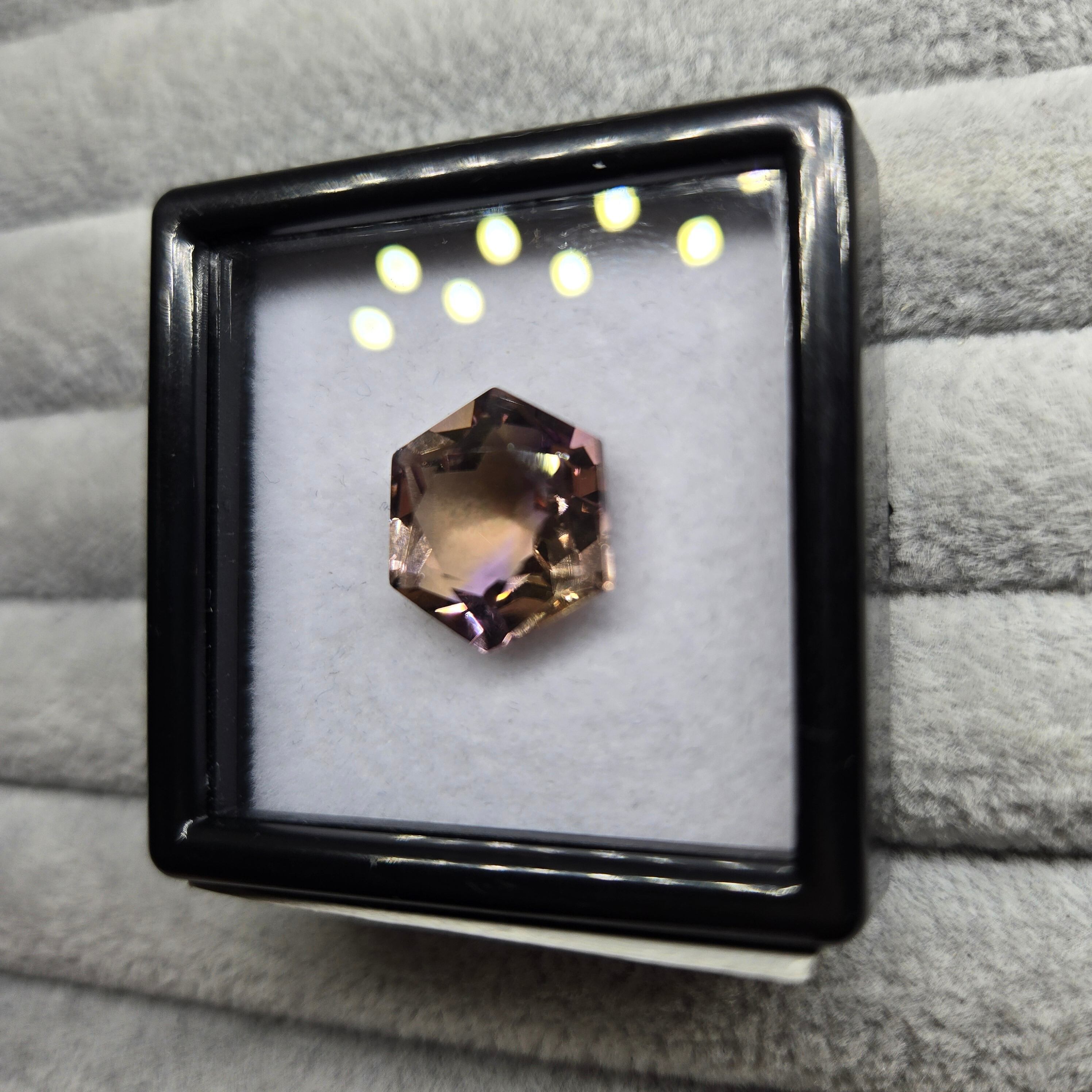 ハロウィンをイメージした六角形の紫色と褐色の一石。