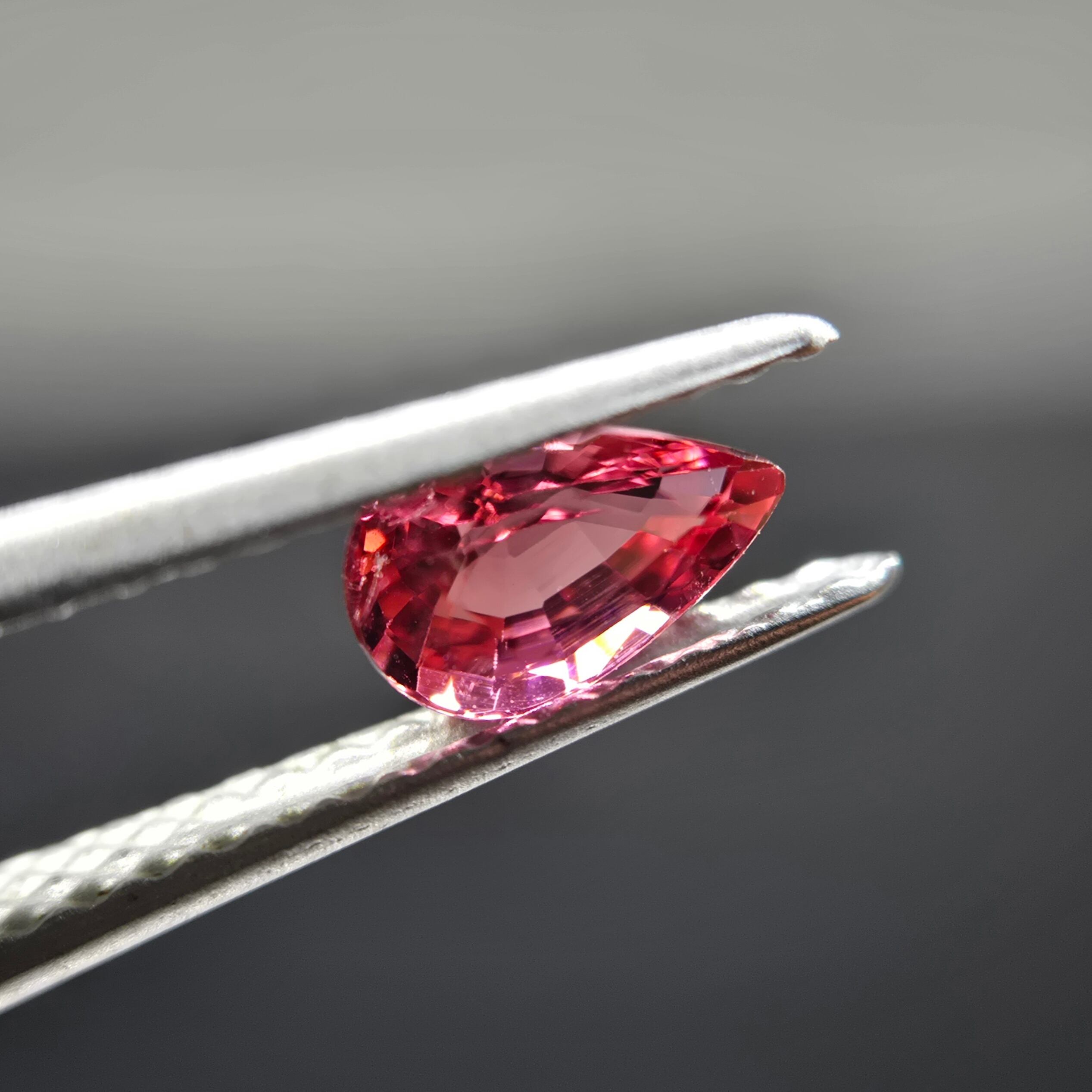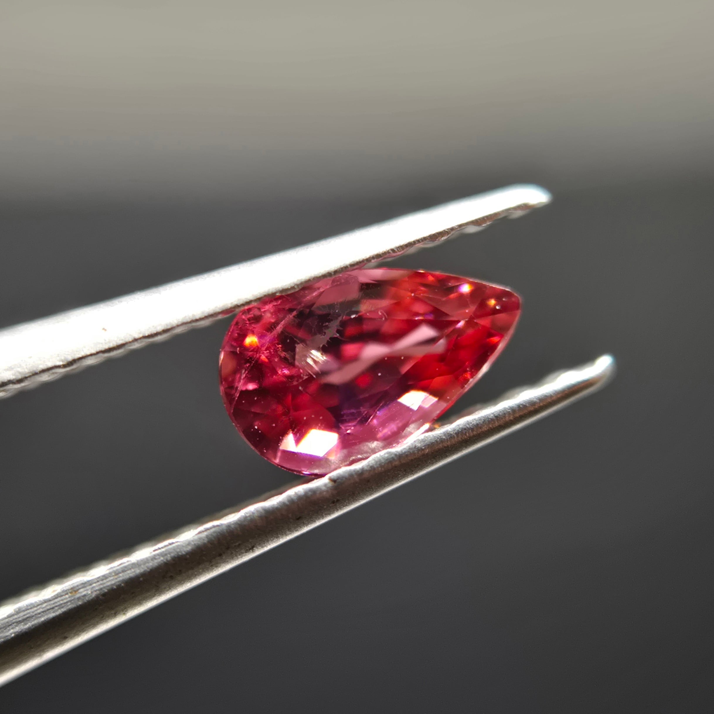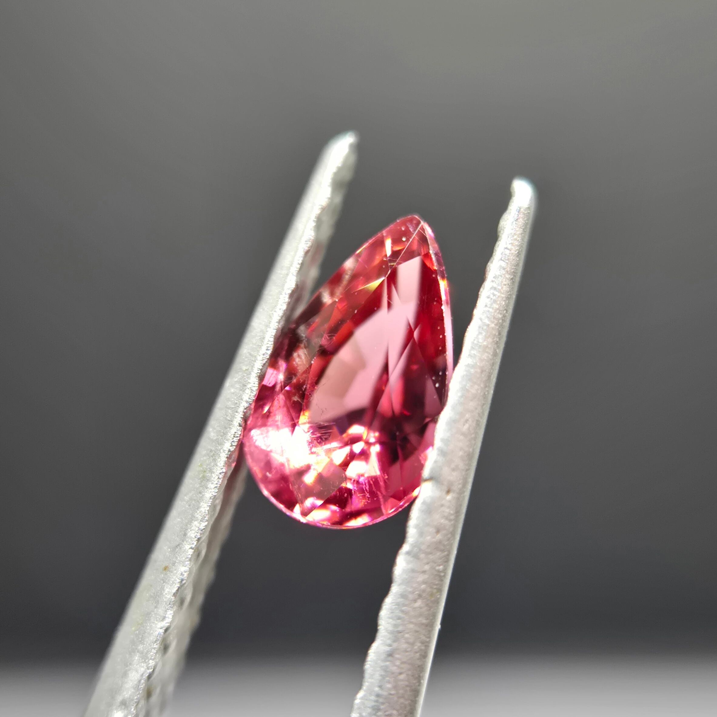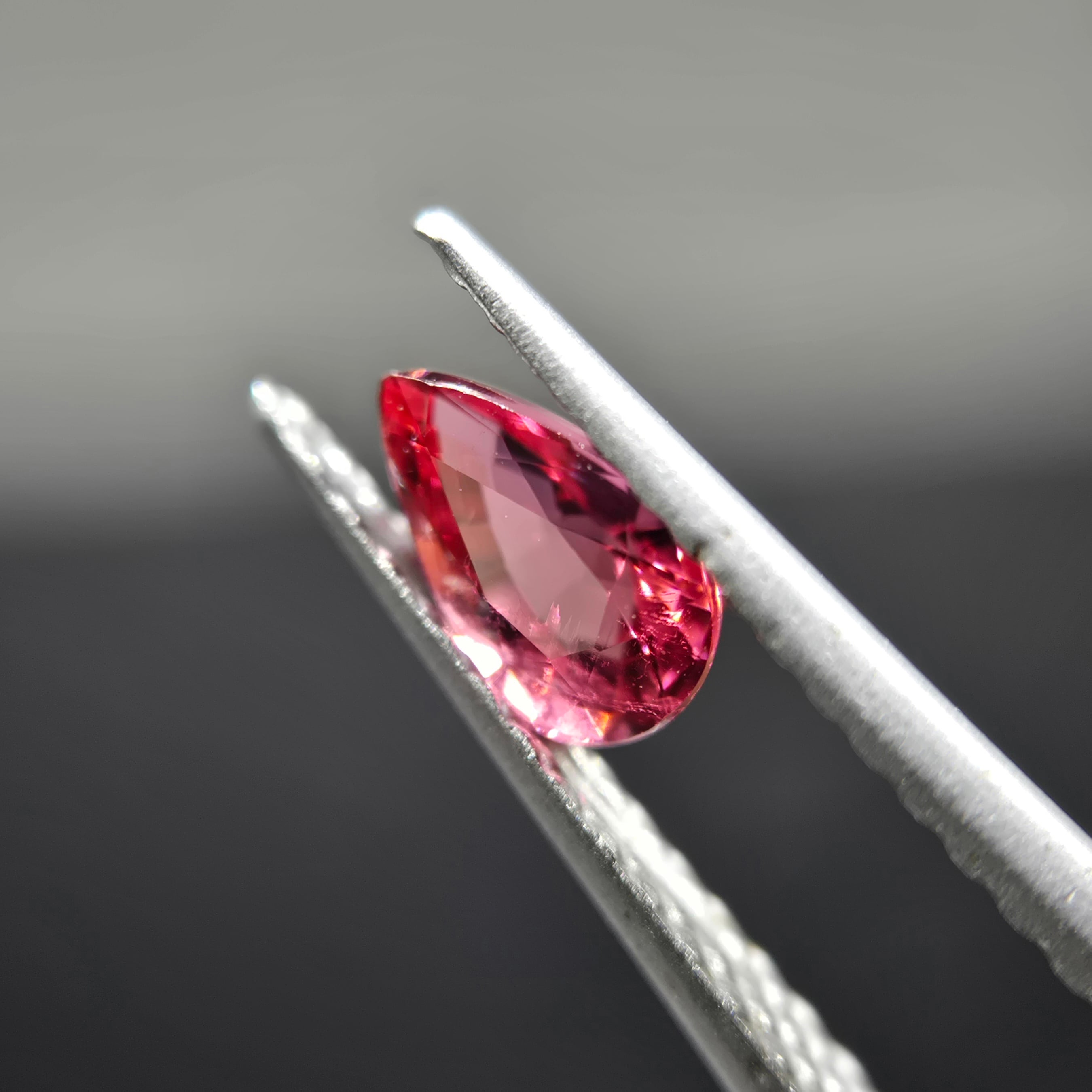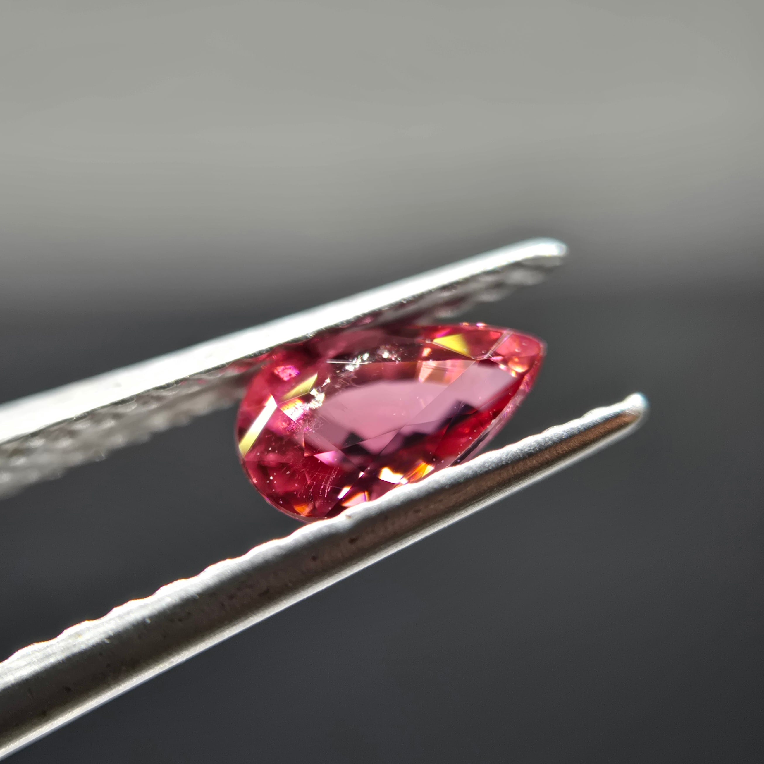 赤、ピンク、オレンジが混ざったような色合いのトルマリンです。