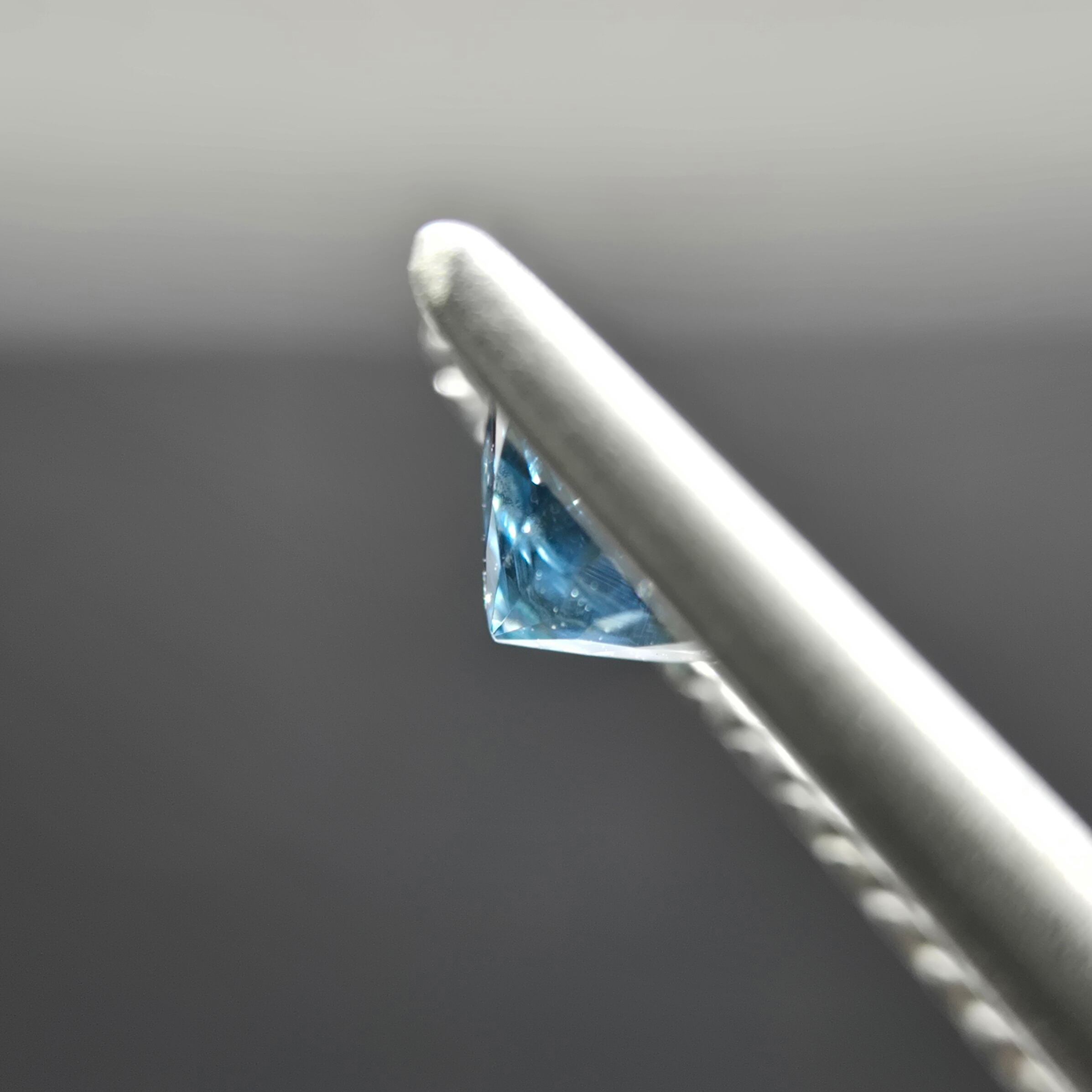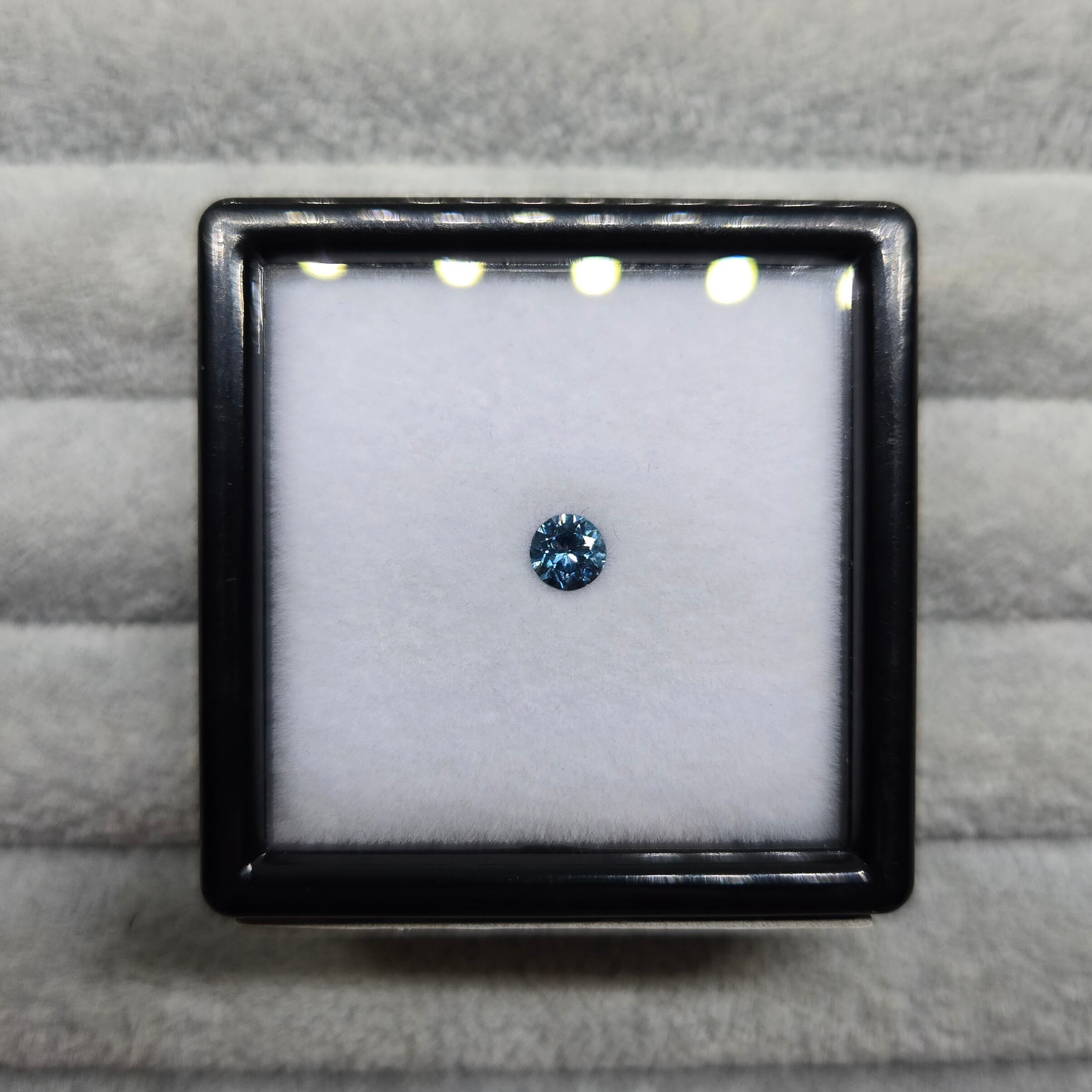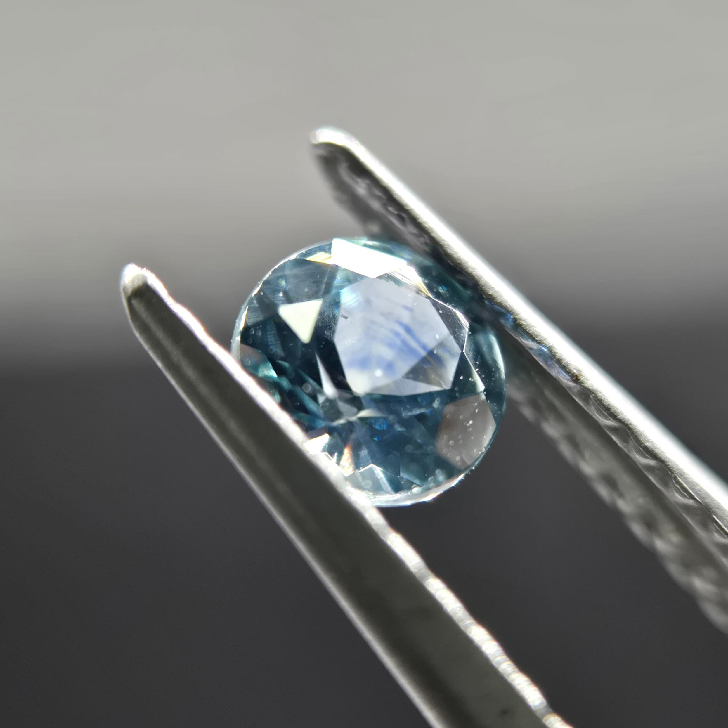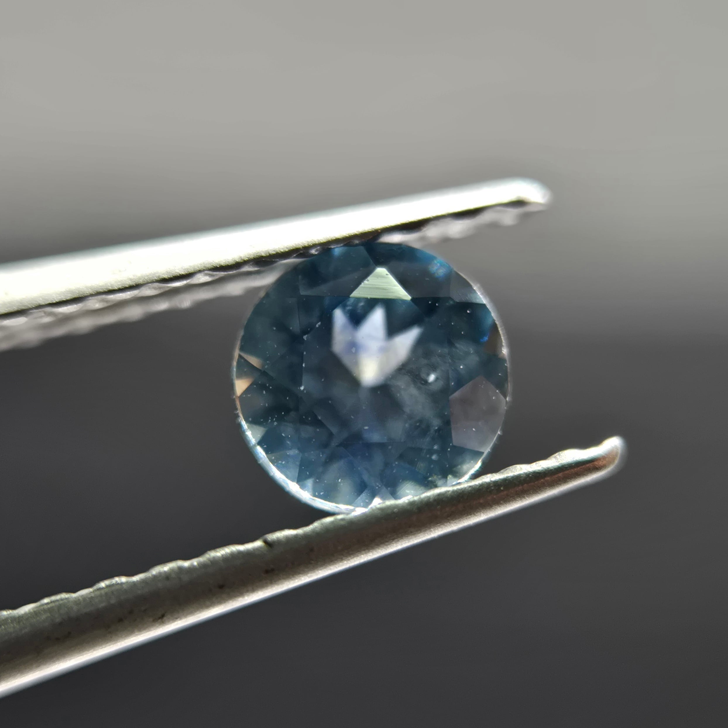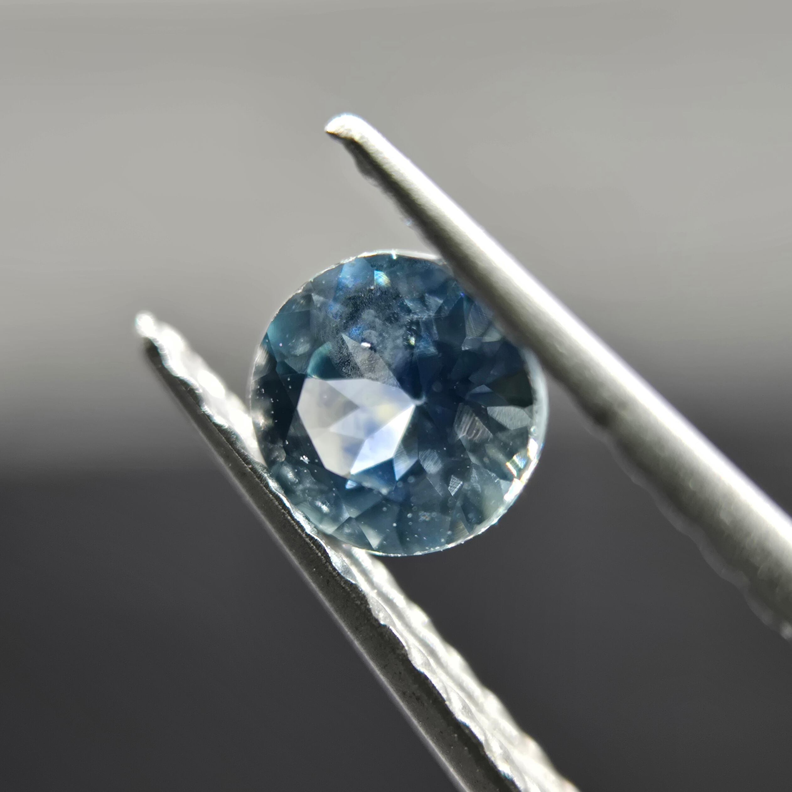 わずかに緑色を含んみ、ややくすんだ青色のサファイア。
