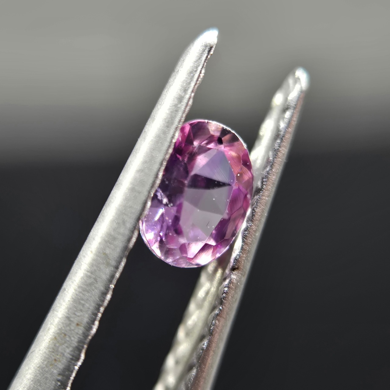 小さめですが、ピンクを含んだ鮮やかな赤紫色のゾイサイトです。