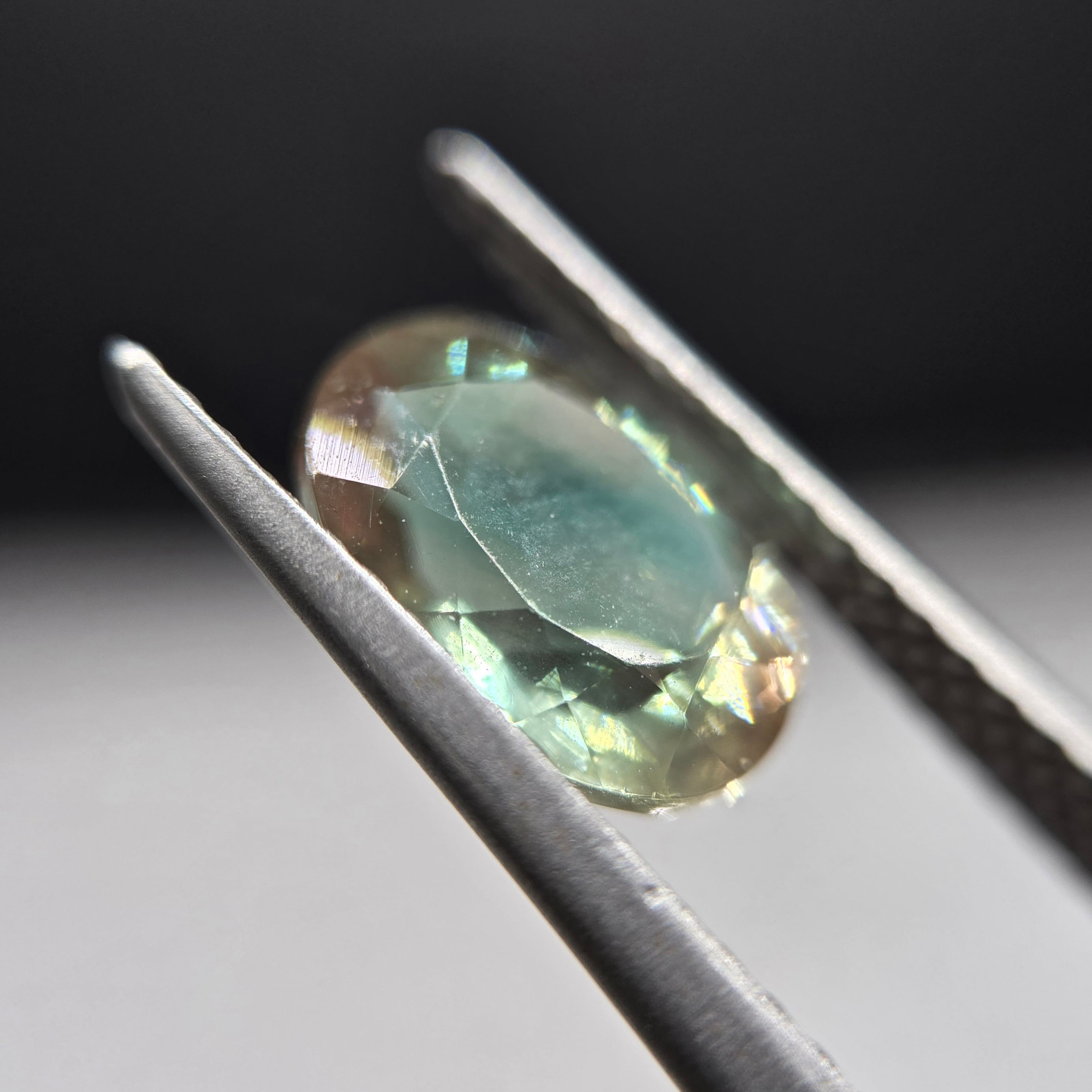 黄色みを含む薄い褐色に緑色を含むオレゴンサンストーンです。