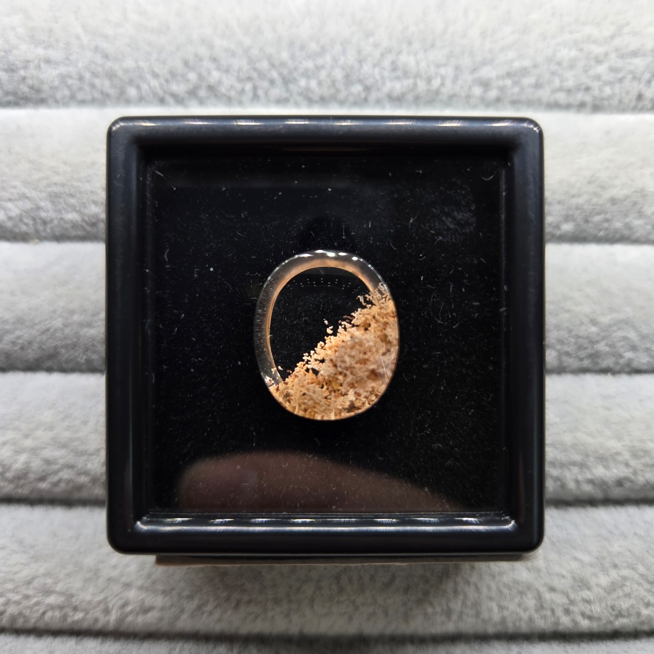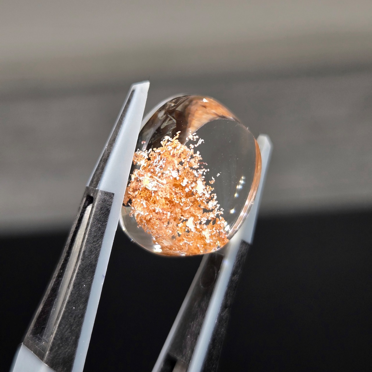 奥行き感のある褐色を帯びた肌色の内包物が透明度の高いクォーツの中できれいに見える一石です。