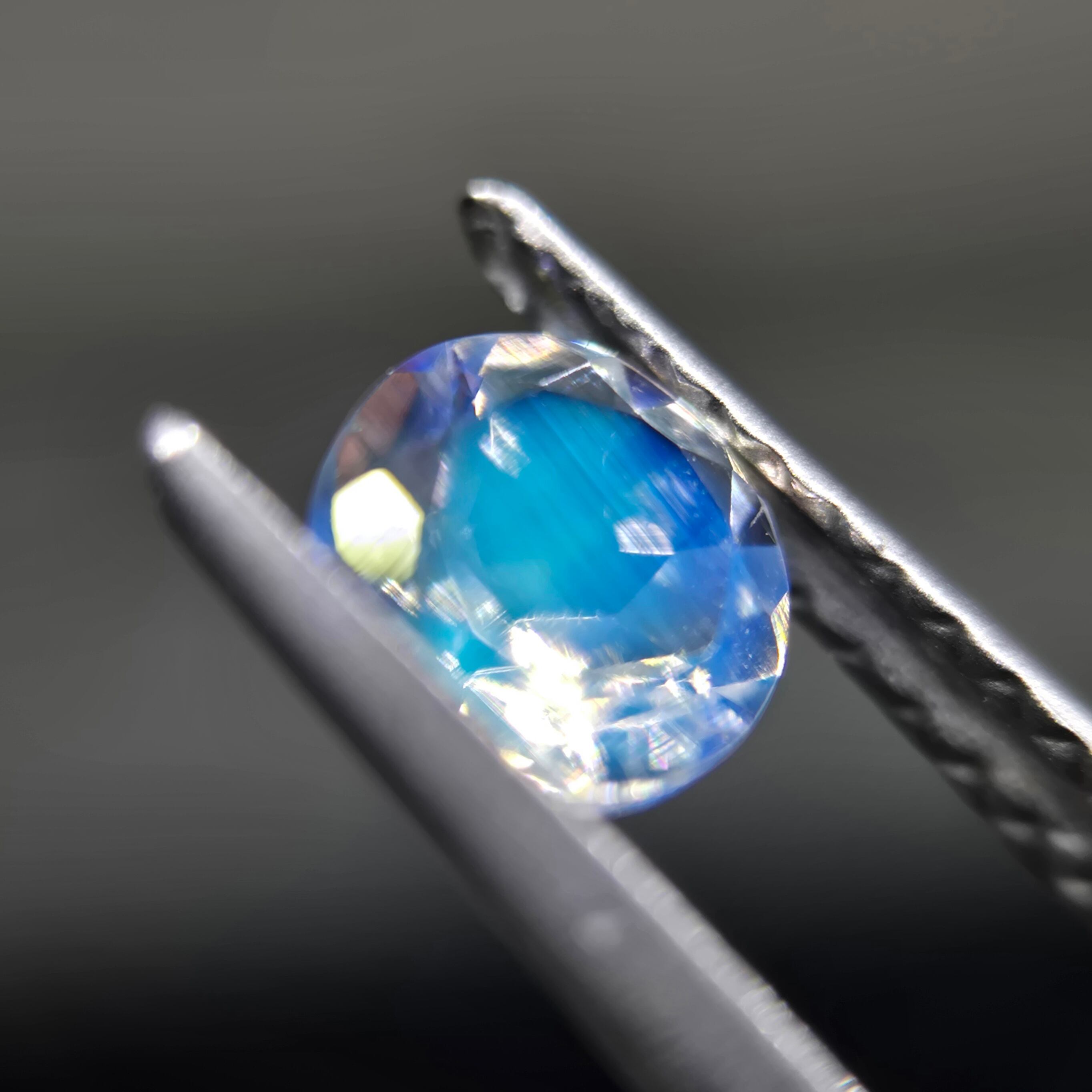 様々な色のシラーが見えるフェルスパーです。