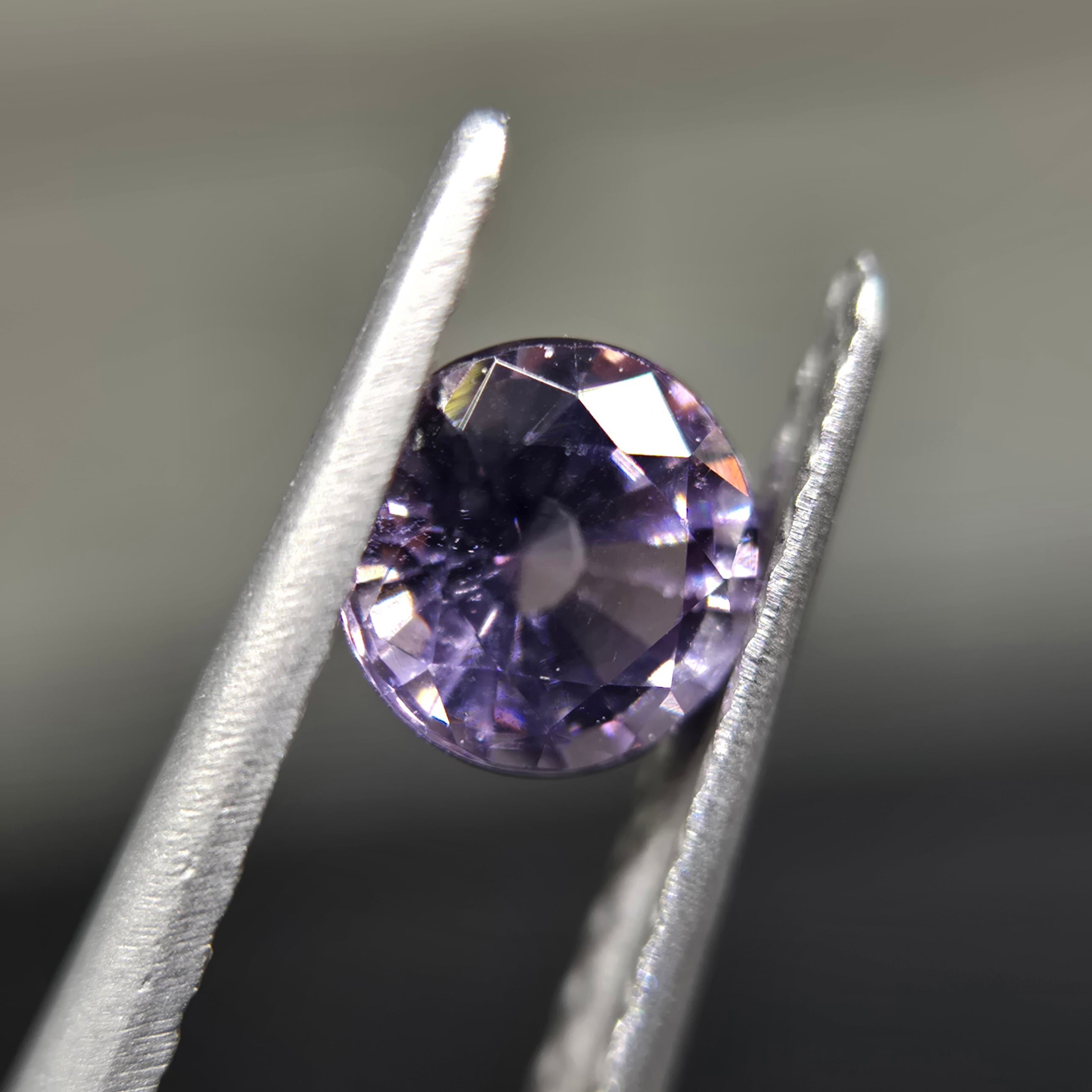 淡い紫に、わずかにグレーを含んだような、くすみカラーのスピネルです。