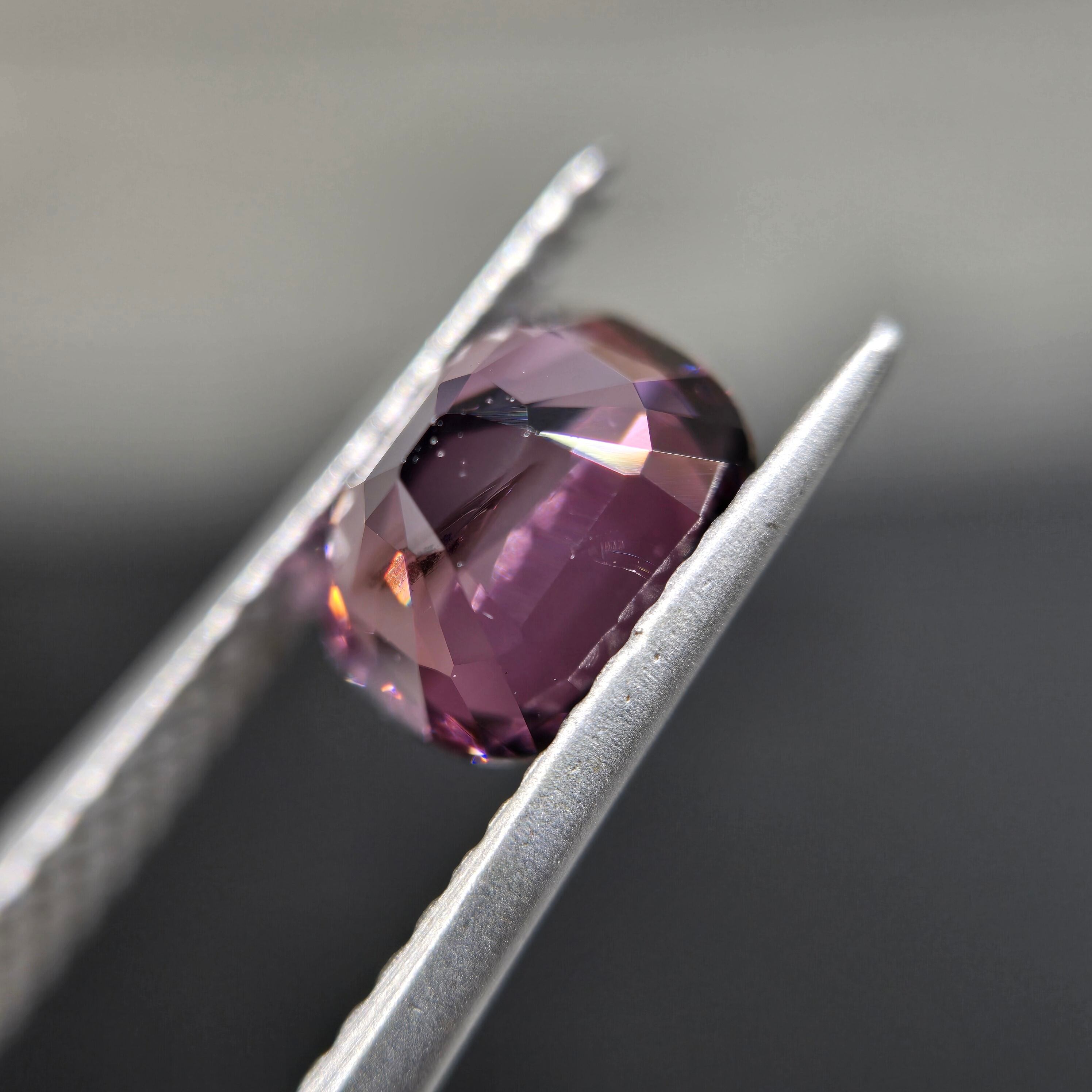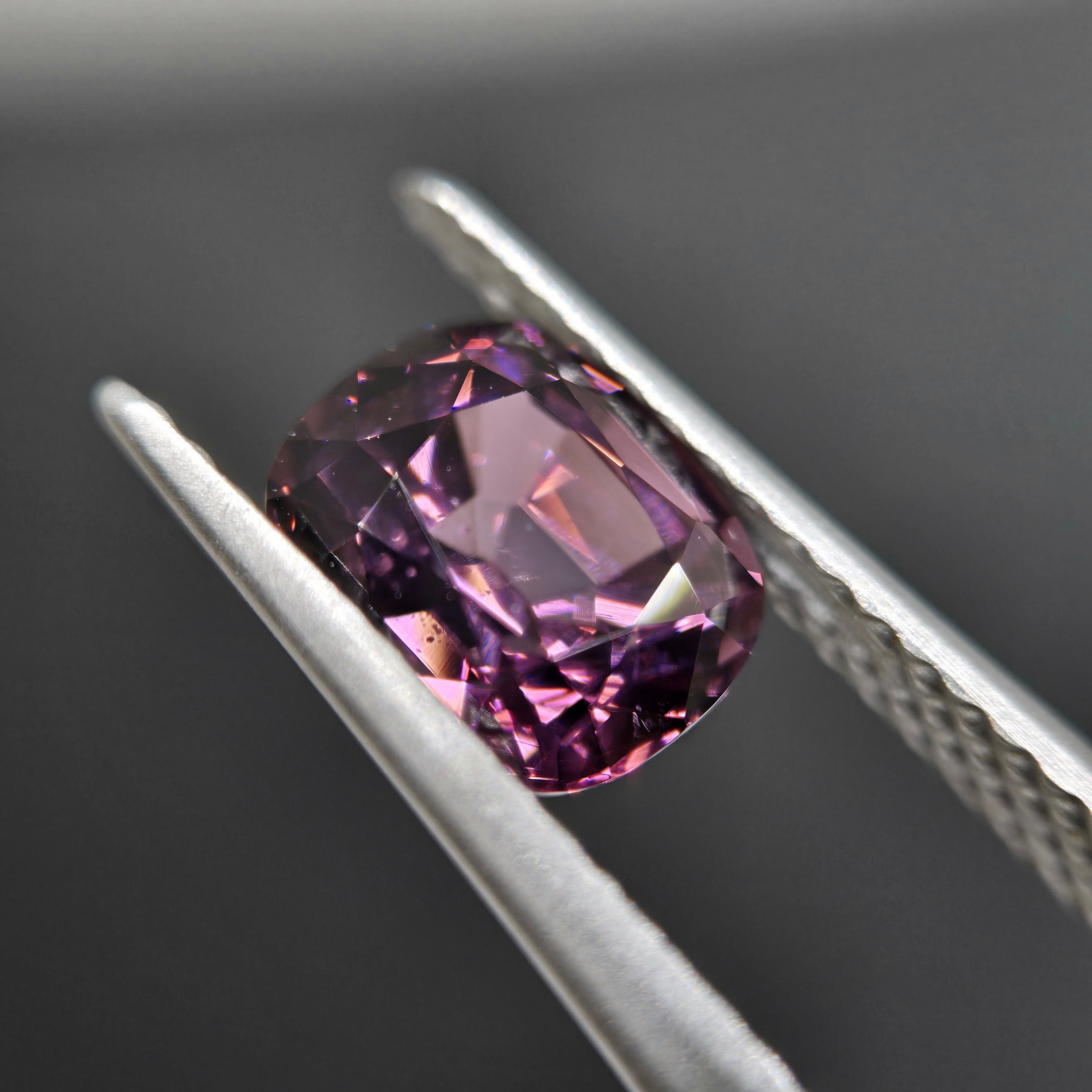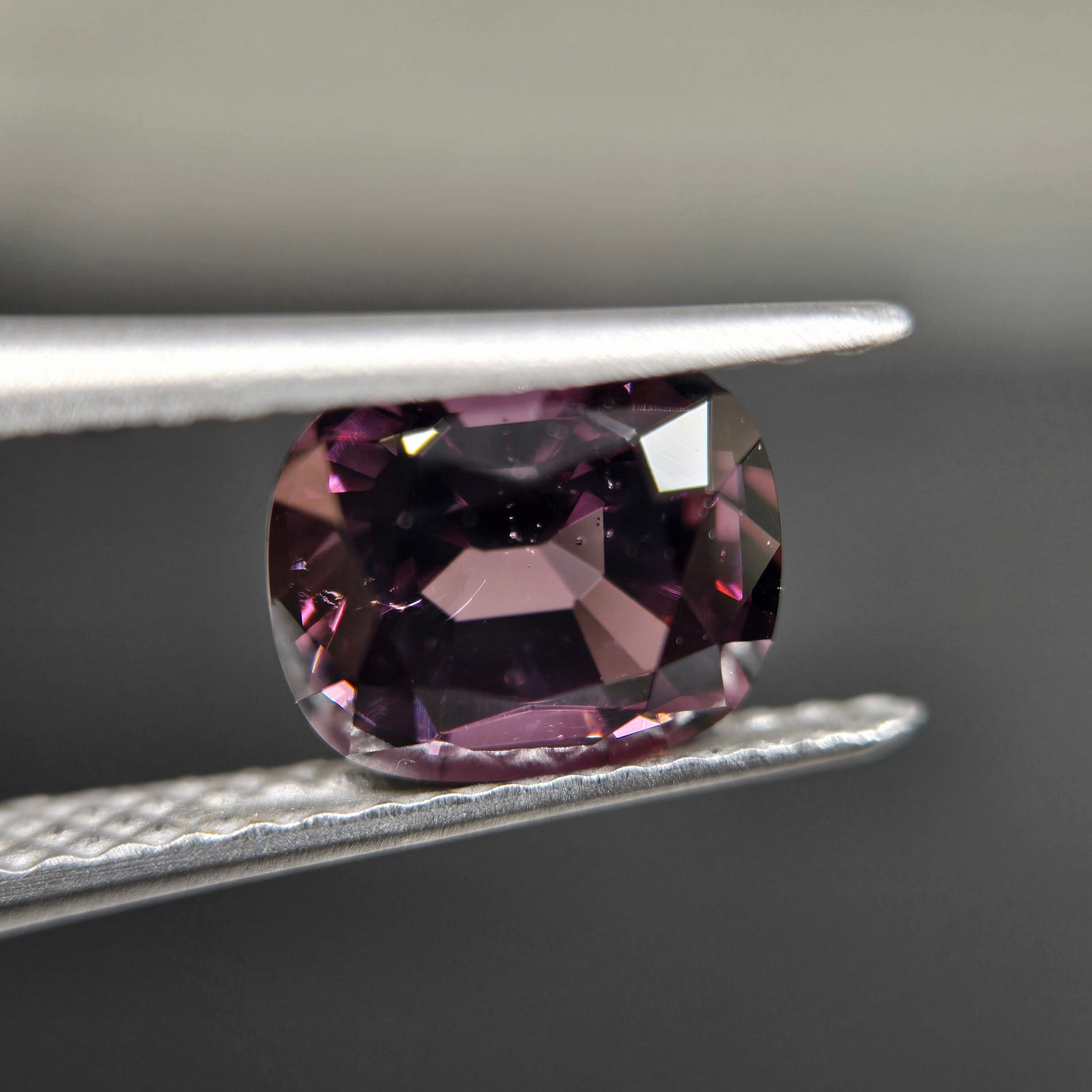 やや褐色を含む落ち着いたパープルカラーのスピネルです。