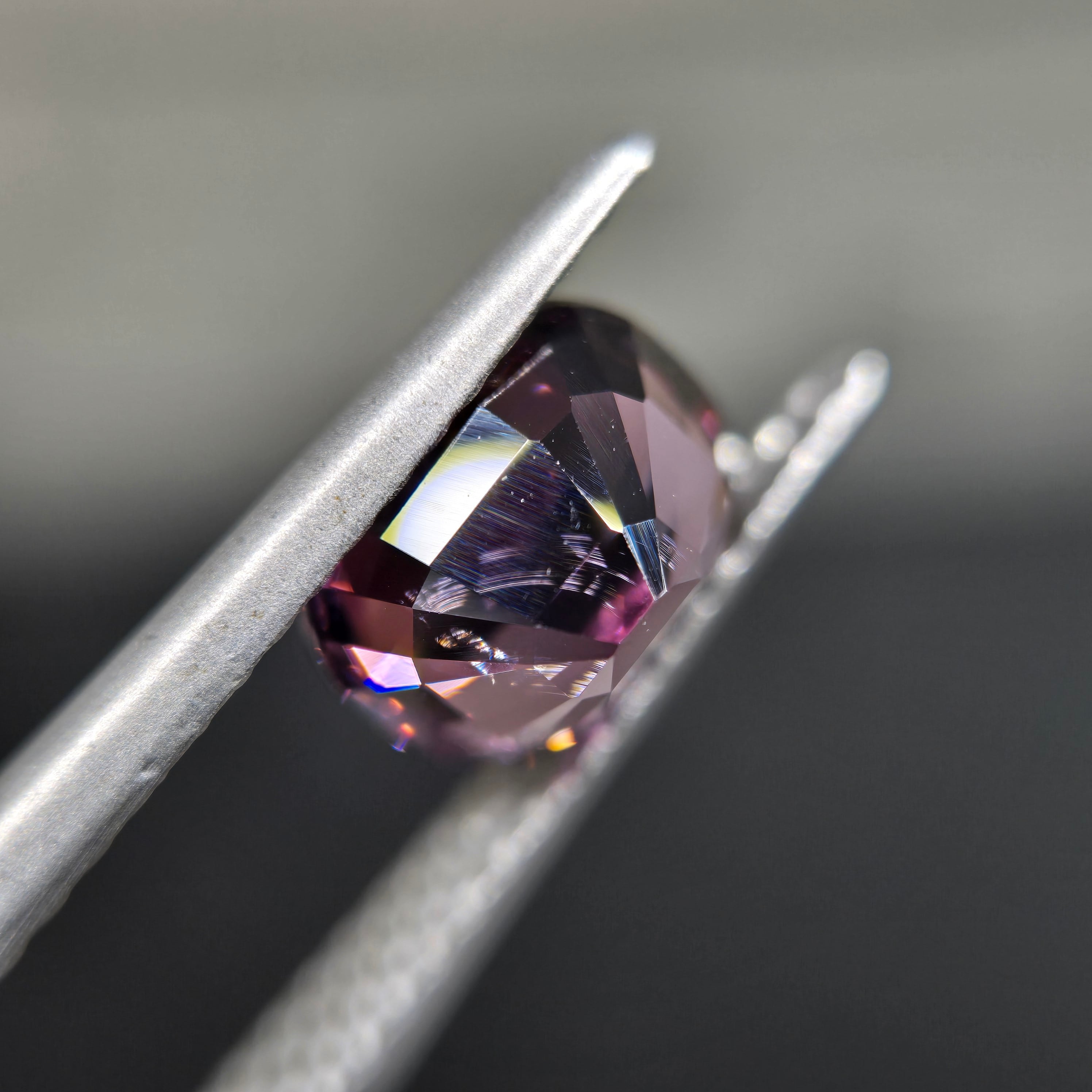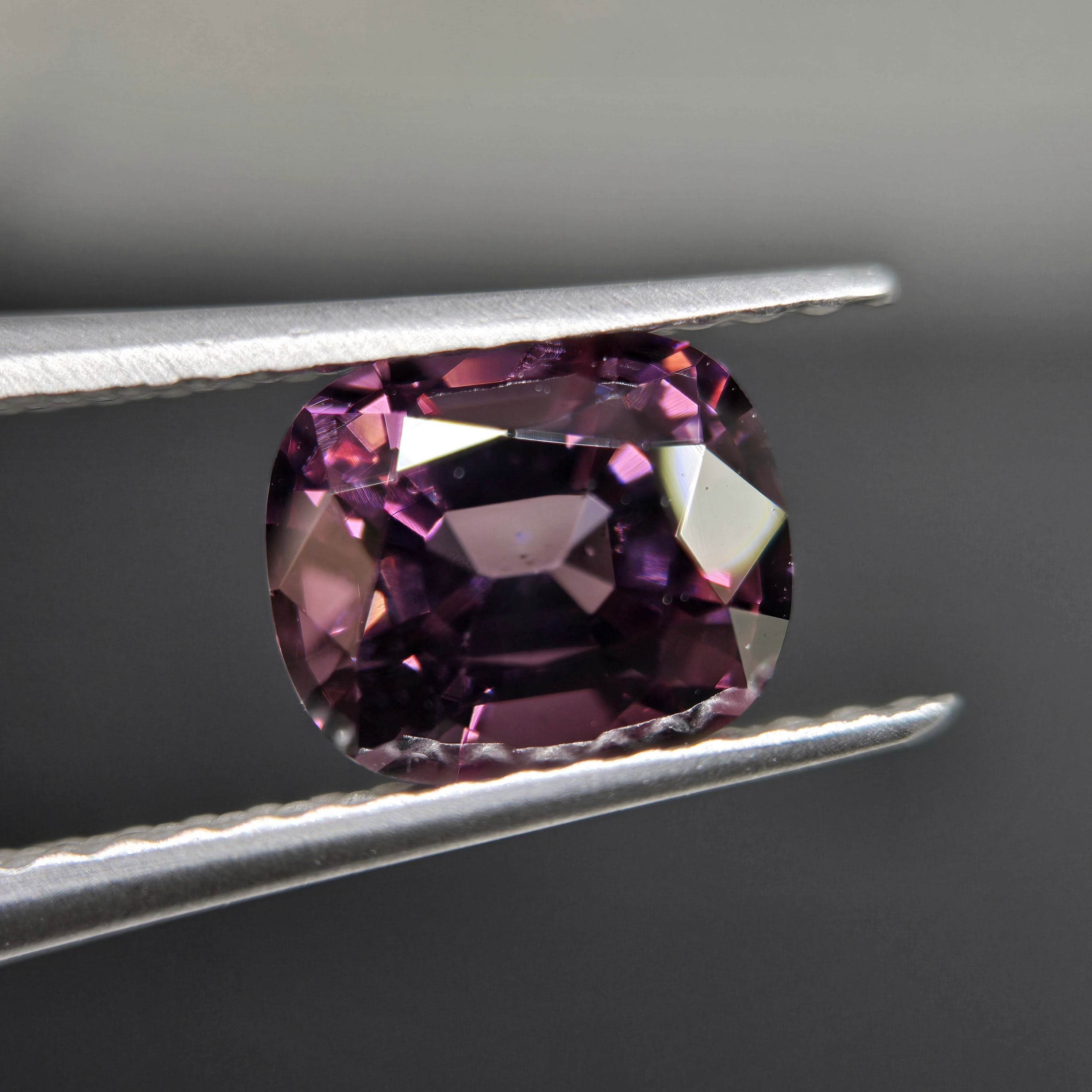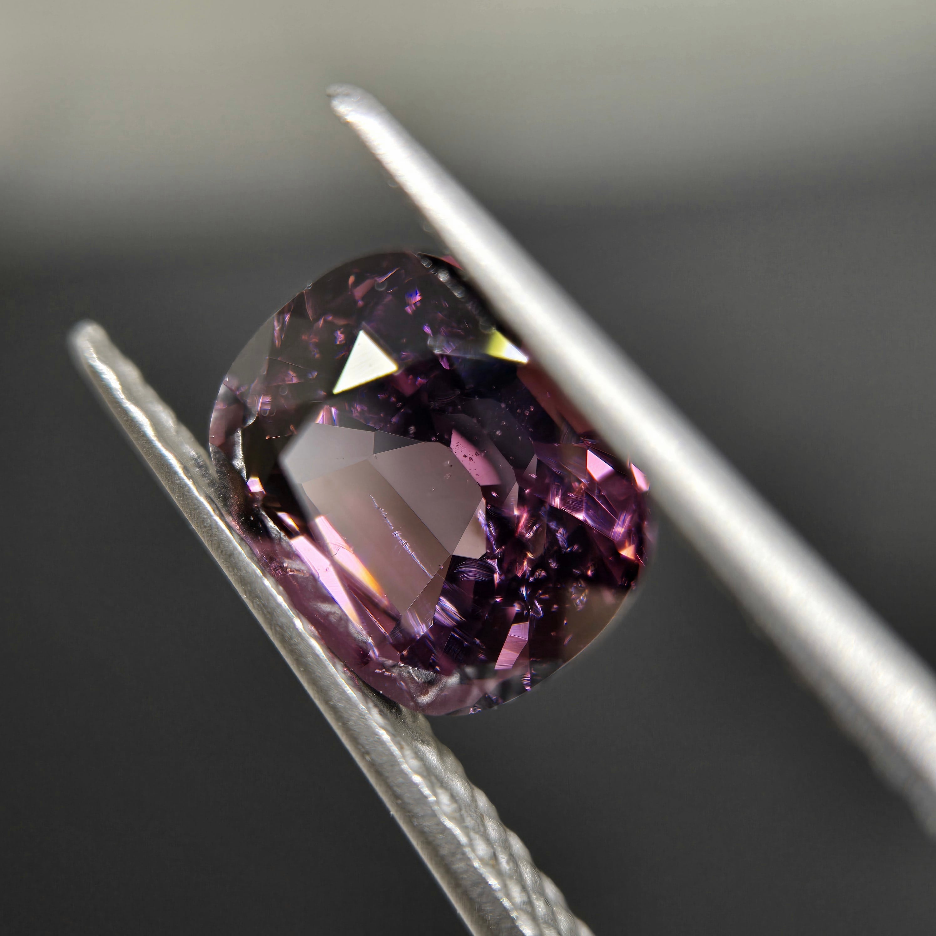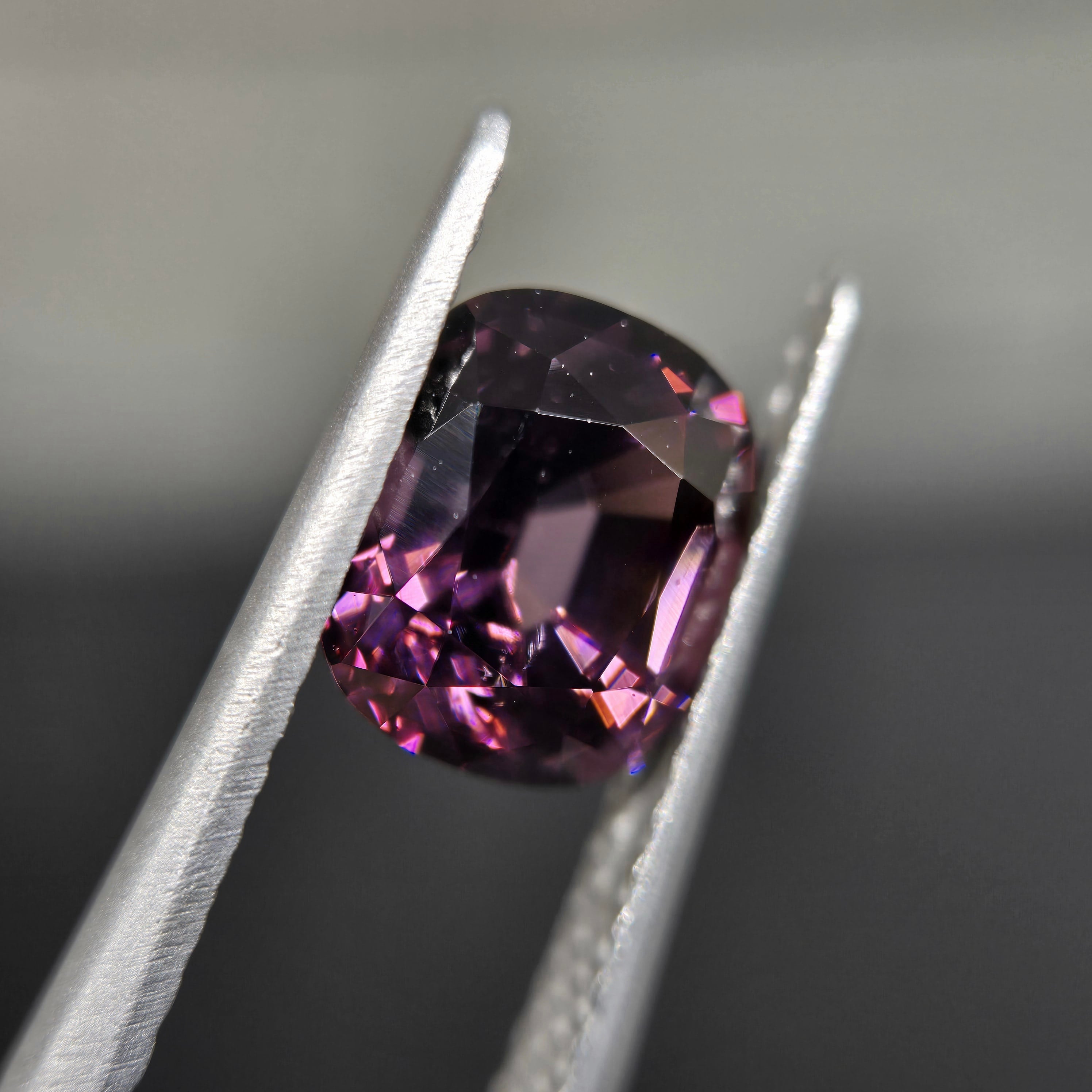やや褐色を含む落ち着いたパープルカラーのスピネルです。