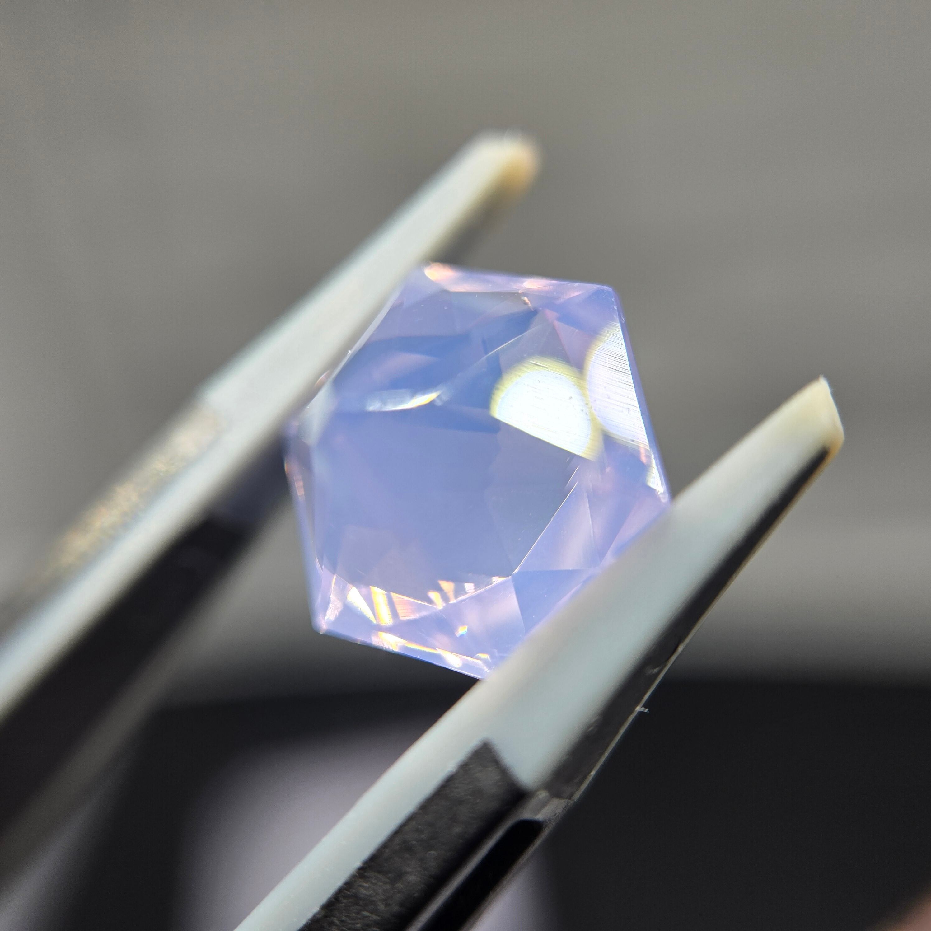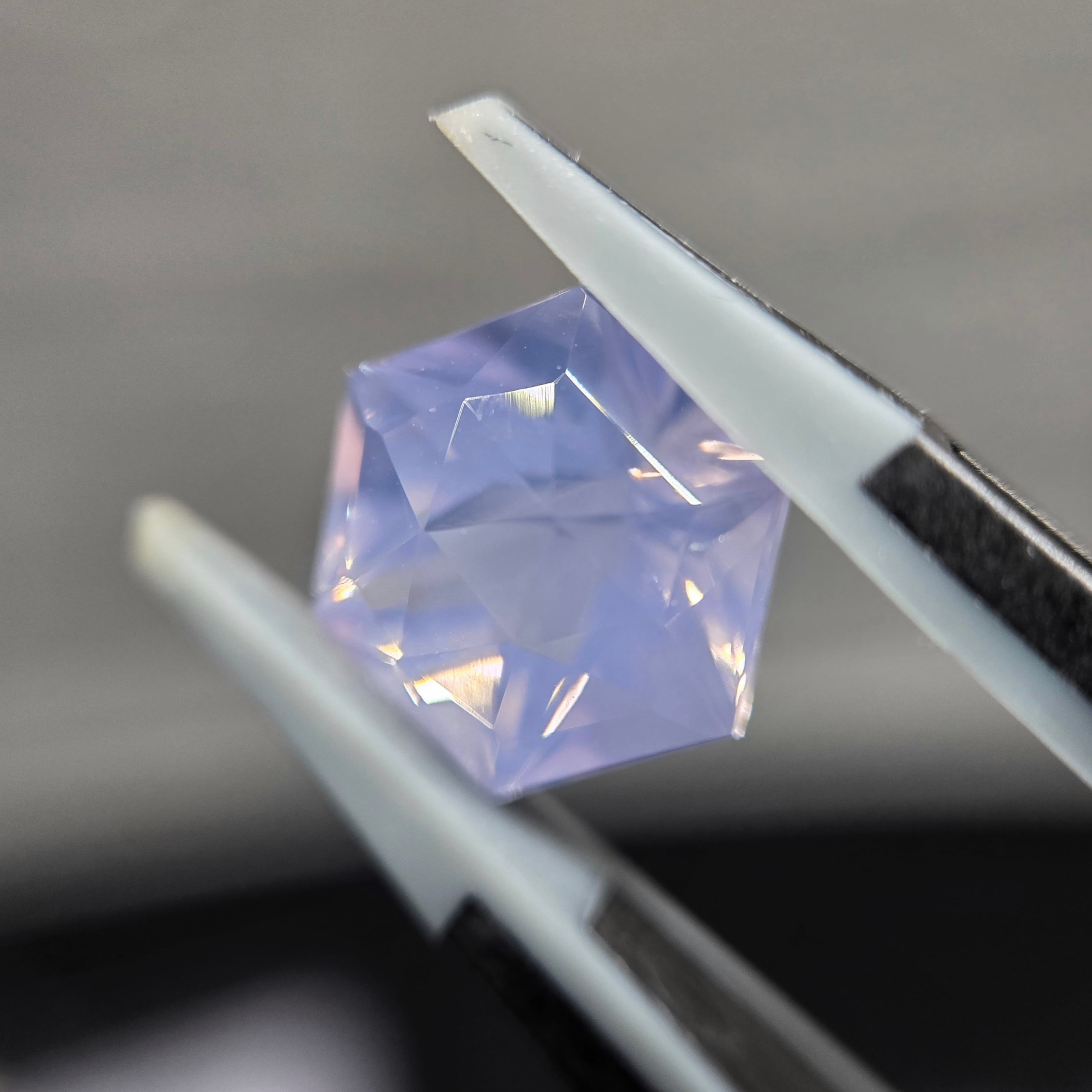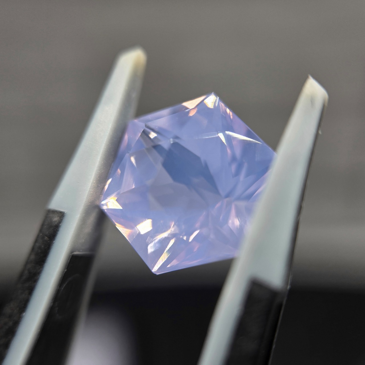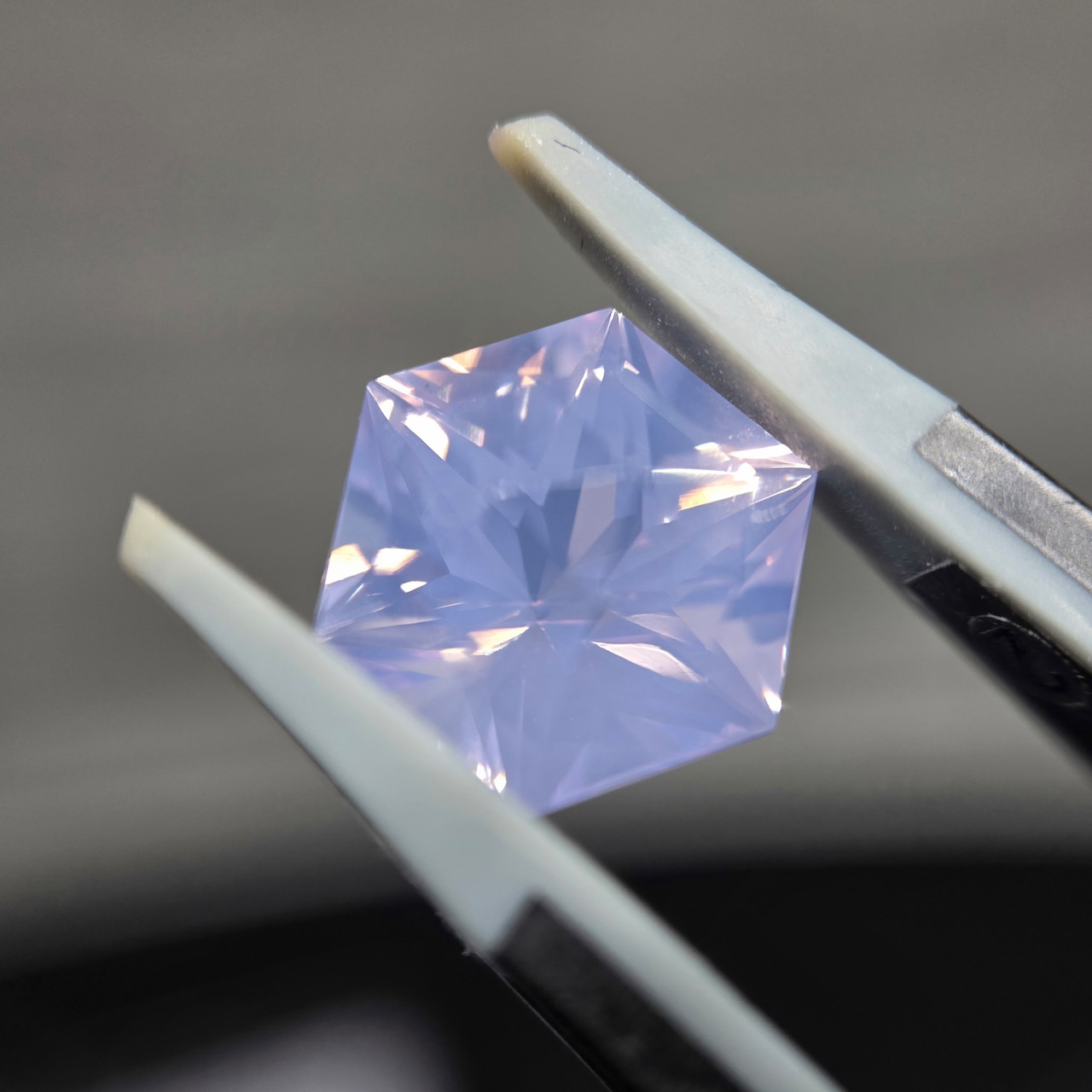 スコロライトは、クォーツに人為的な処理を加えることにより、シルキー、ミルキーなラベンダーカラーになっております。