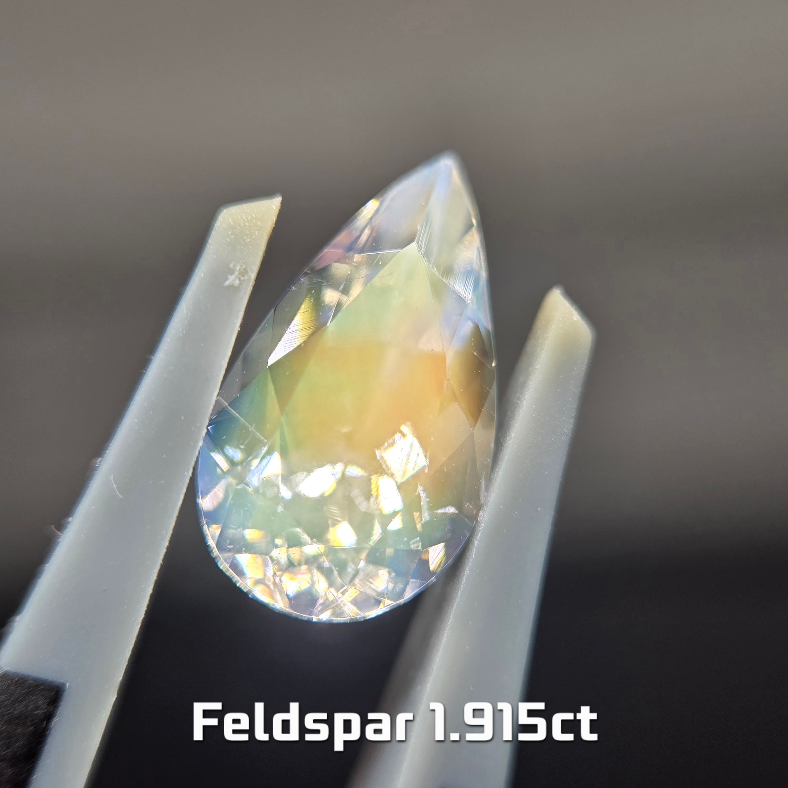 ①フェルスパー(アンデシン/ラブラドーライト)、ペアシェイプカットルース(1.915カラット)