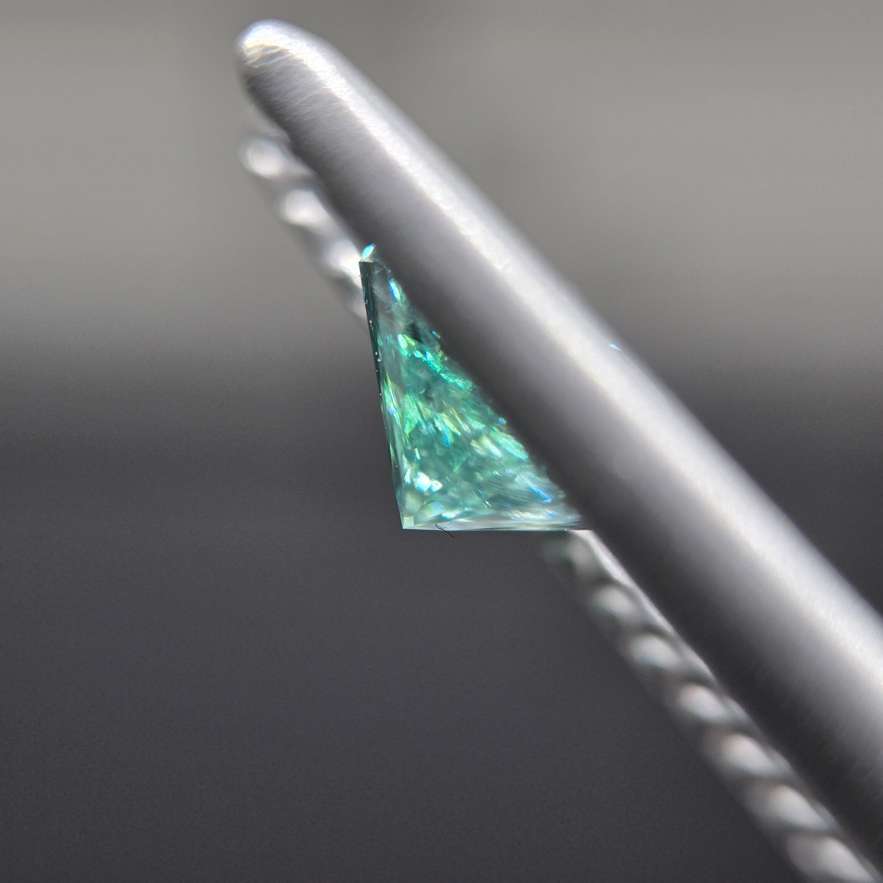 こちらのコーネルピンは、緑色にバイオレットカラーを含み、クラックや内包物はありますが、光を反射すると細やかで艶やか、煌びやかな輝きを放つ、素晴らしい作品となっております。