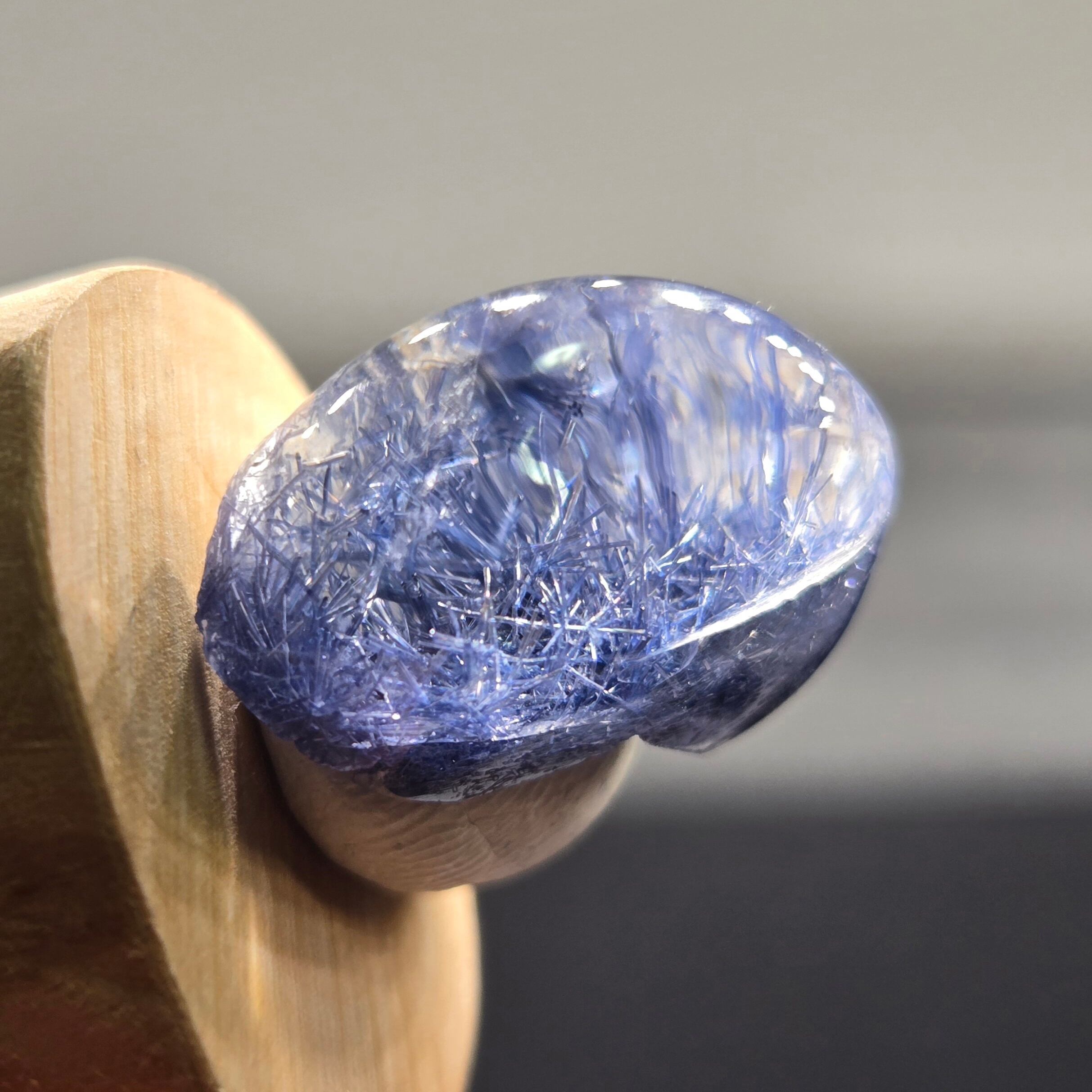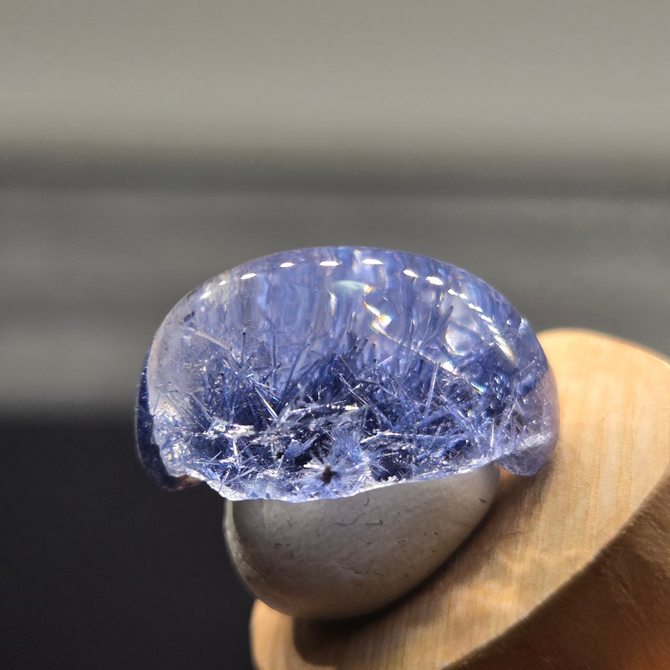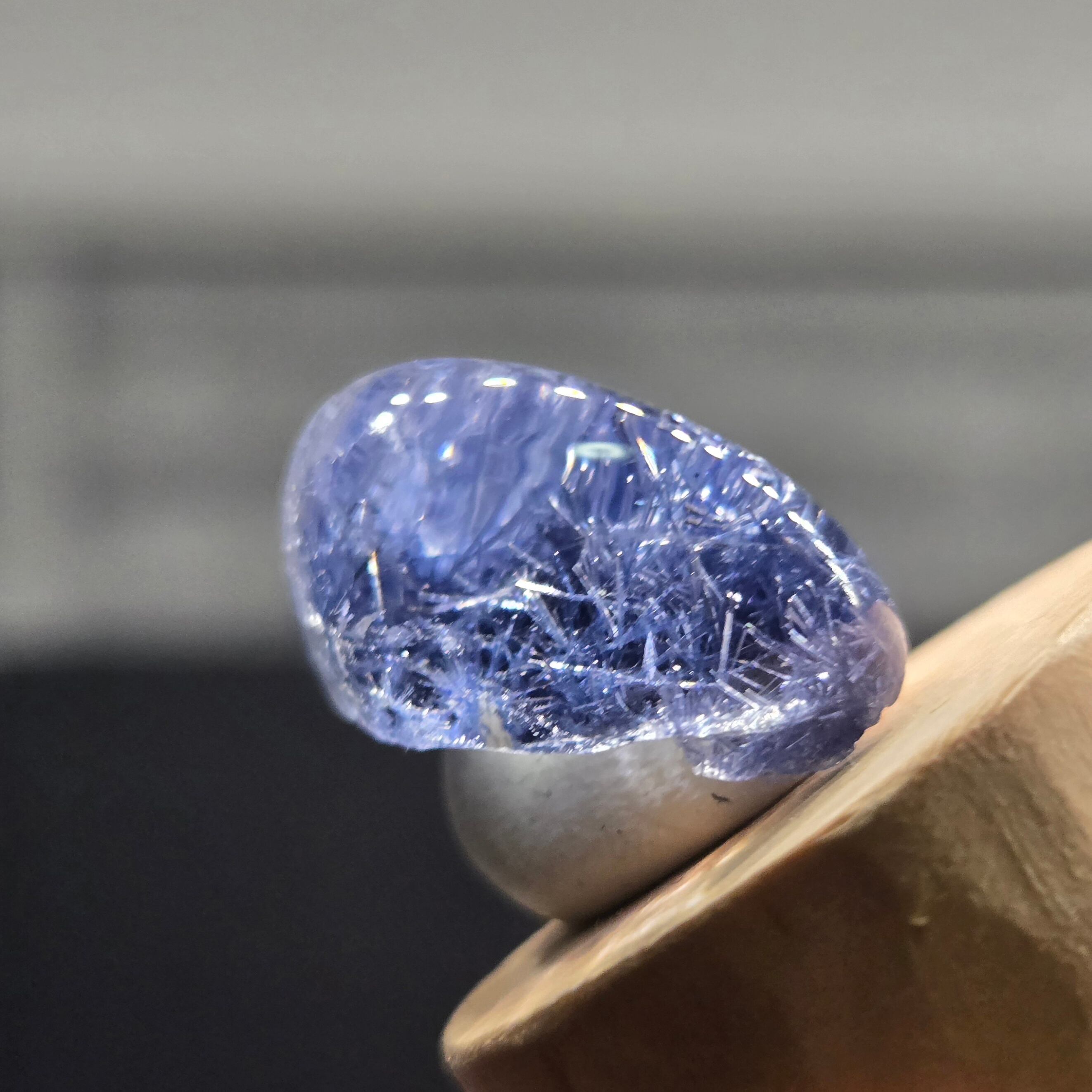 ・17カラット、長辺約20ミリと大きさもあり、特に側面から見ると、内部の景色、インクルージョンの世界をよく見ることができます。