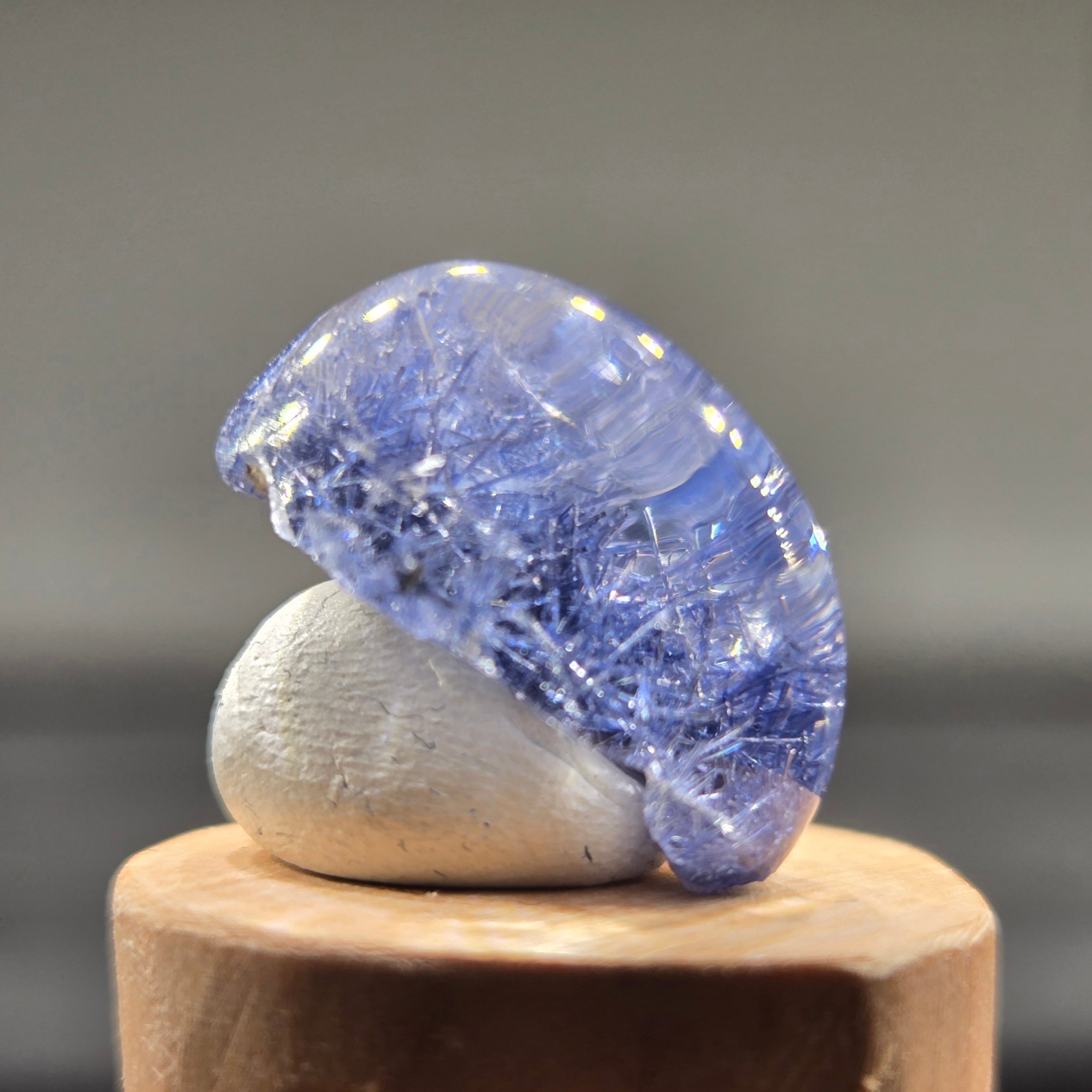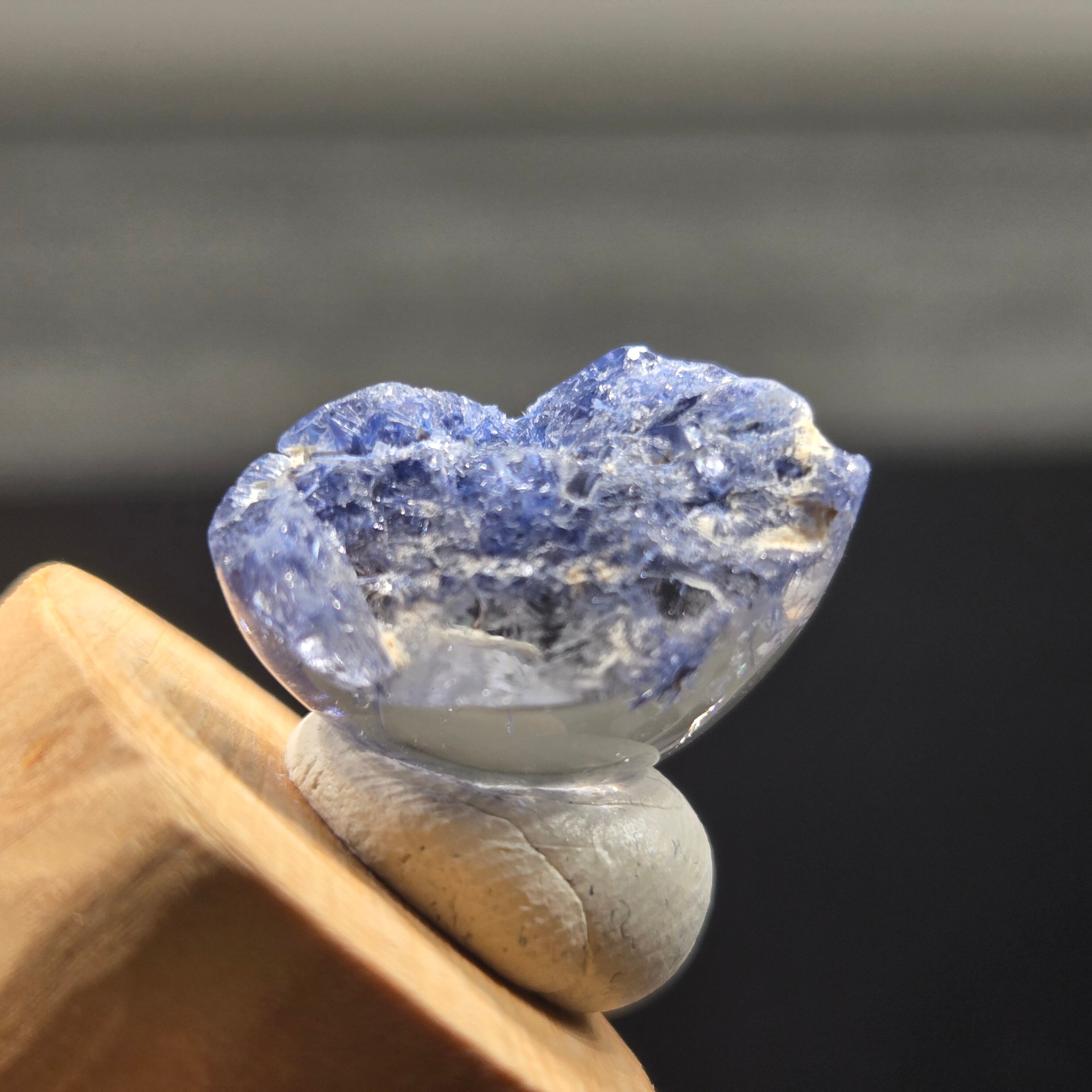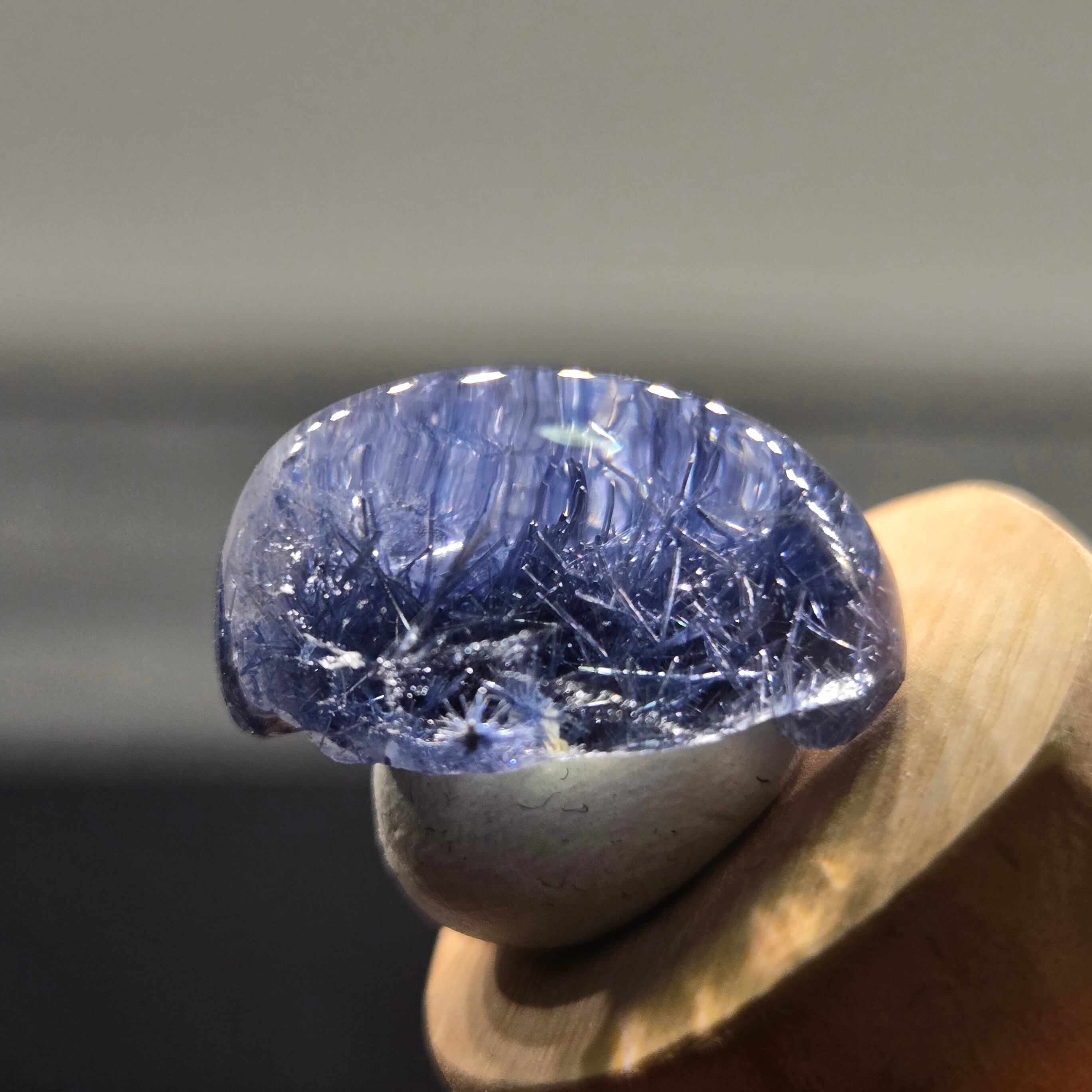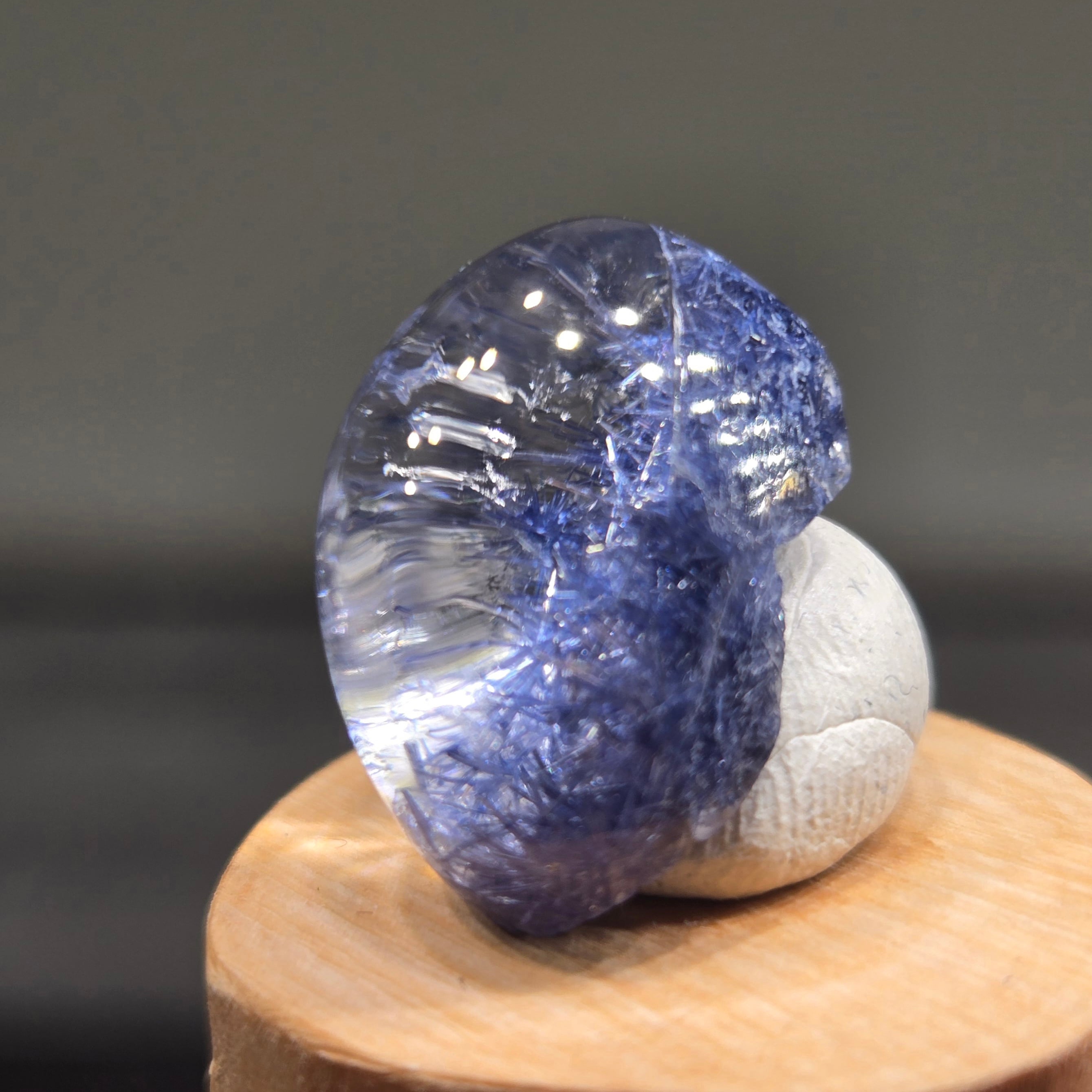 ・17カラット、長辺約20ミリと大きさもあり、特に側面から見ると、内部の景色、インクルージョンの世界をよく見ることができます。