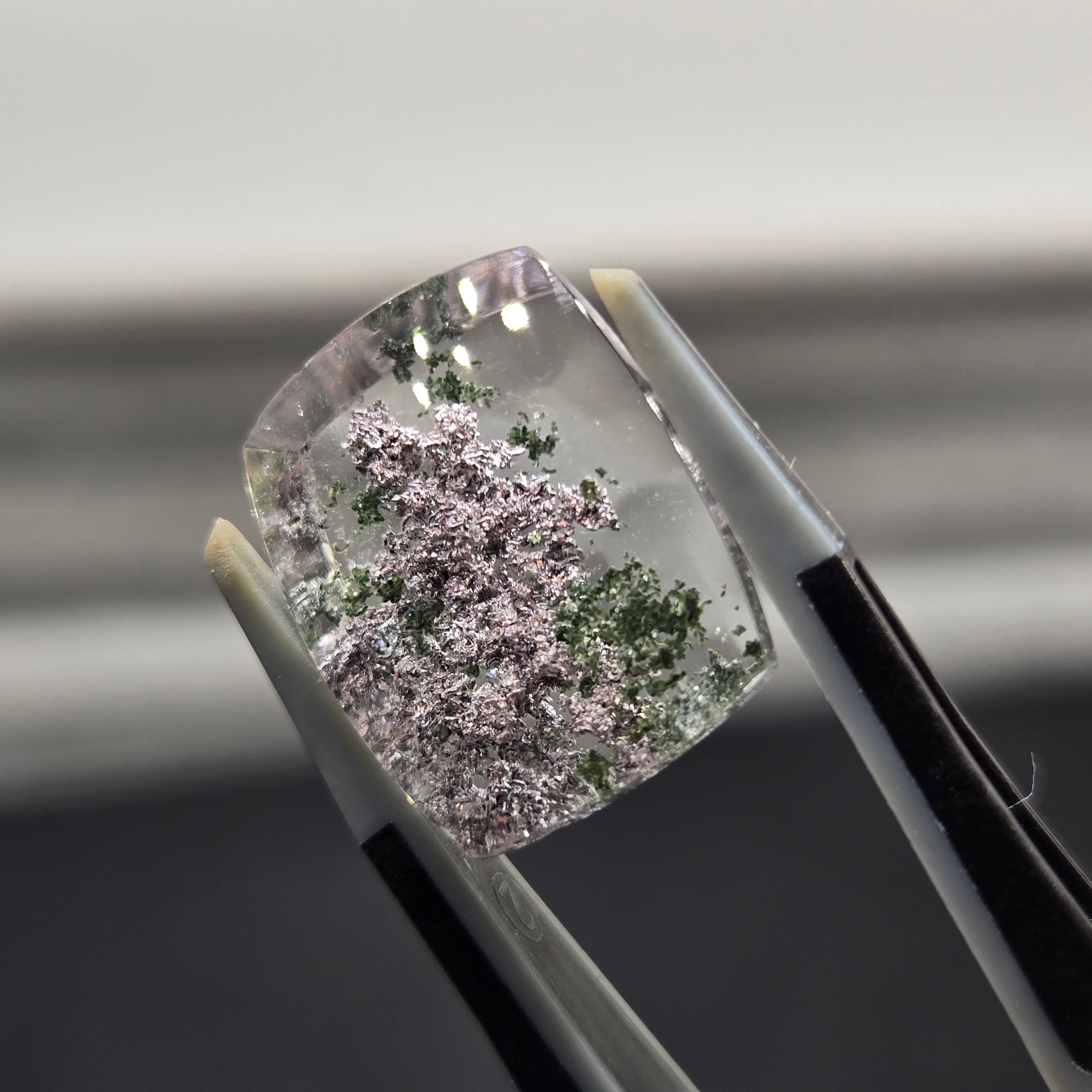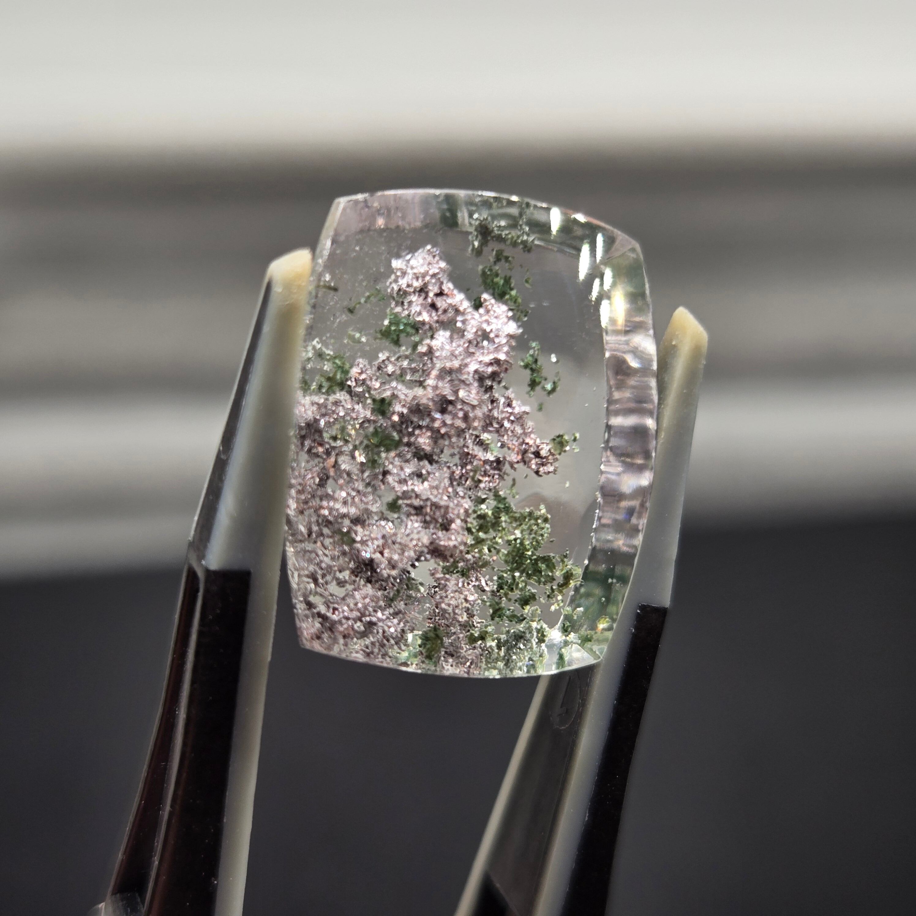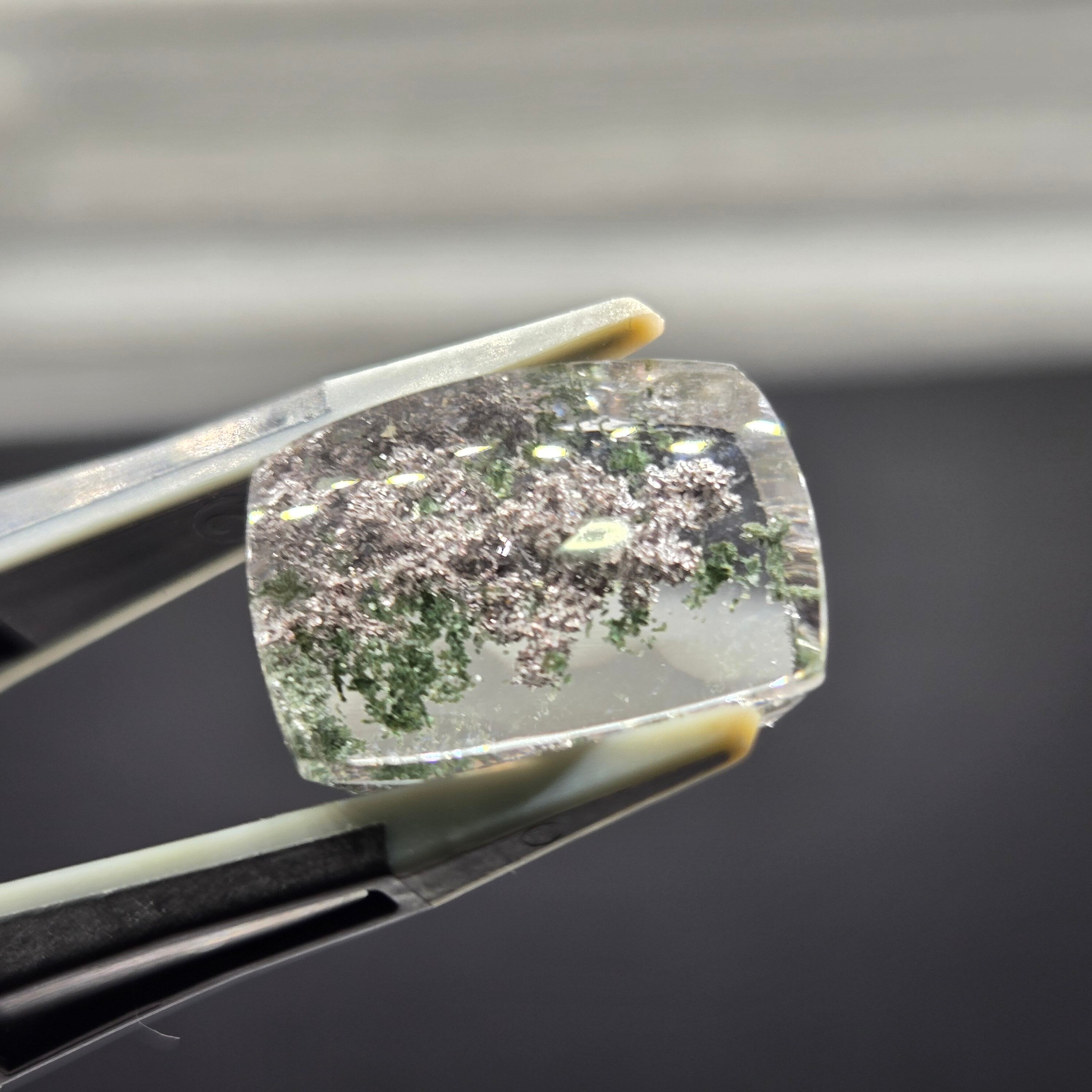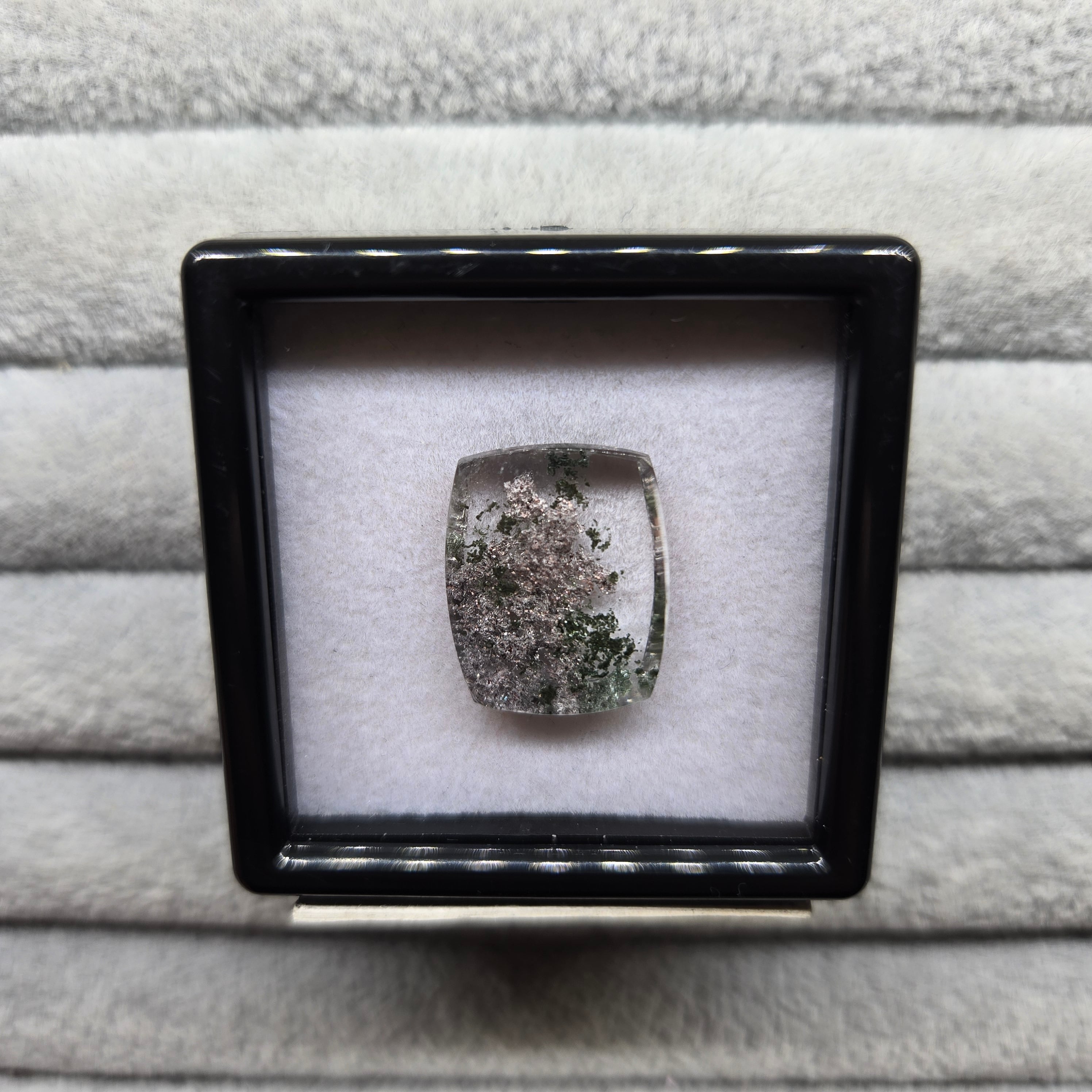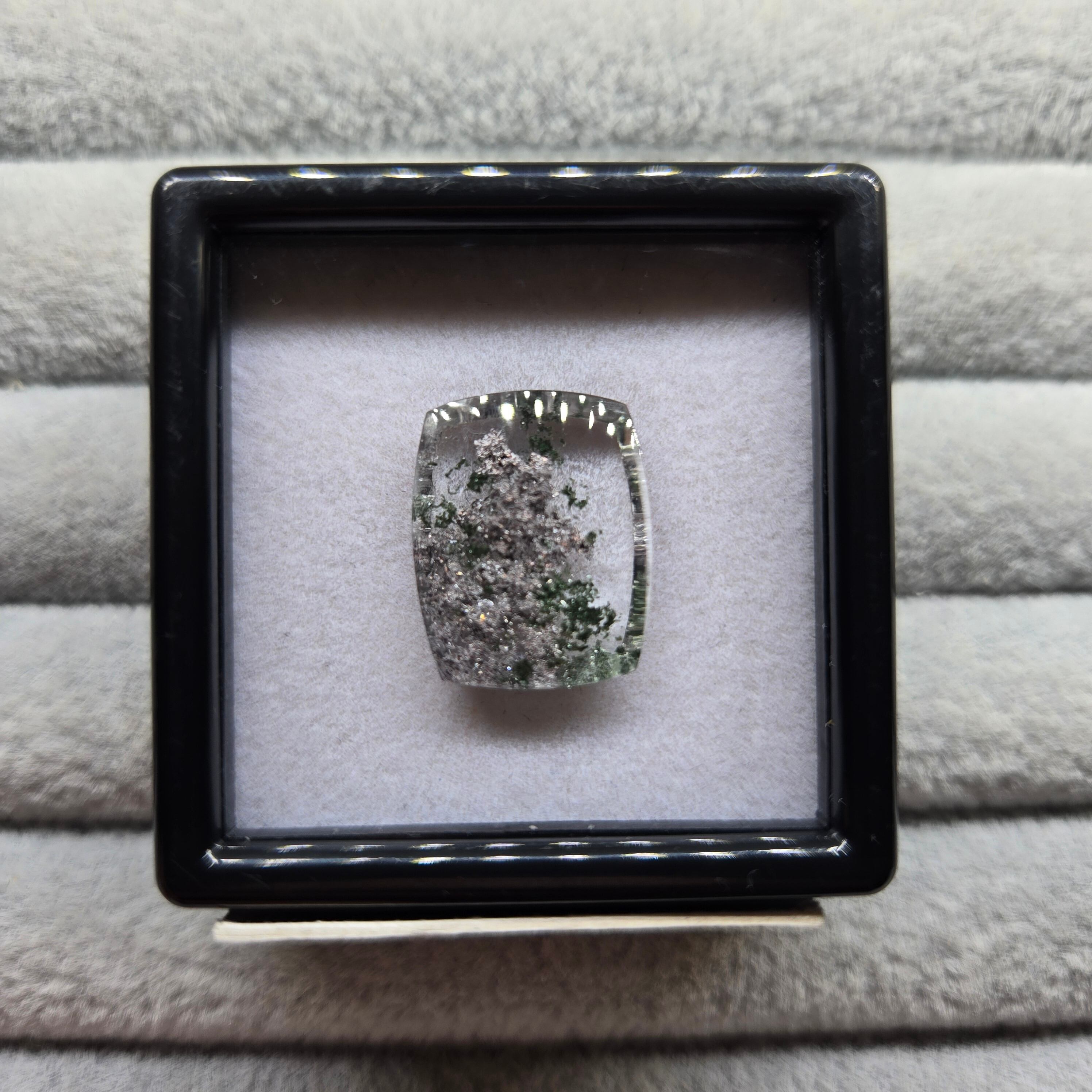 ・写真ではわかりにくいですが、内包物に接している結晶がキラキラする部分もあり、動かしても楽しむことができます。
