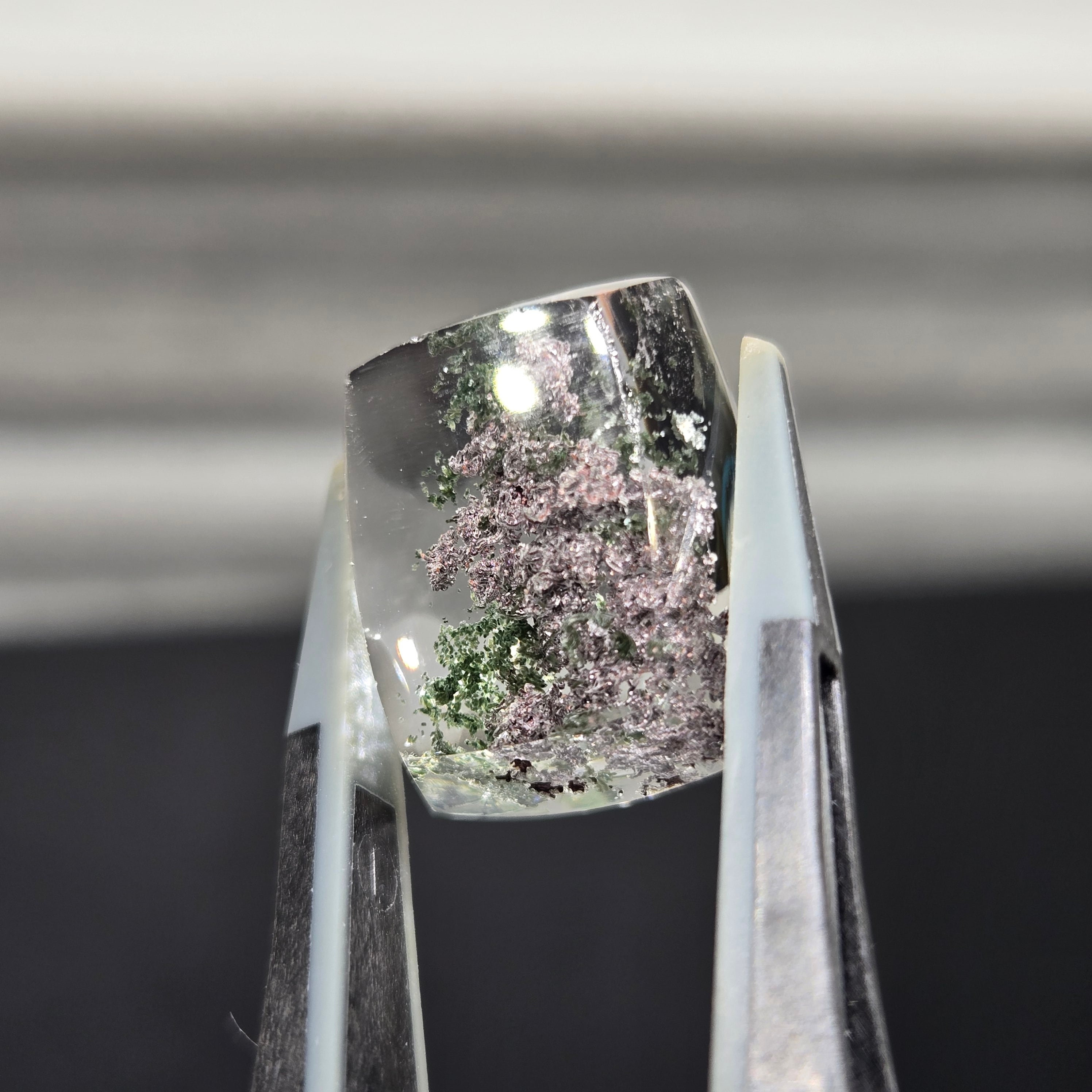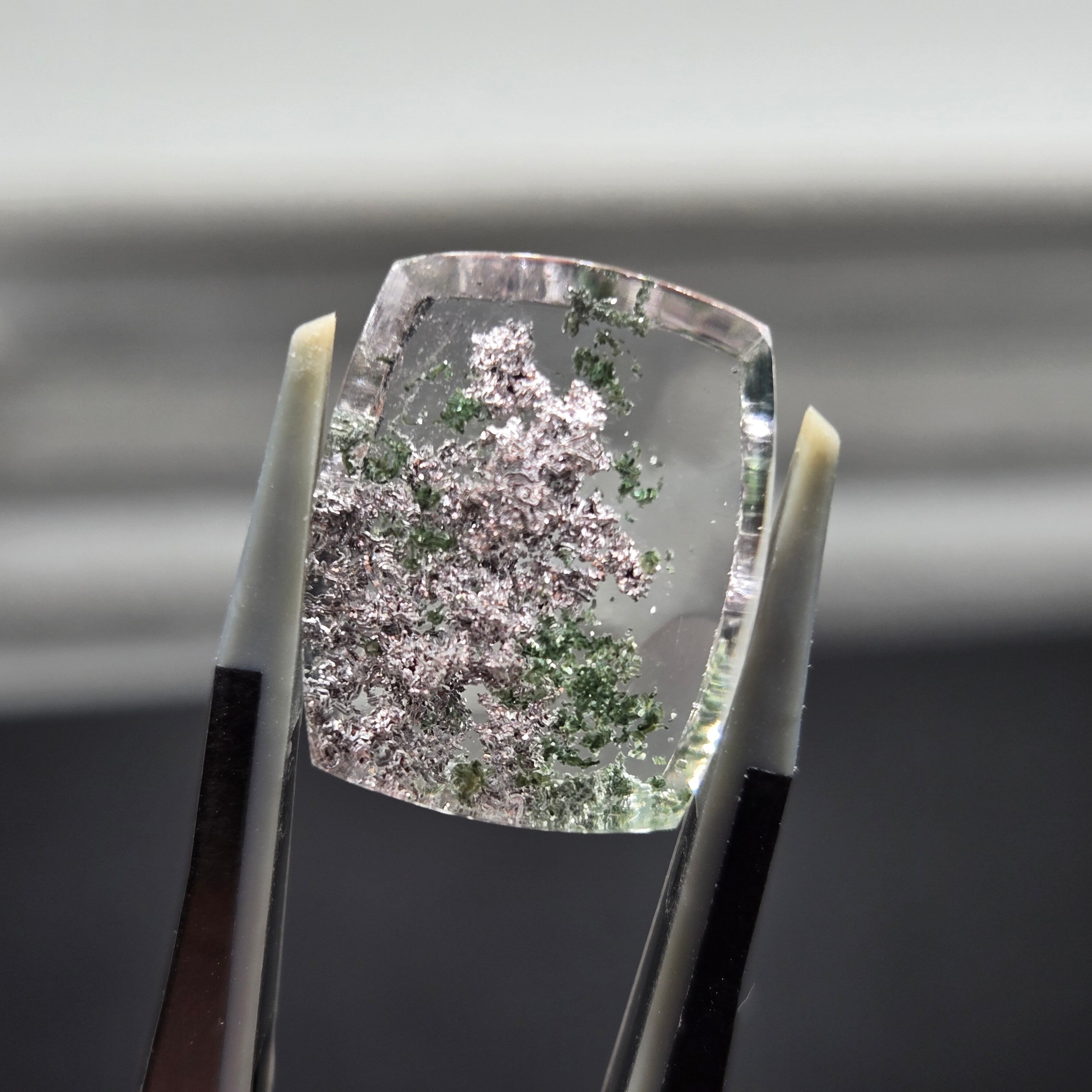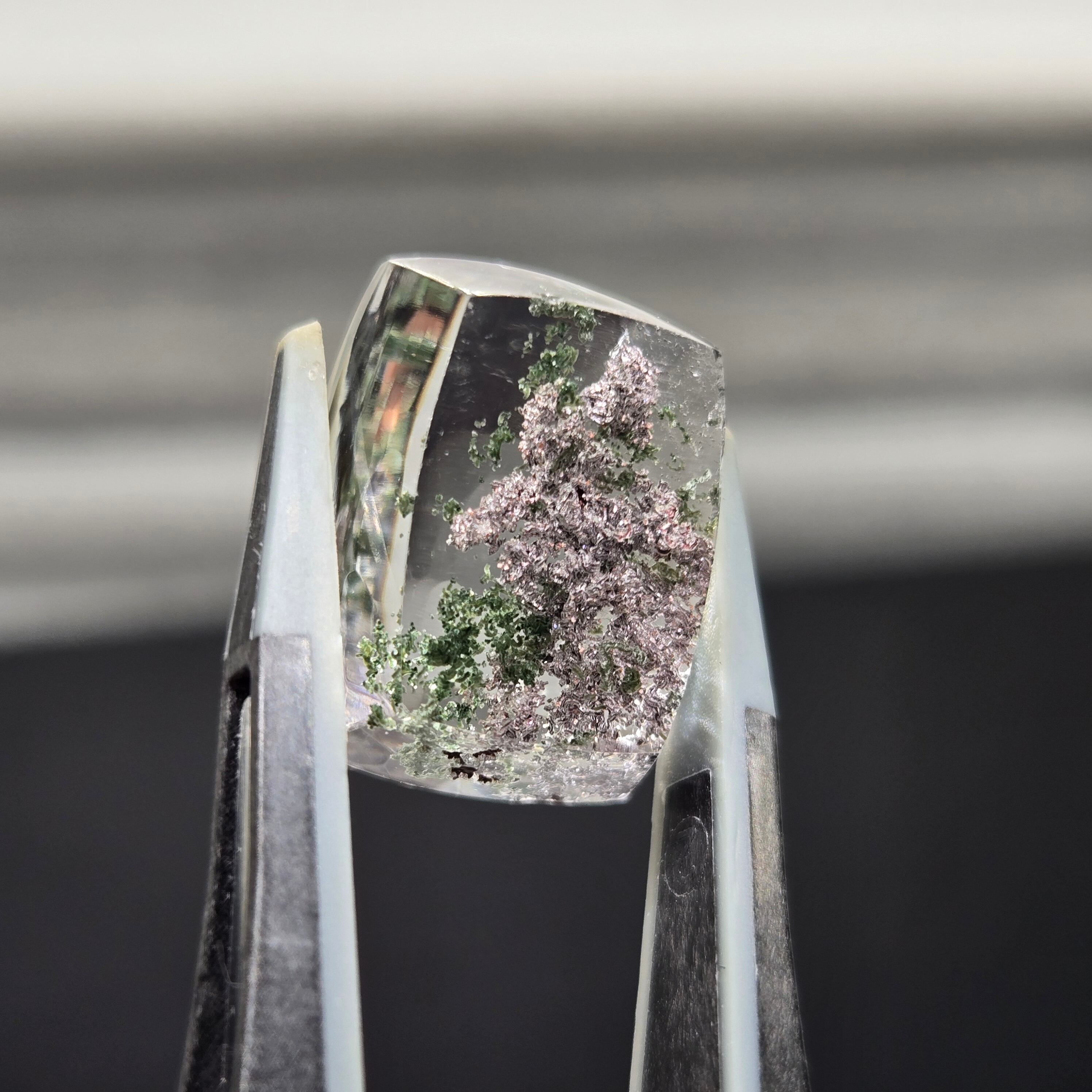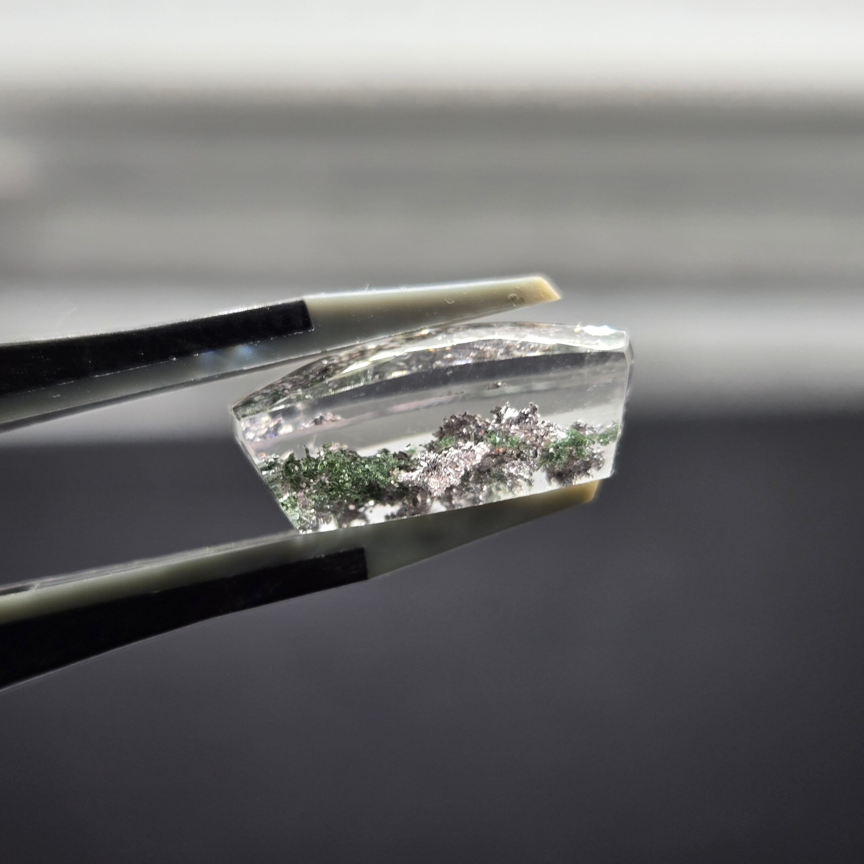 ・写真ではわかりにくいですが、内包物に接している結晶がキラキラする部分もあり、動かしても楽しむことができます。
