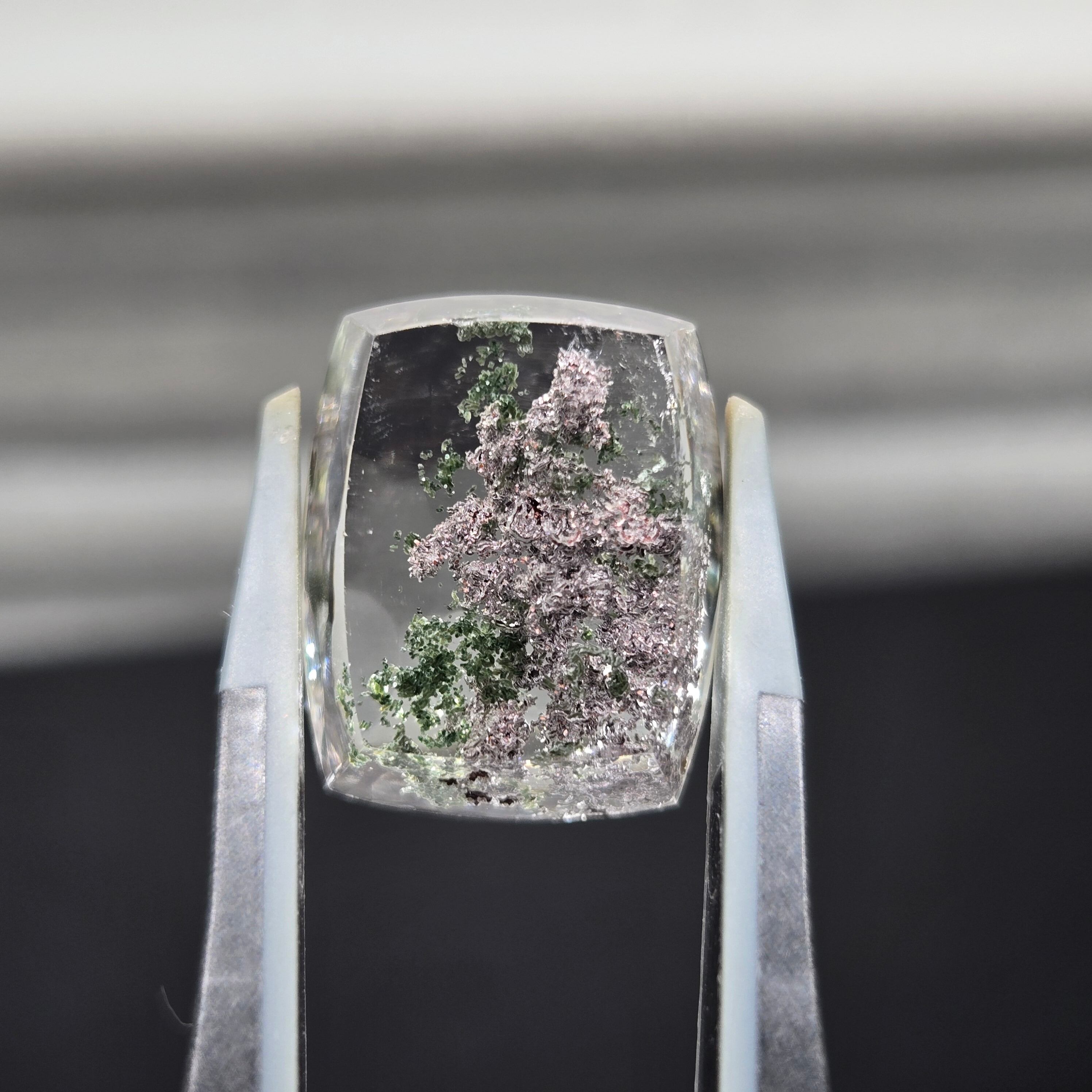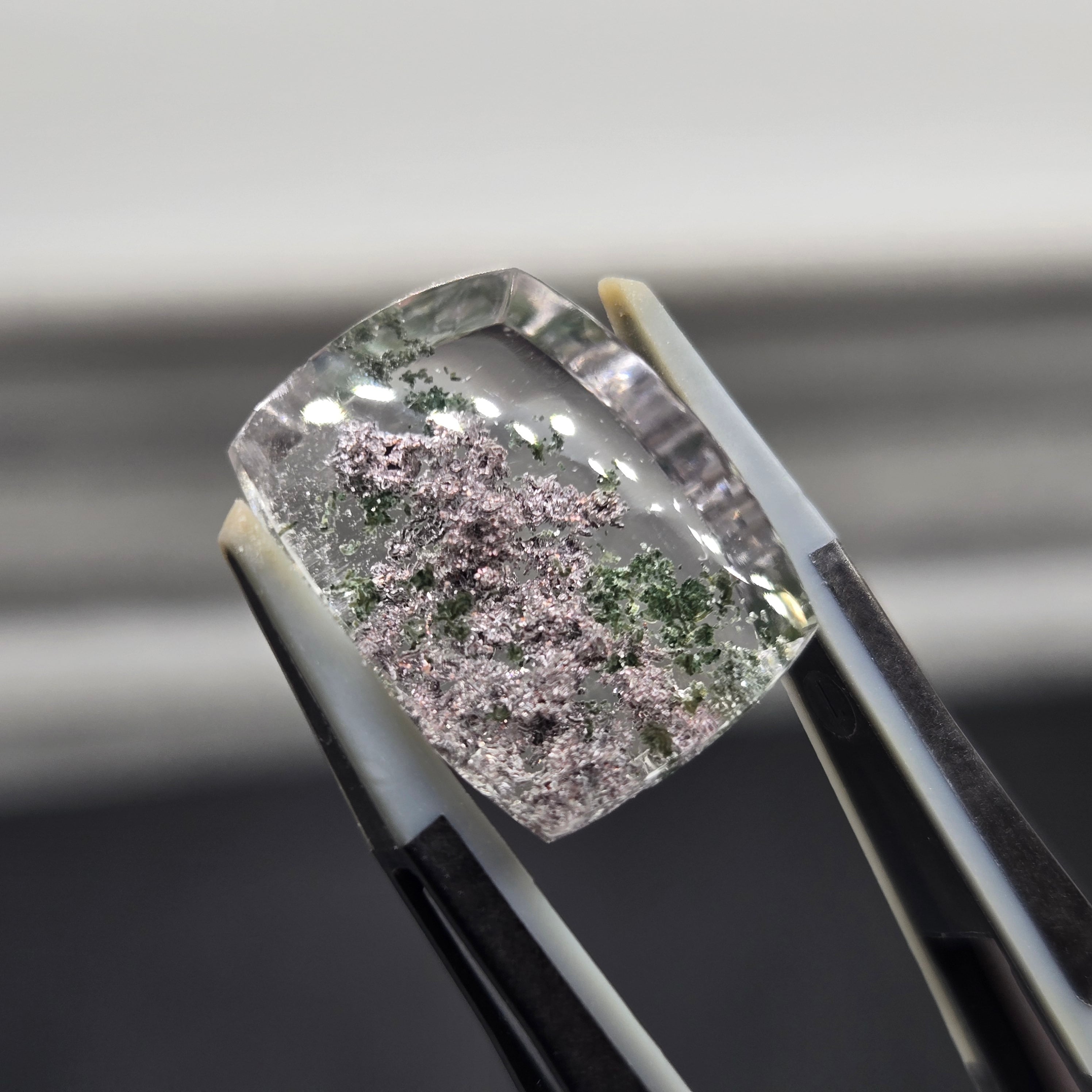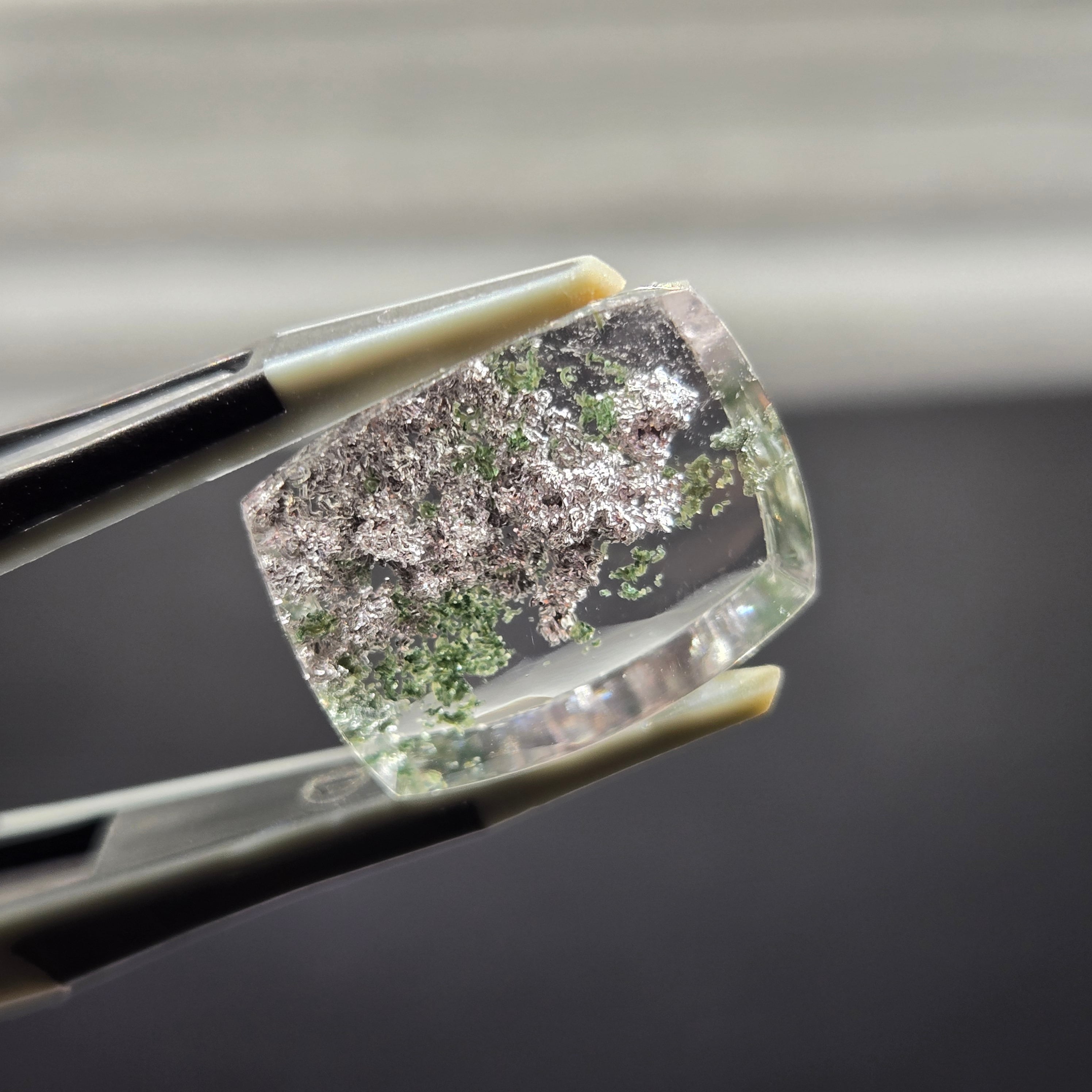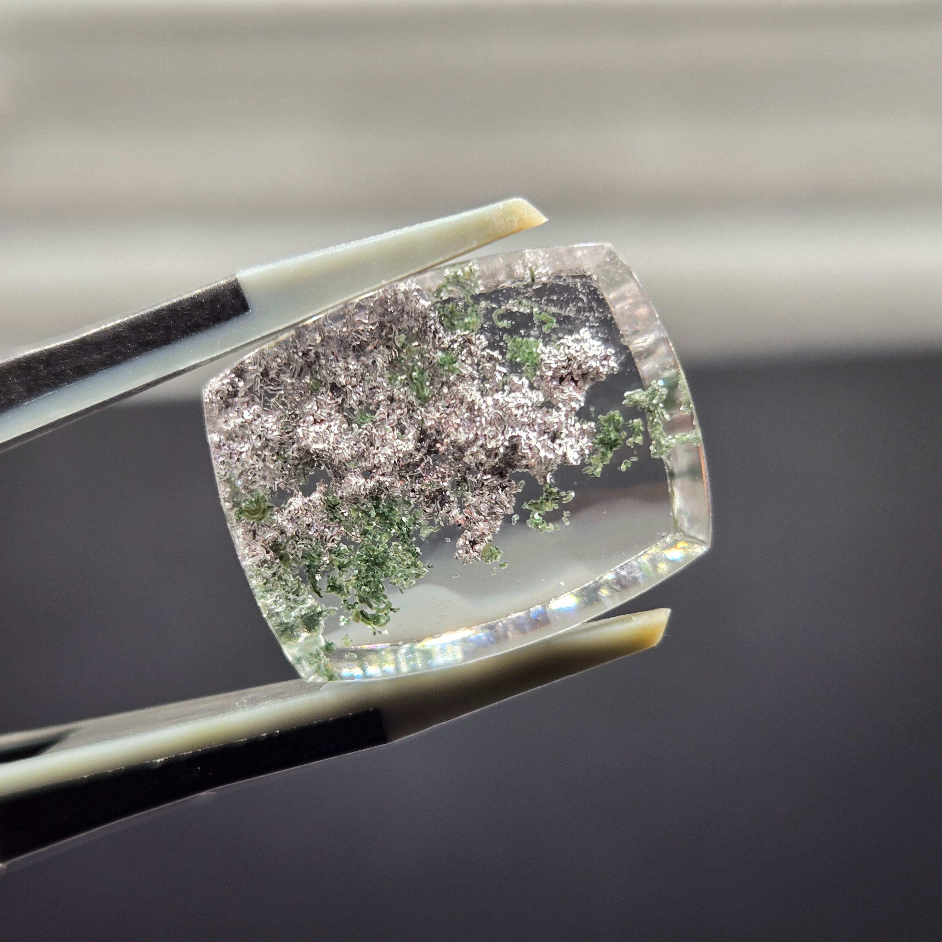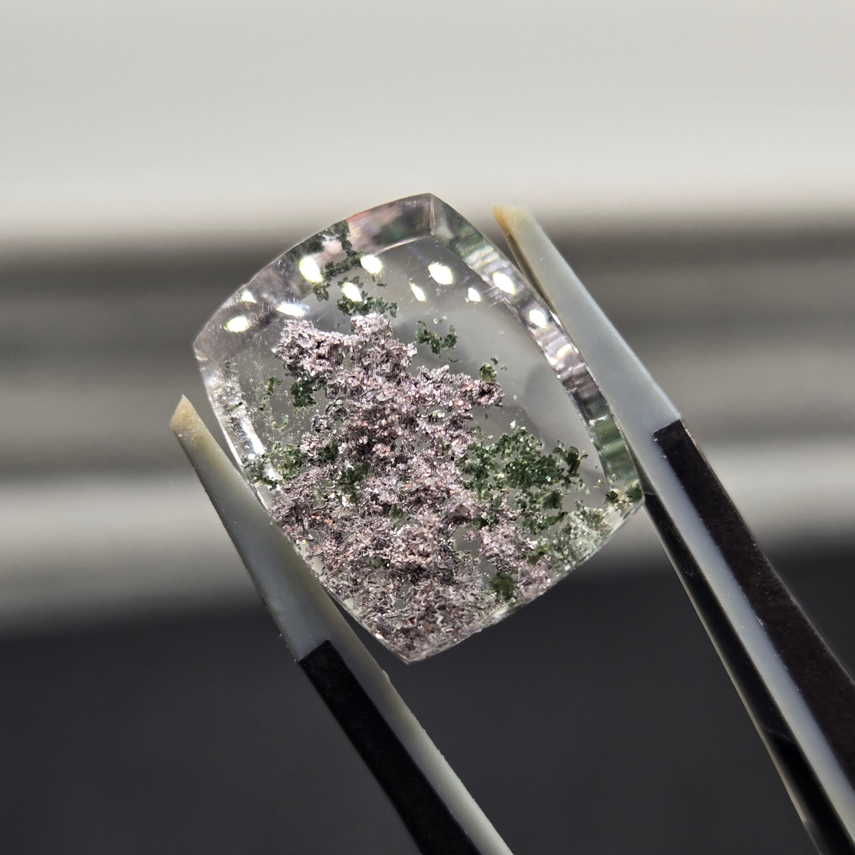 ・写真ではわかりにくいですが、内包物に接している結晶がキラキラする部分もあり、動かしても楽しむことができます。