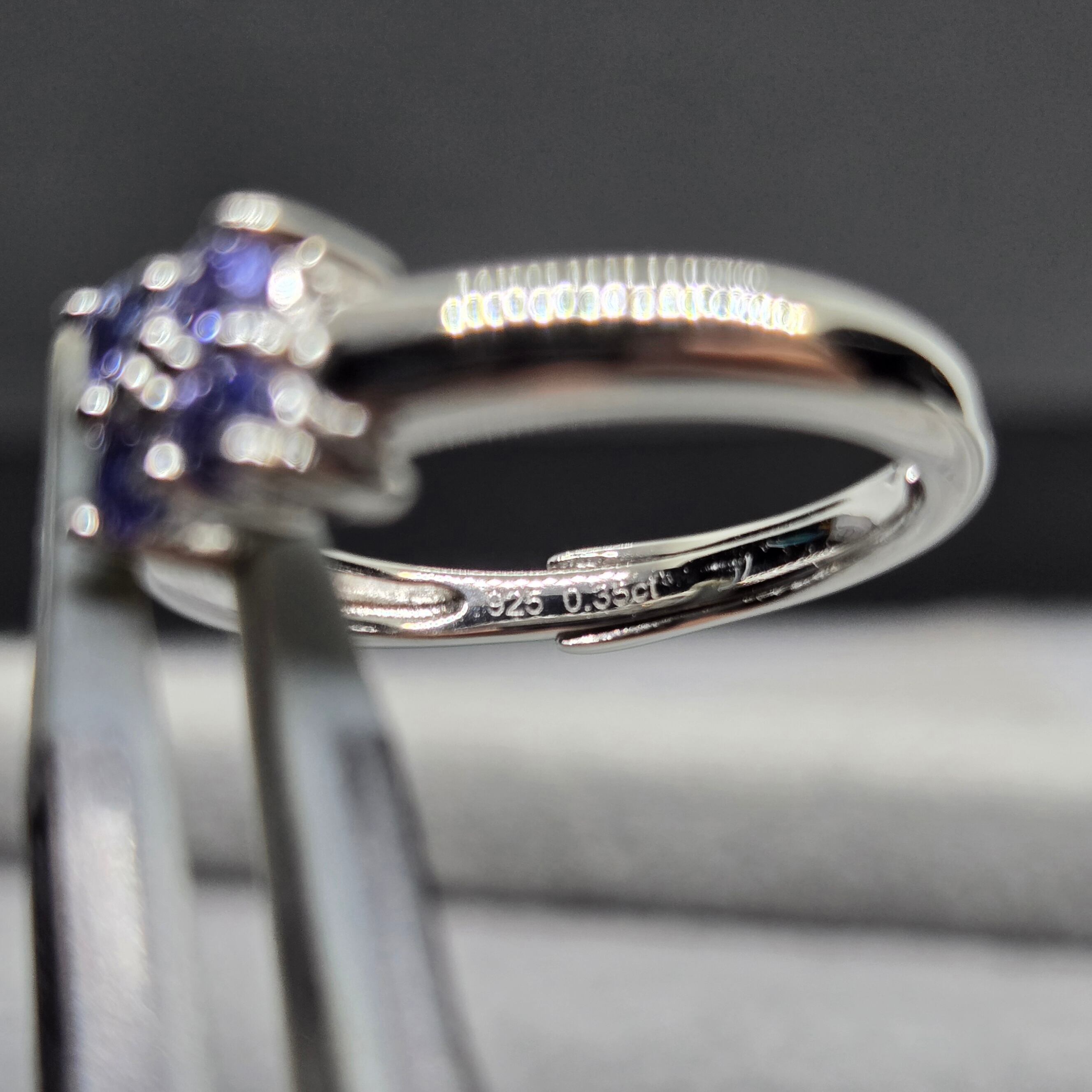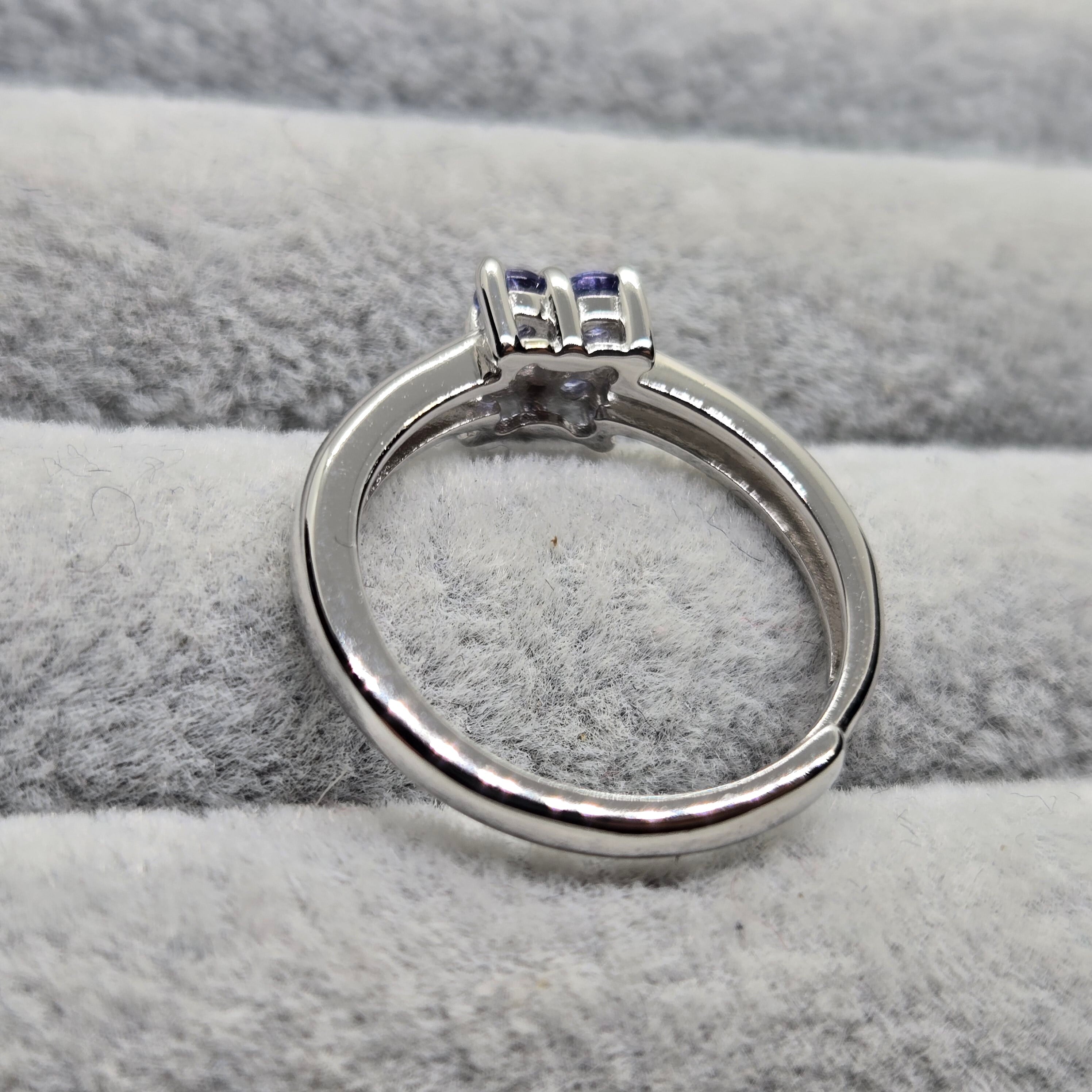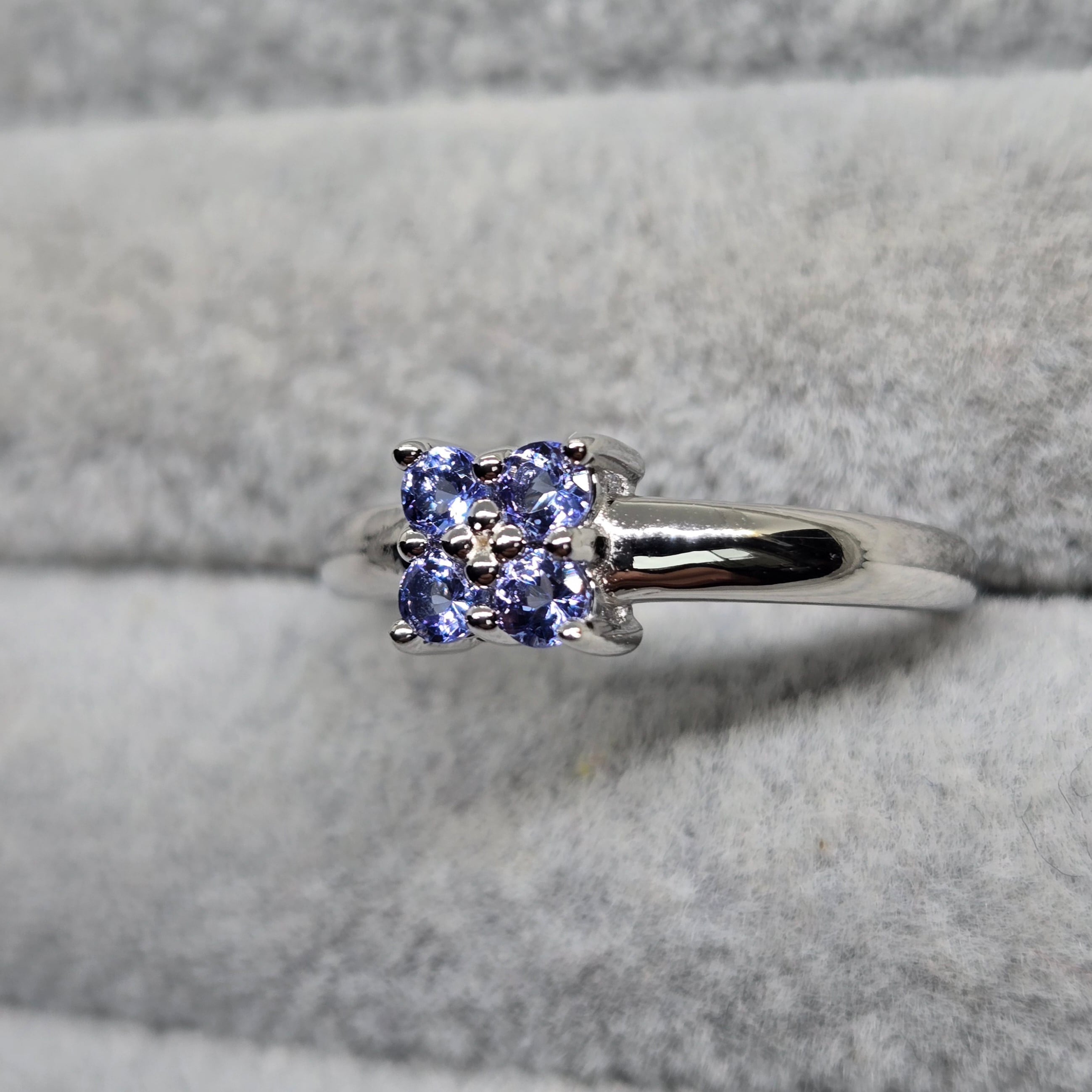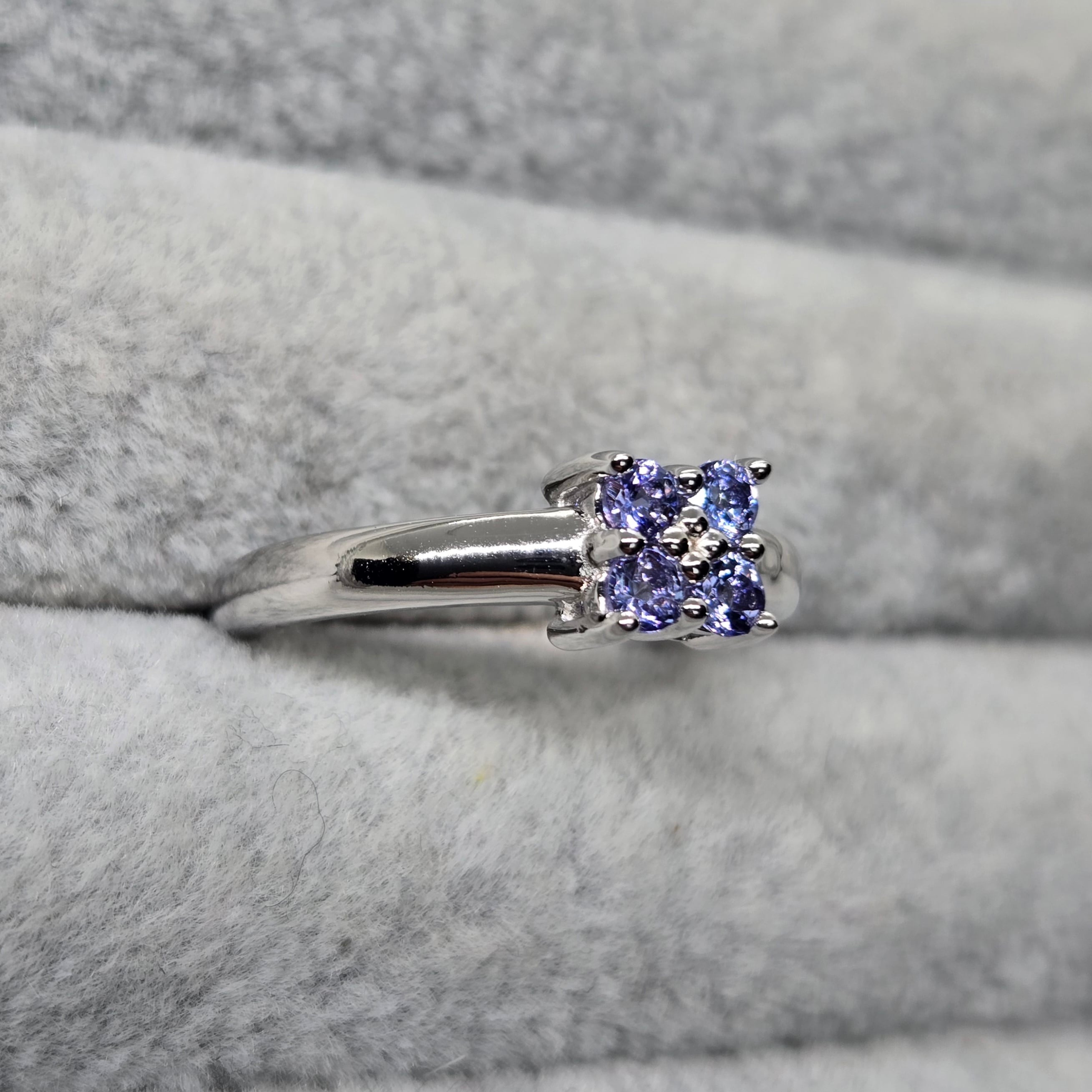 ・約2ミリのライトカラーのタンザナイトを4石用い、四葉のようにも見えるシルバーリングです。