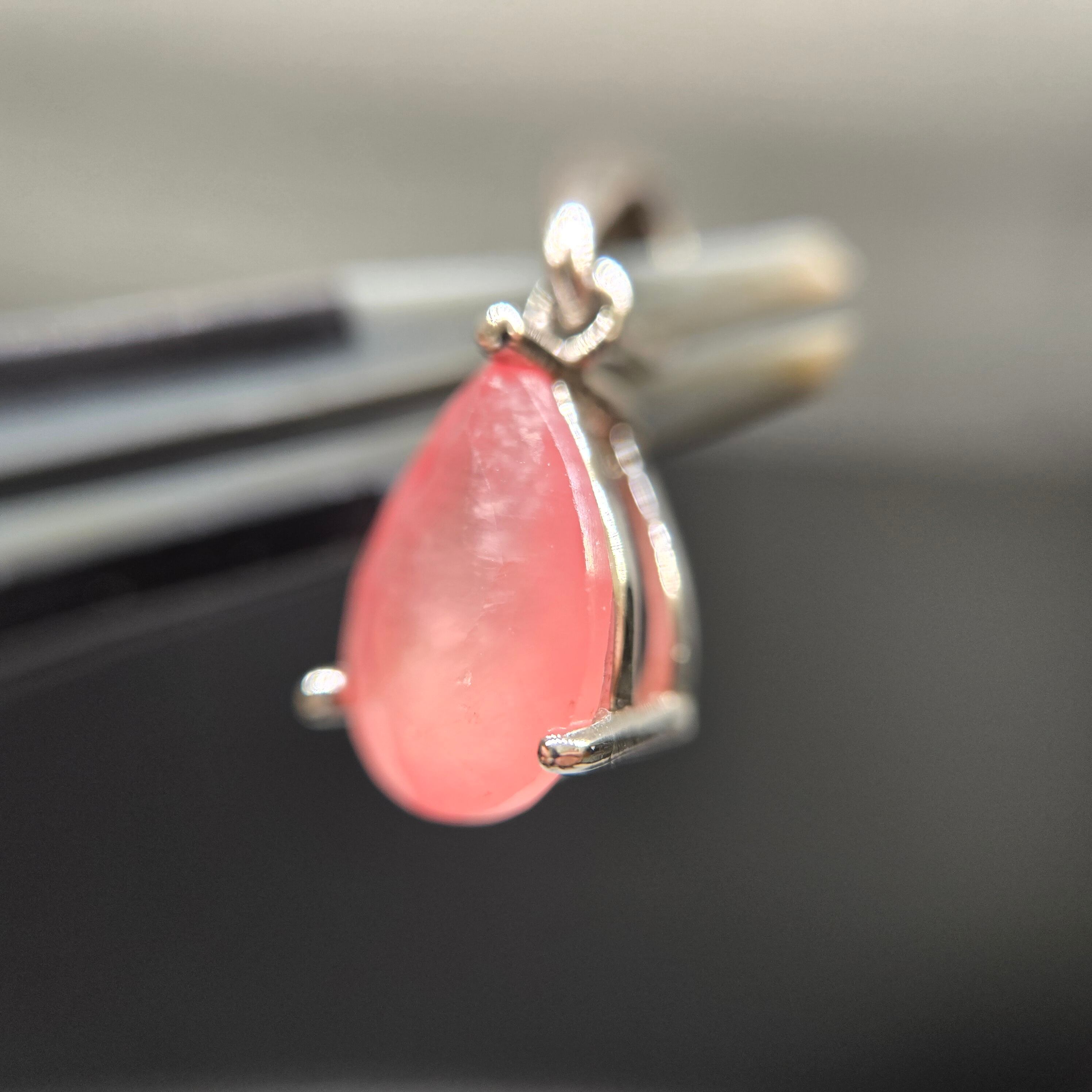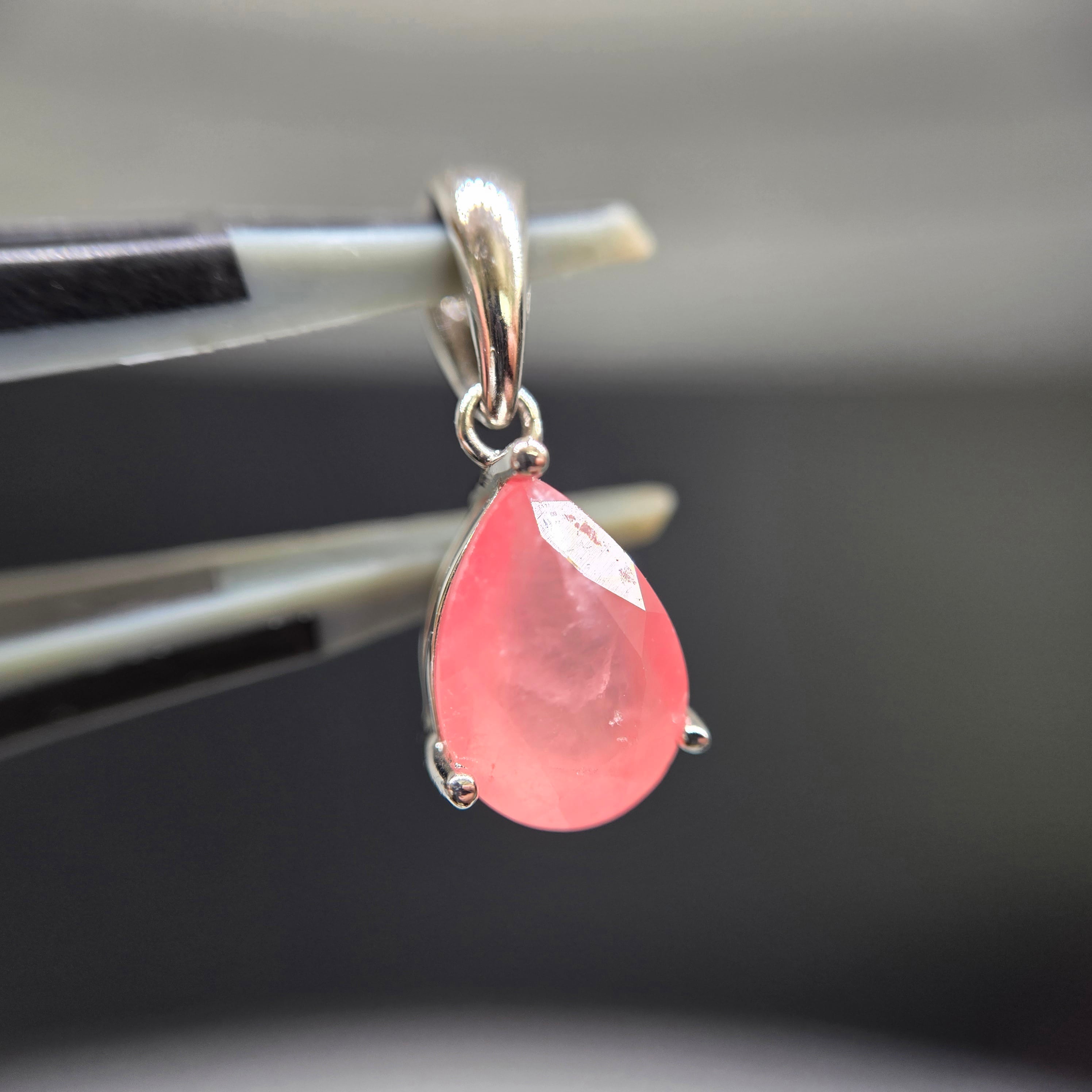 【訳あり品】北海道産 天然ロードクロサイト ペアシェイプ シルバーペンダント(トップのみ)