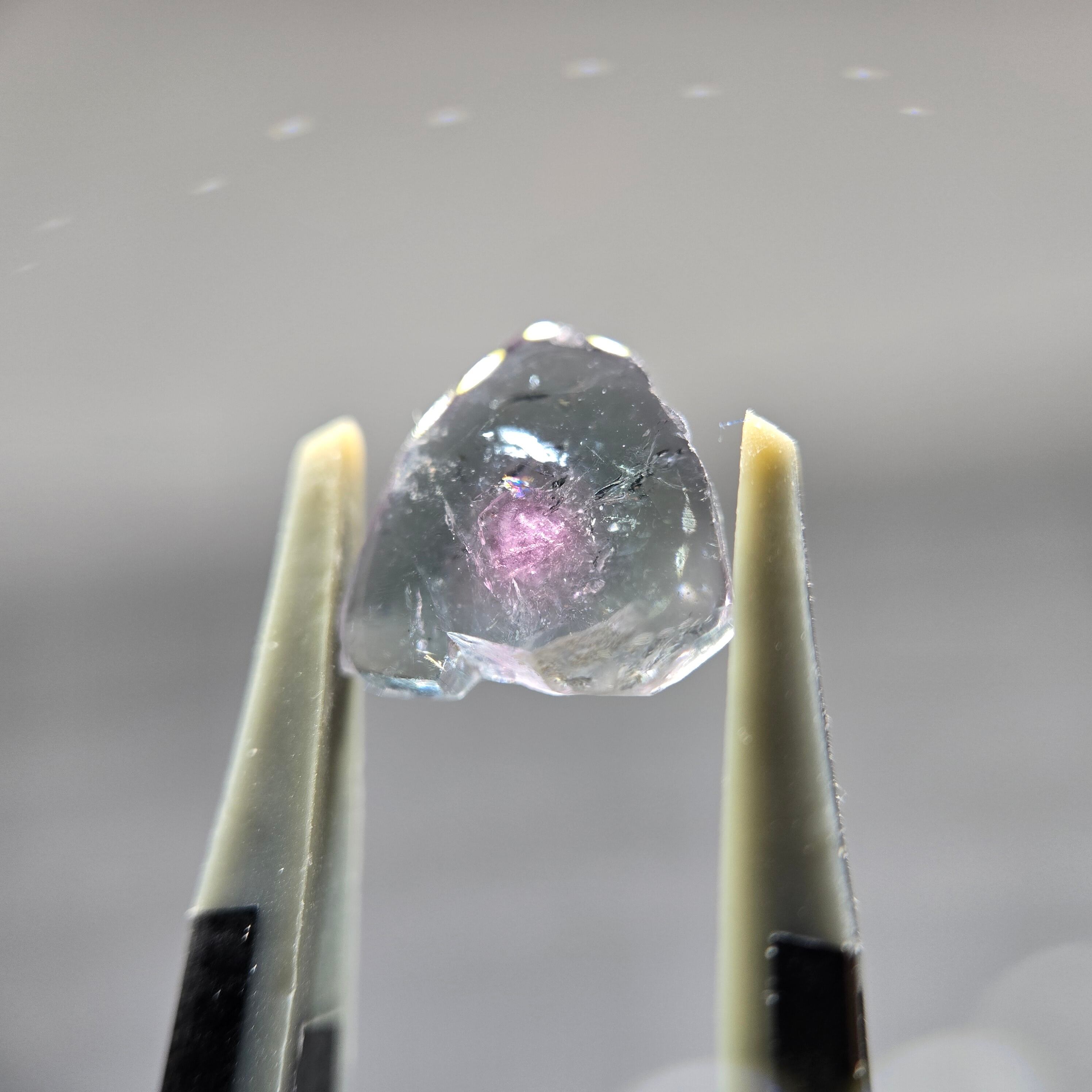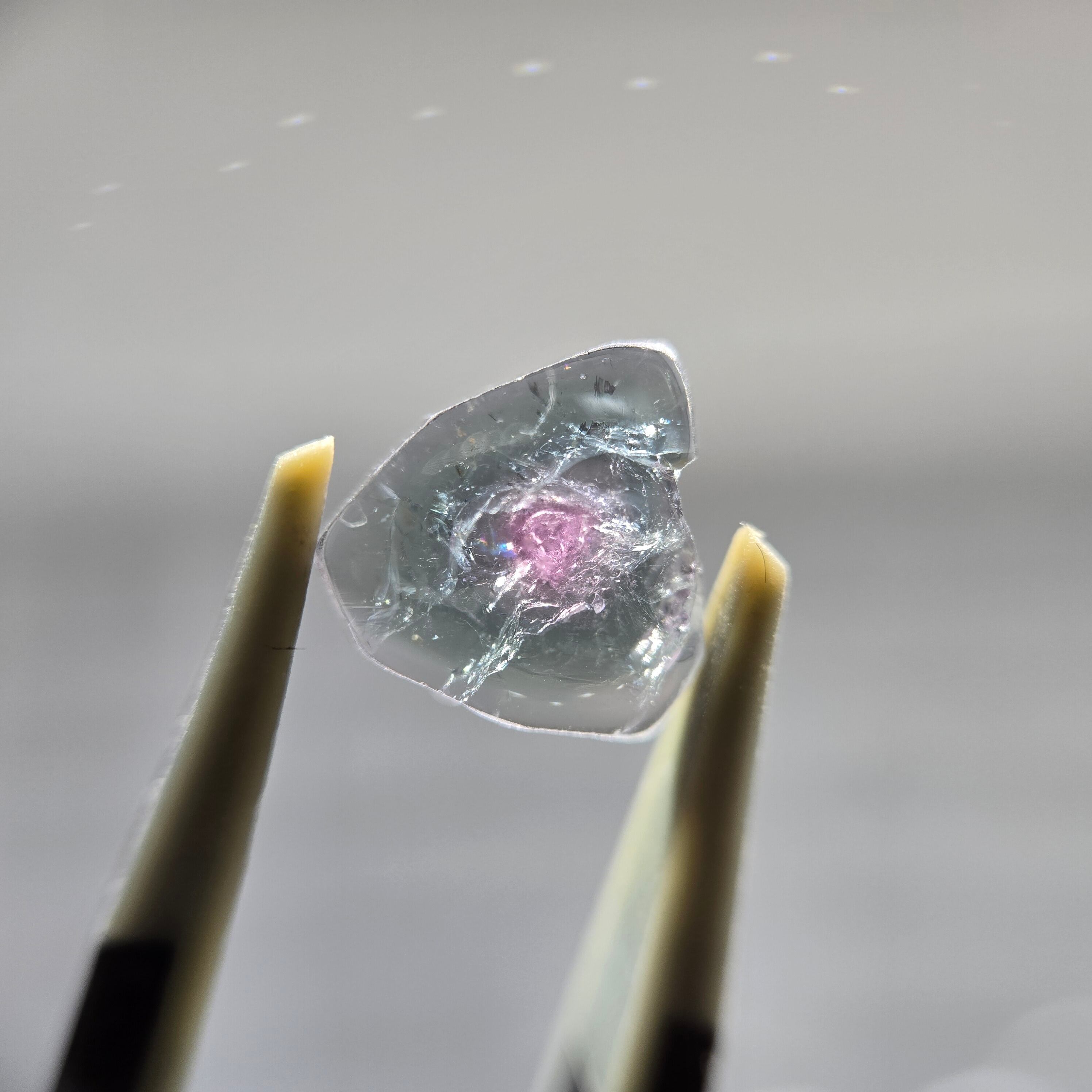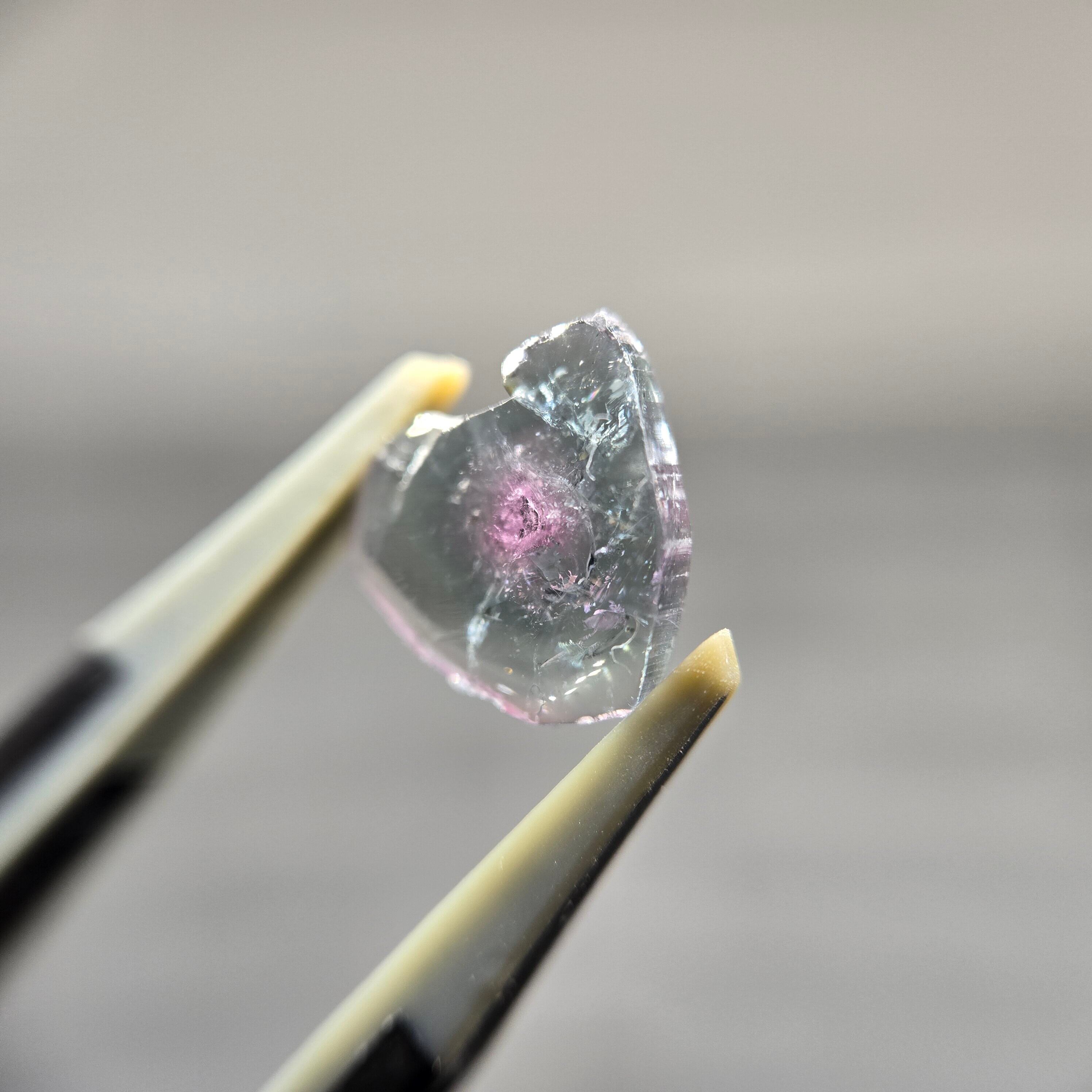 ・グレーイッシュなグリーンブルーの中心に、うっすらピンク色の部分が見えます。