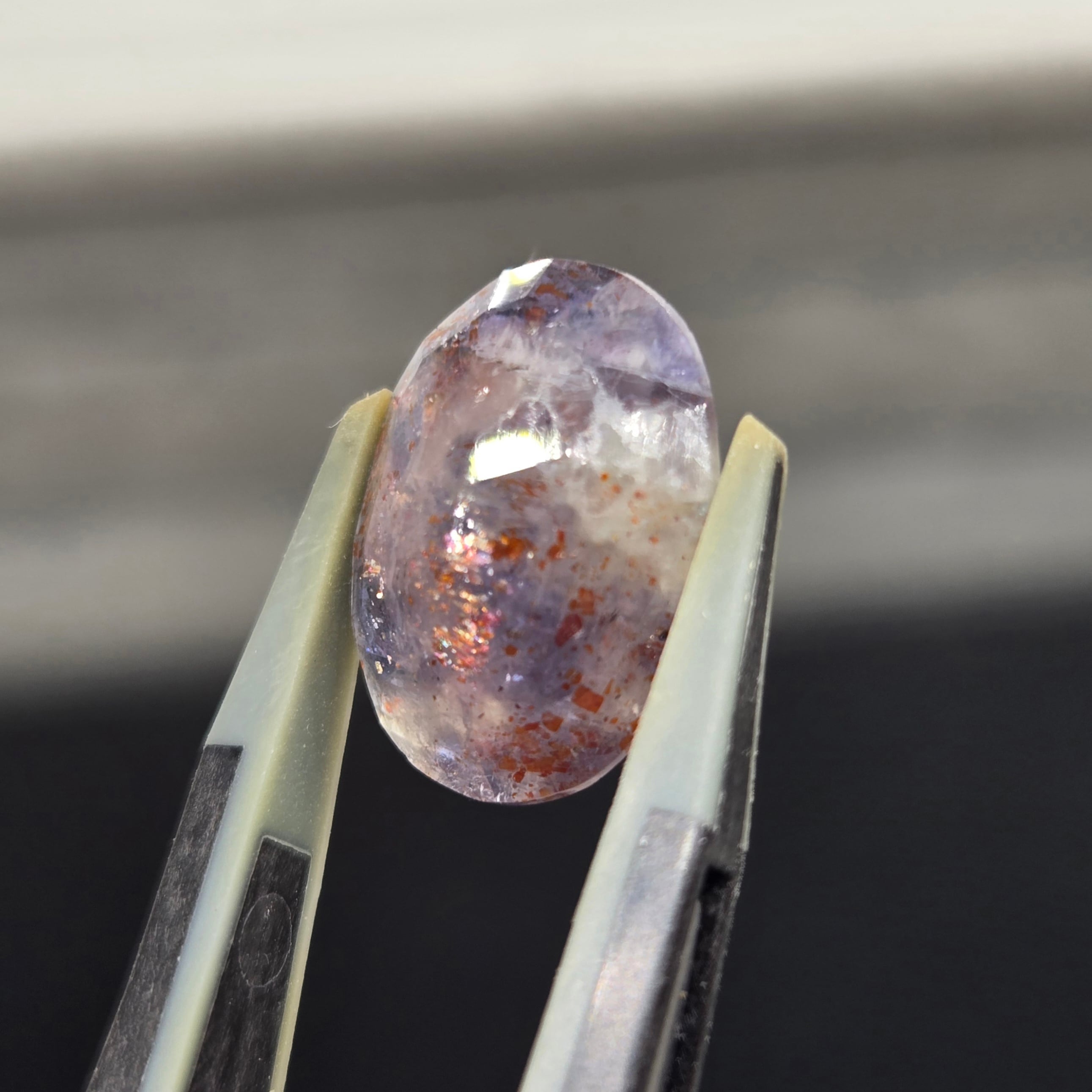 ・半透明な石に内包物を研磨によって顕在化させアベンチュレッセンスを際立たせた石です。