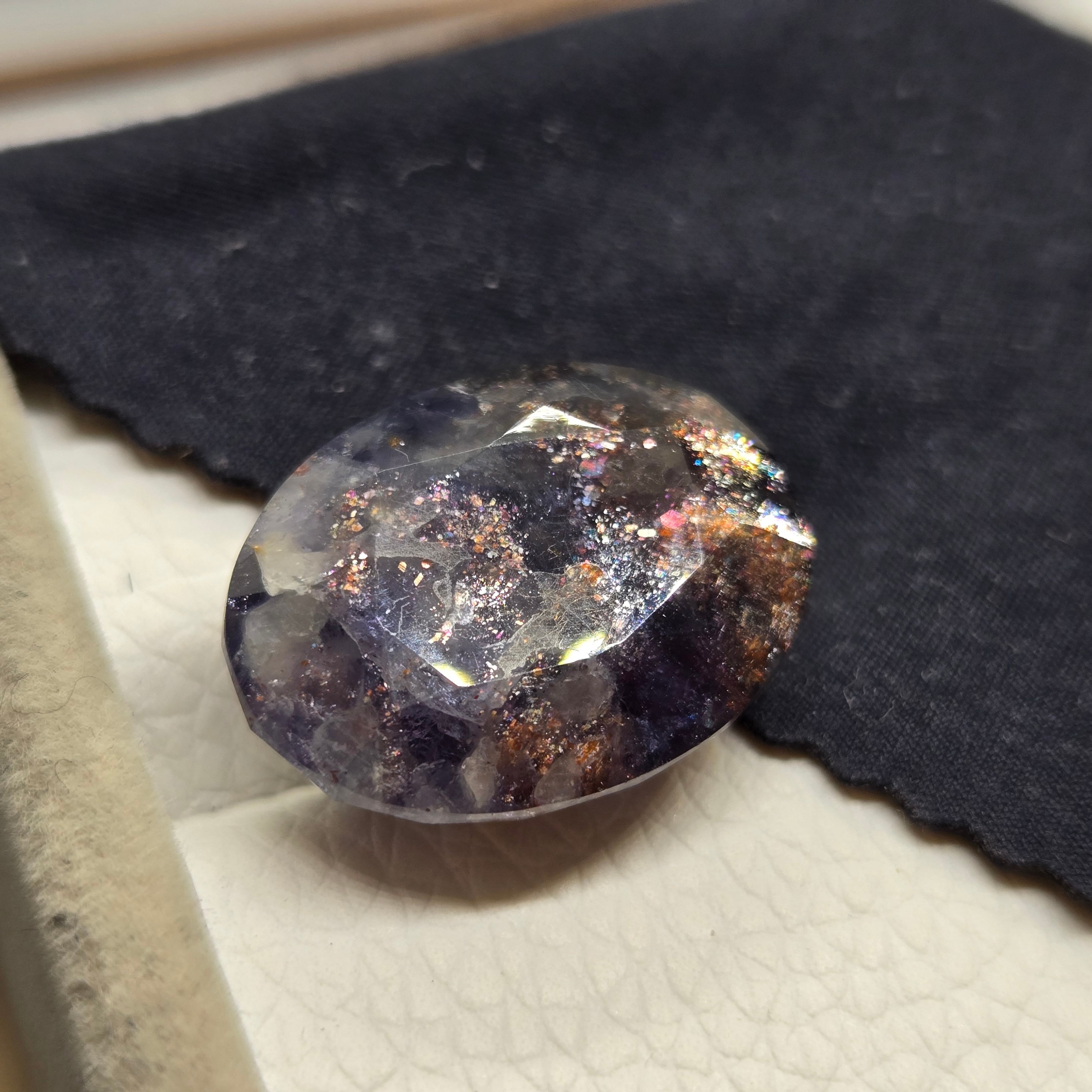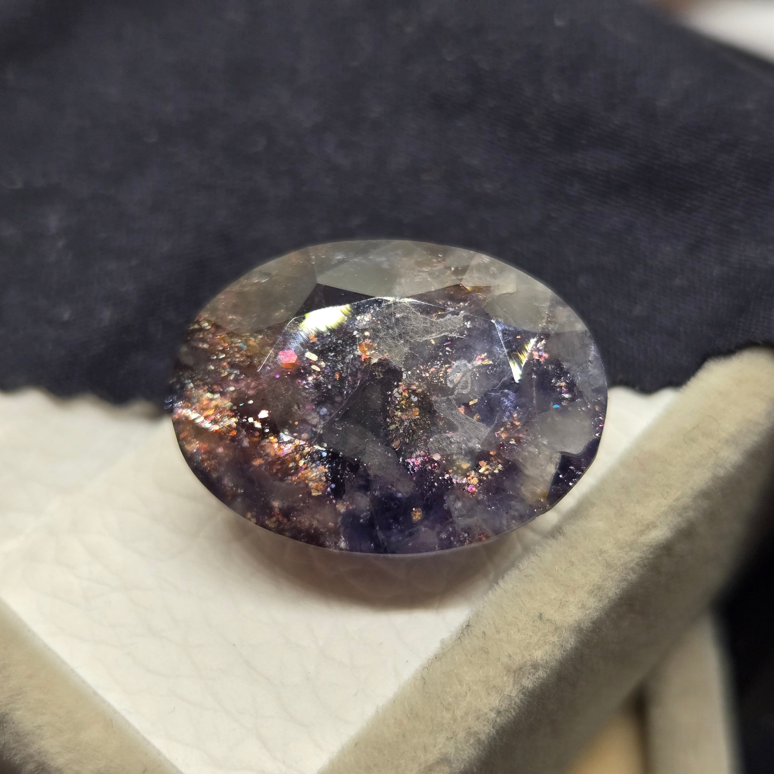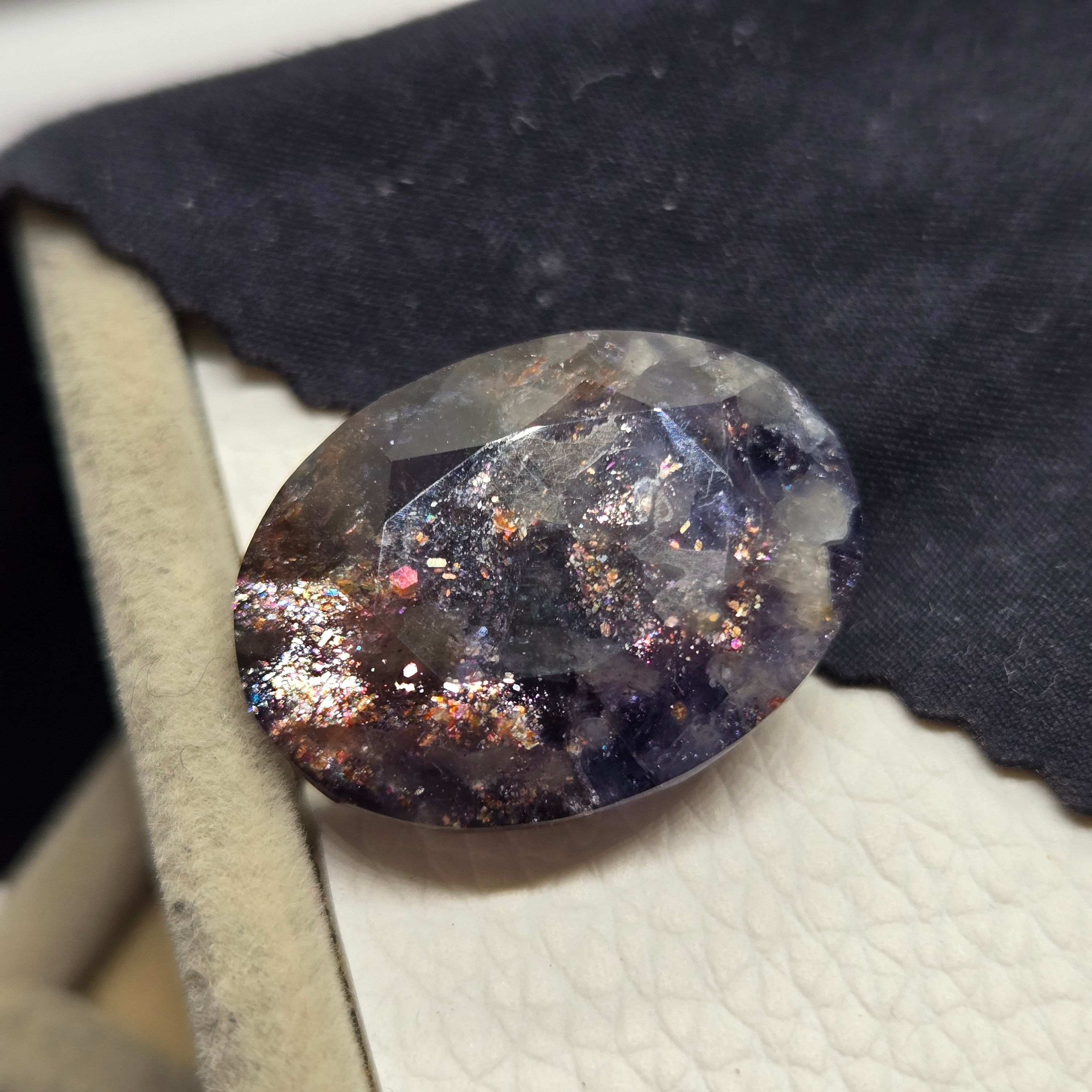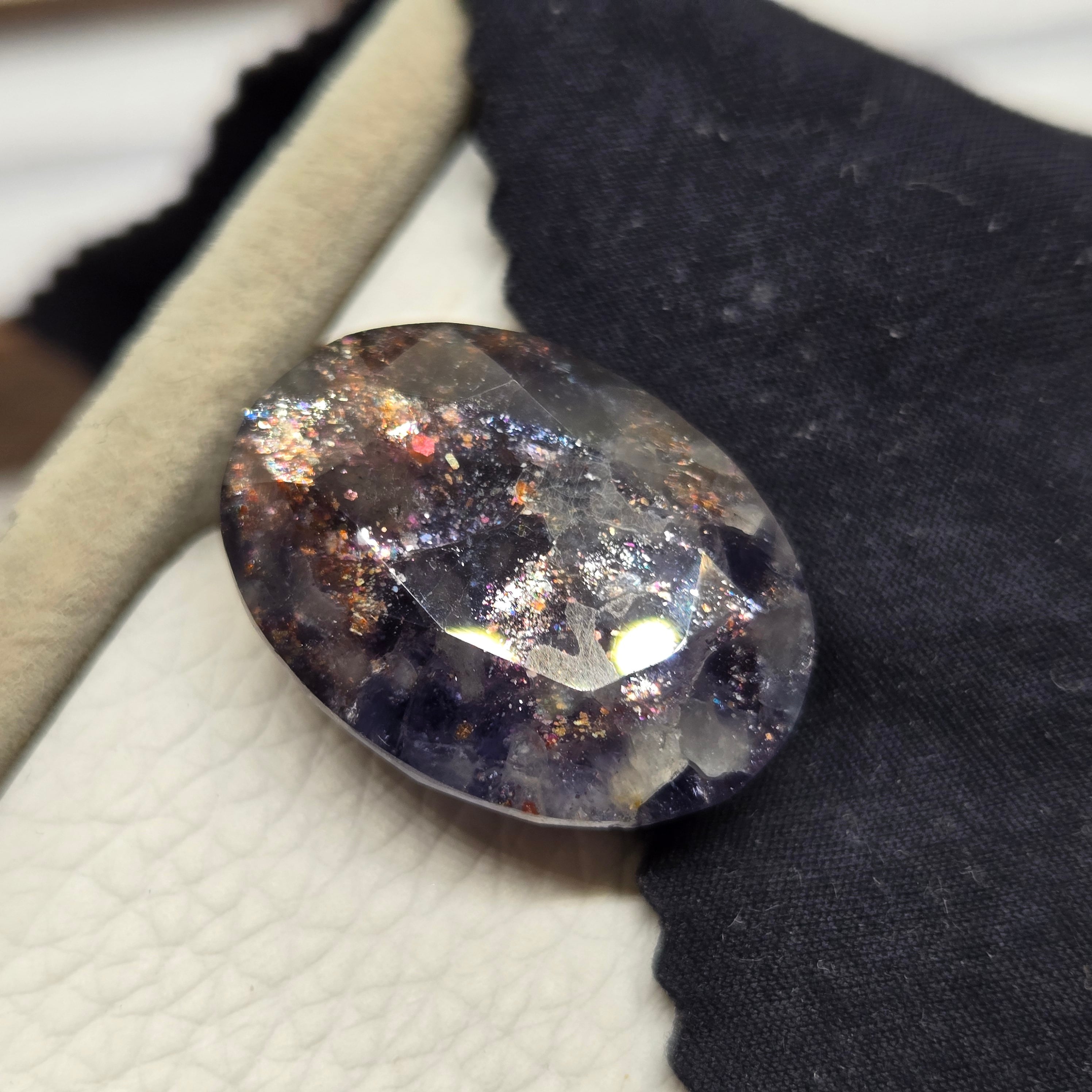 ・半透明な石に内包物を研磨によって顕在化させアベンチュレッセンスを際立たせた石です。