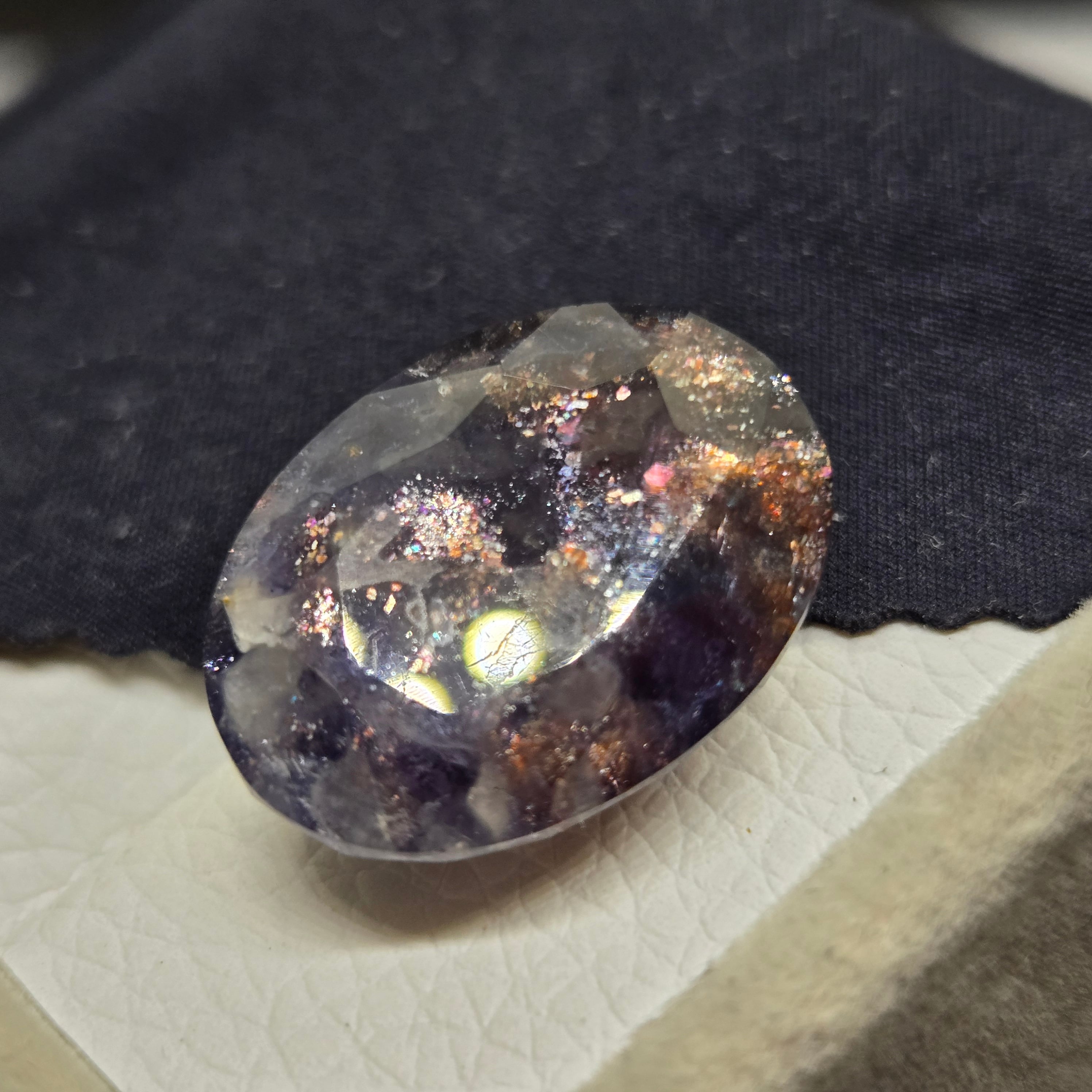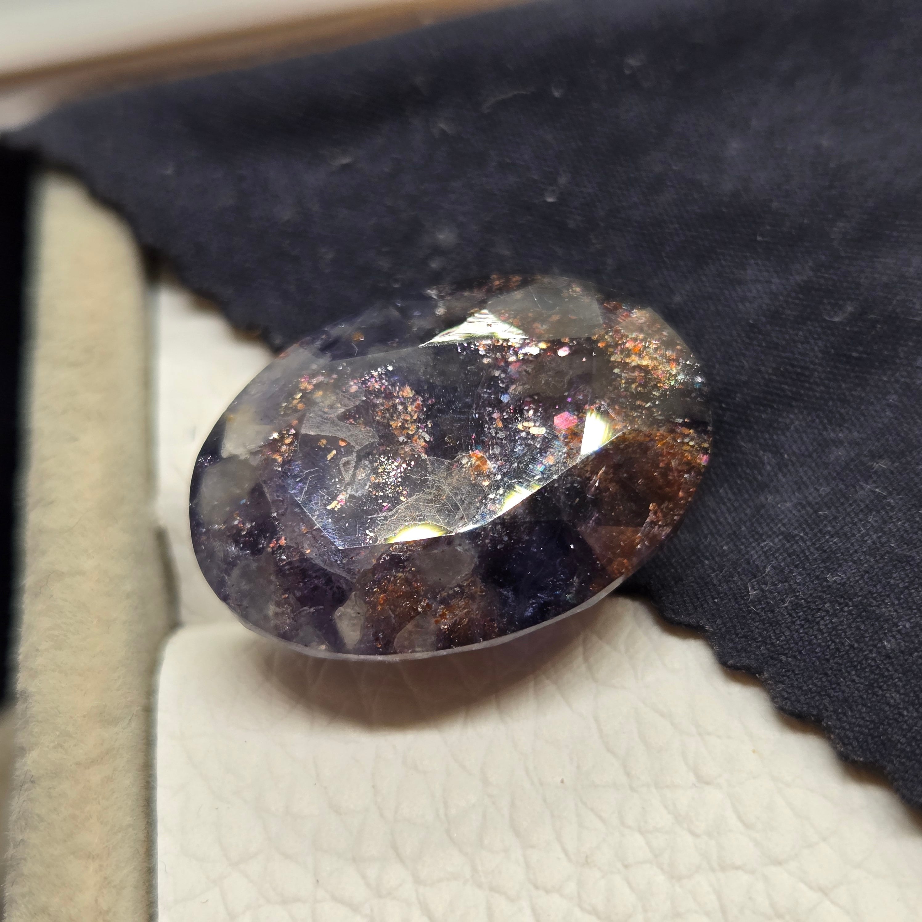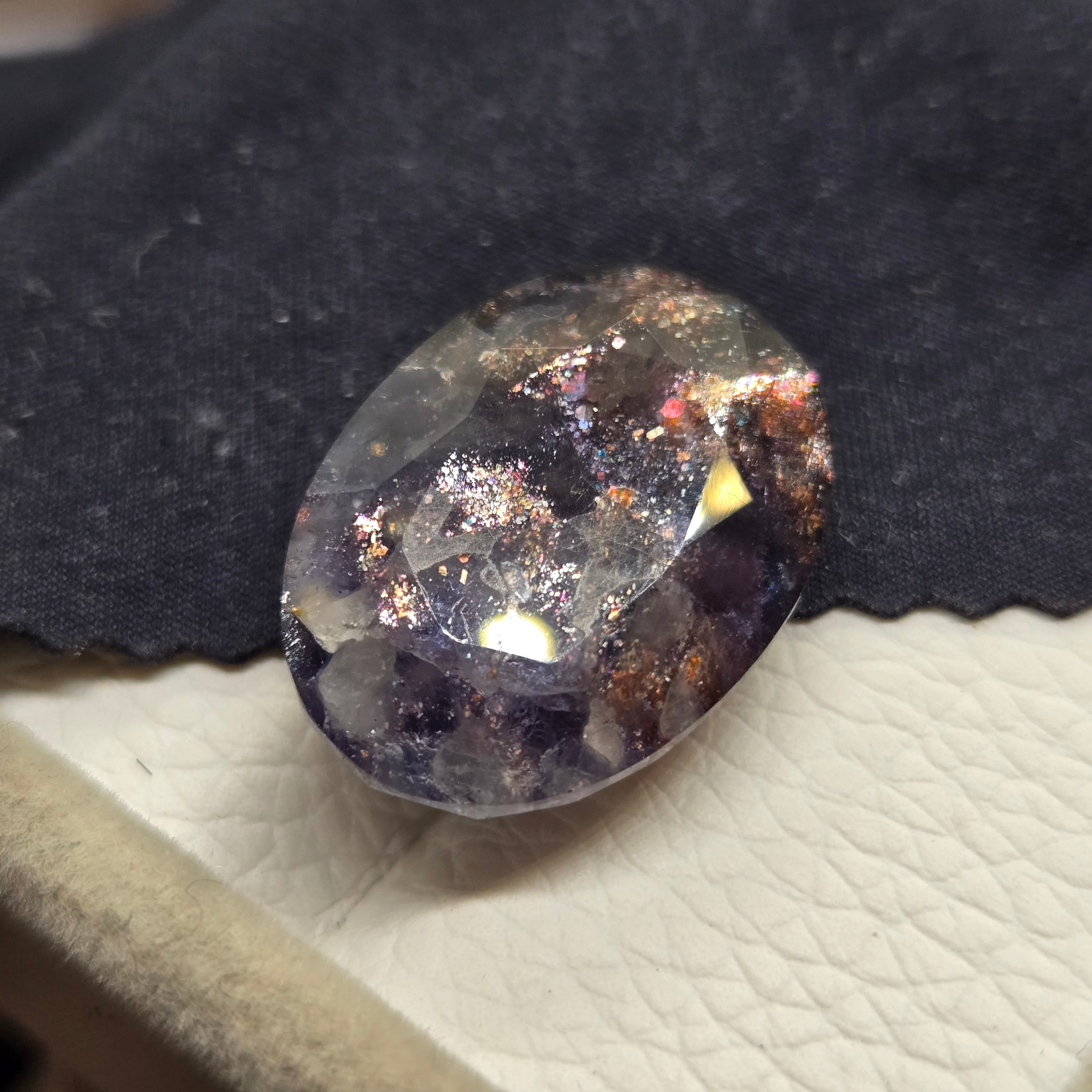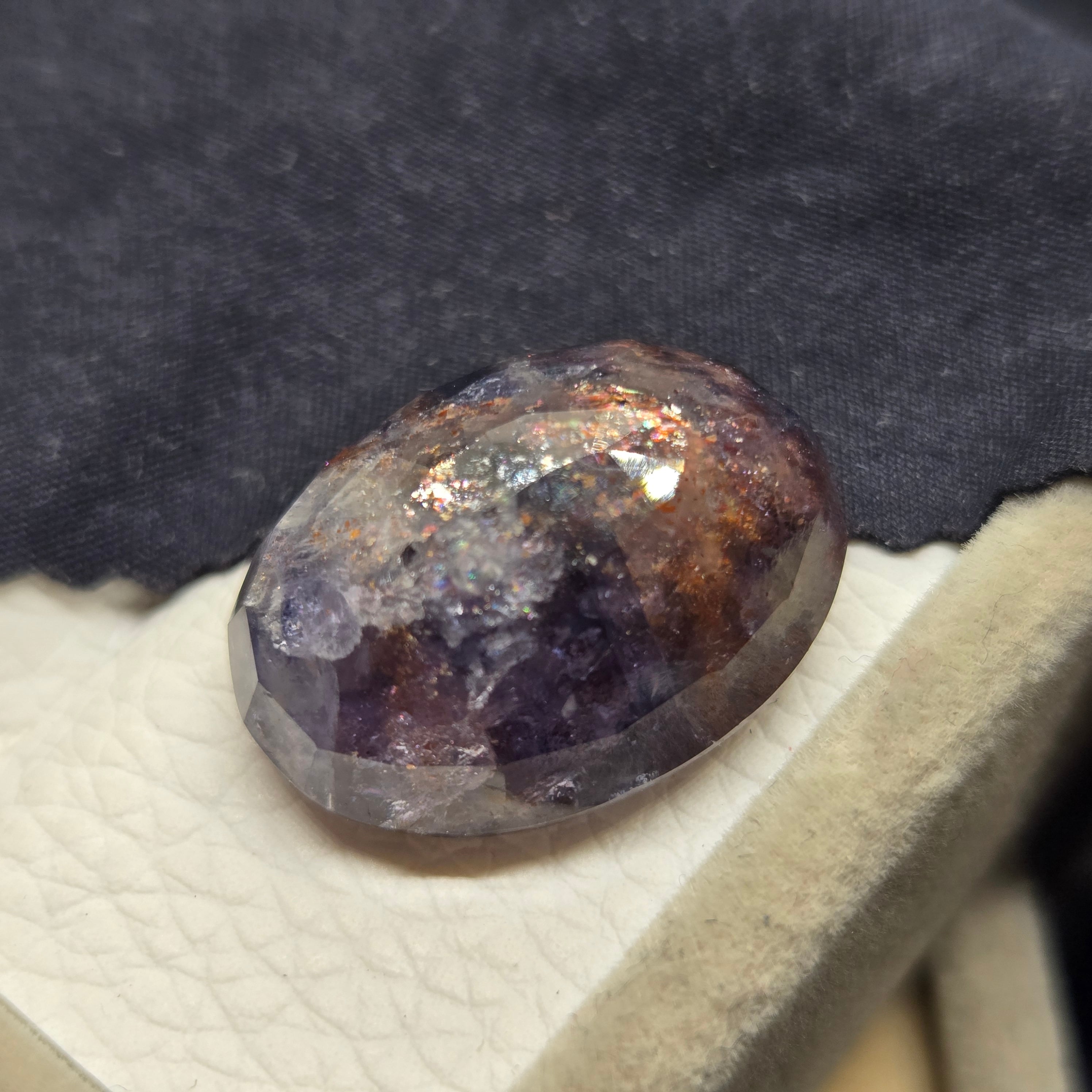 ・半透明な石に内包物を研磨によって顕在化させアベンチュレッセンスを際立たせた石です。