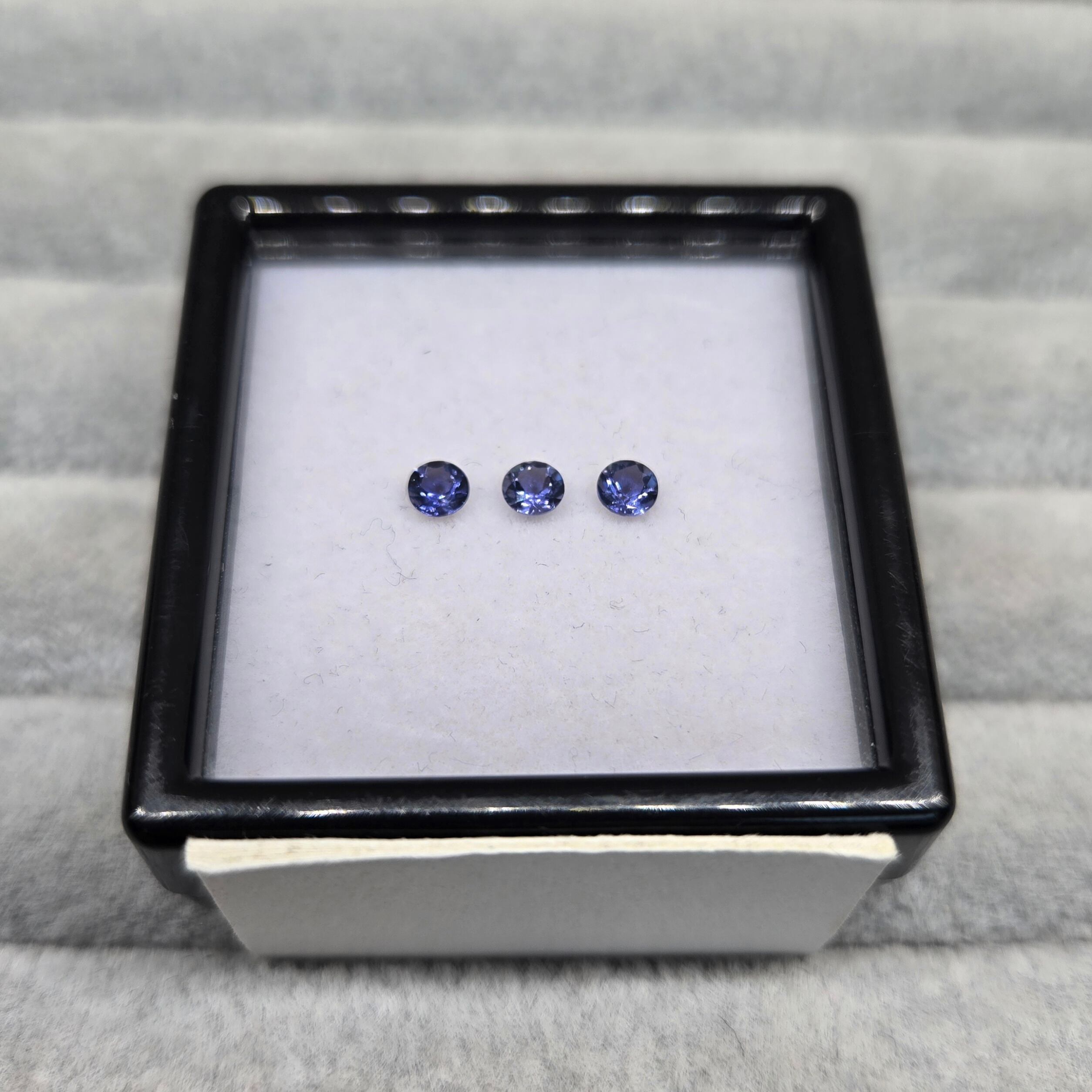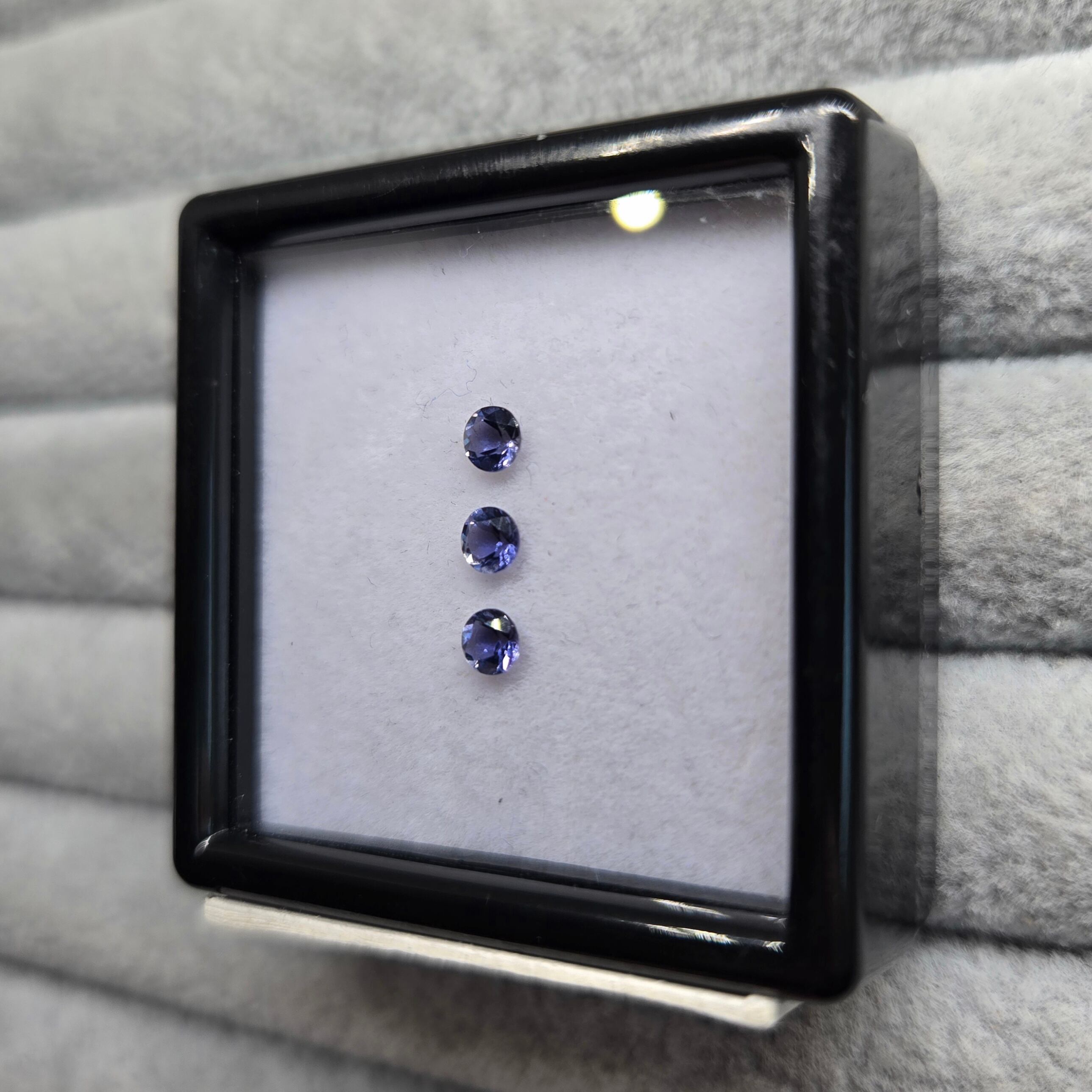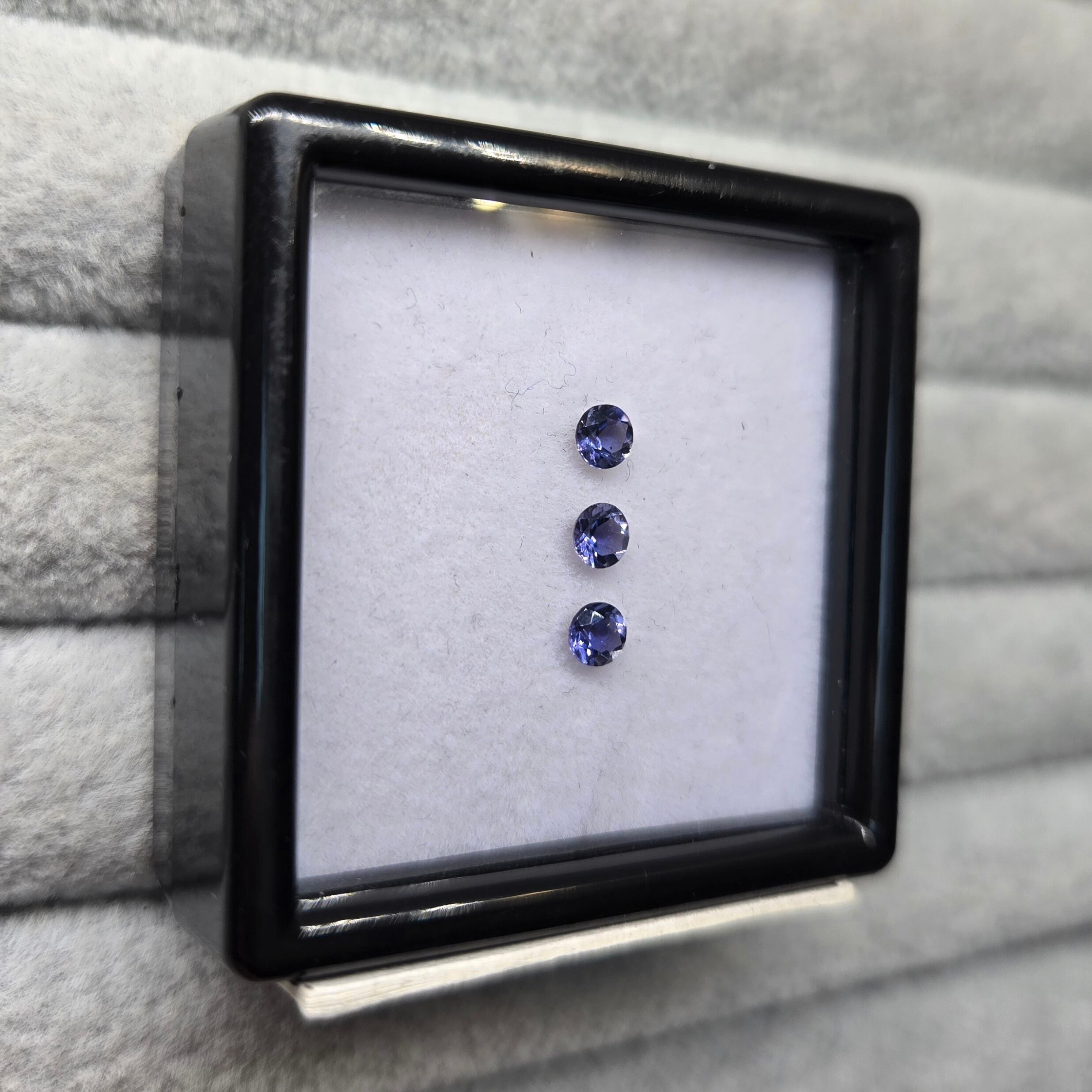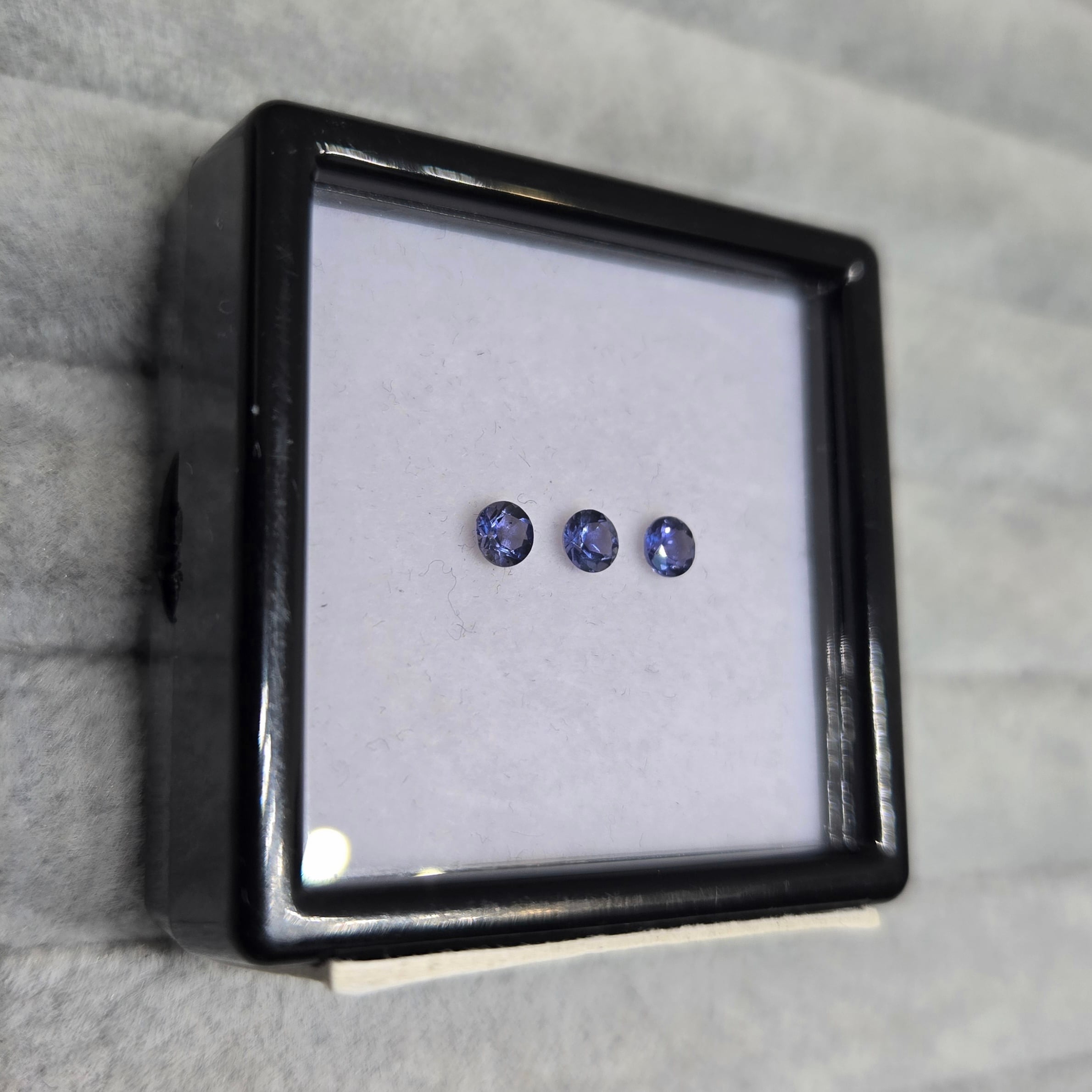 ・正面から見たときは紺色ですが、向きを変えると銀色、カラーレスのようにも見える多色性のある石です。