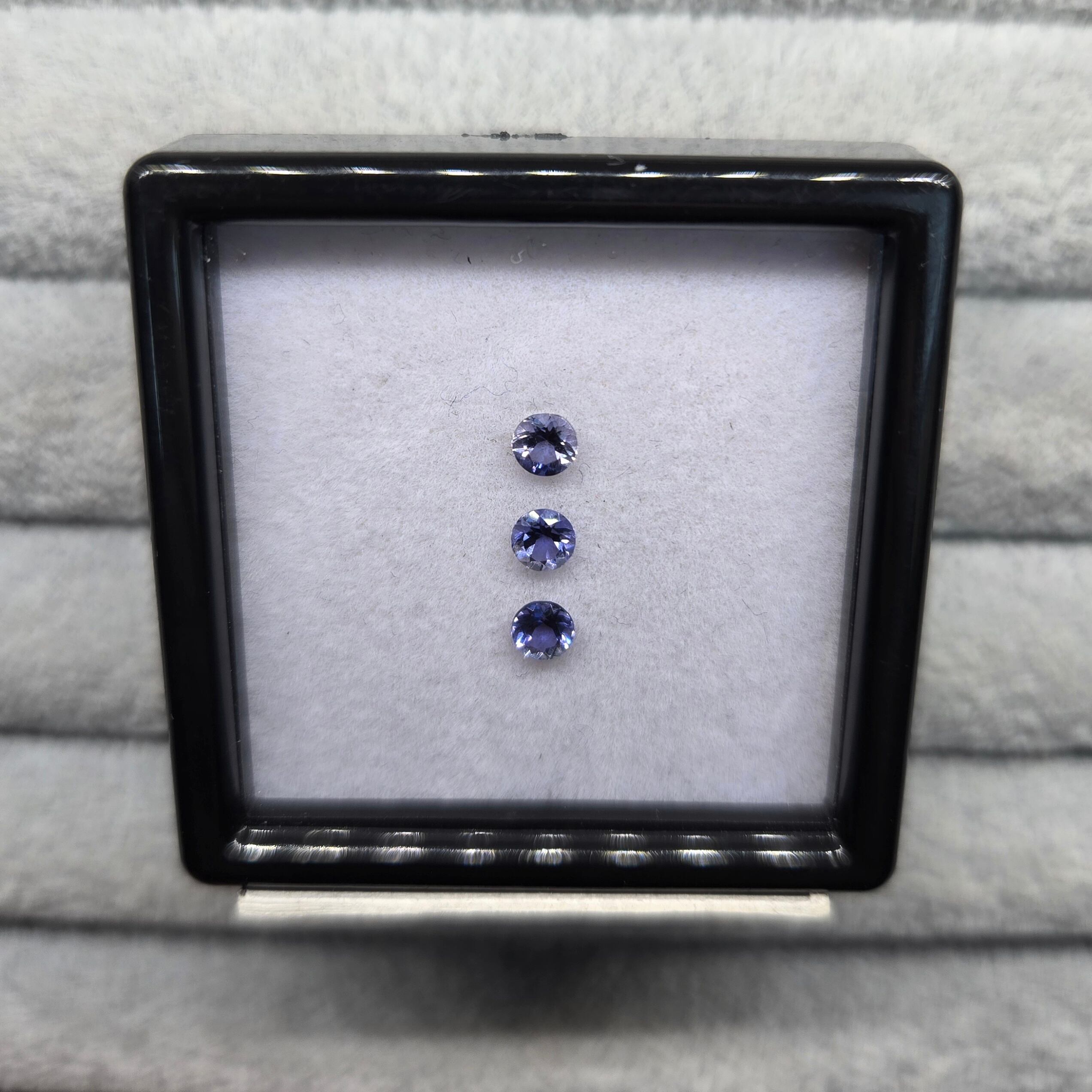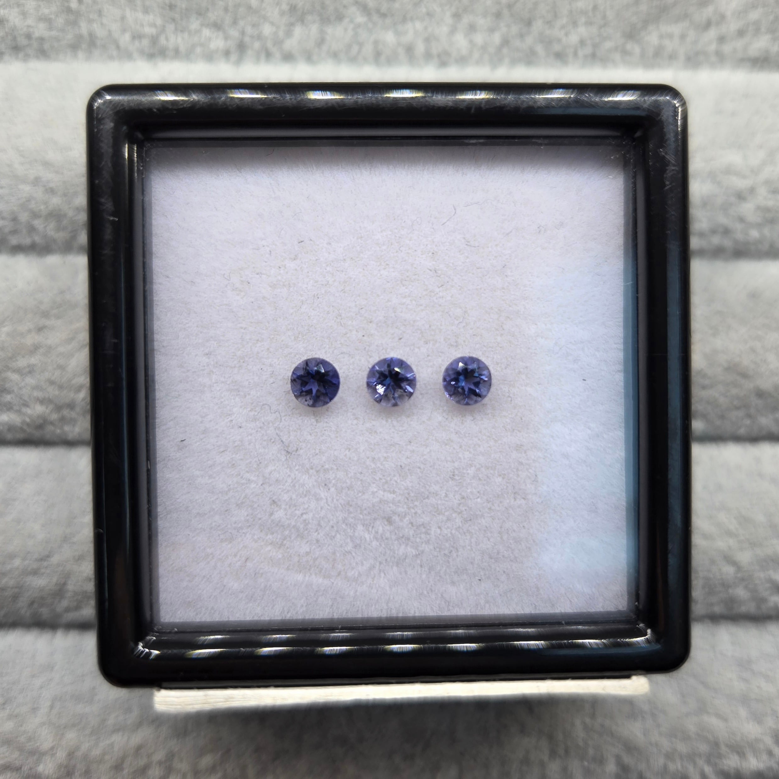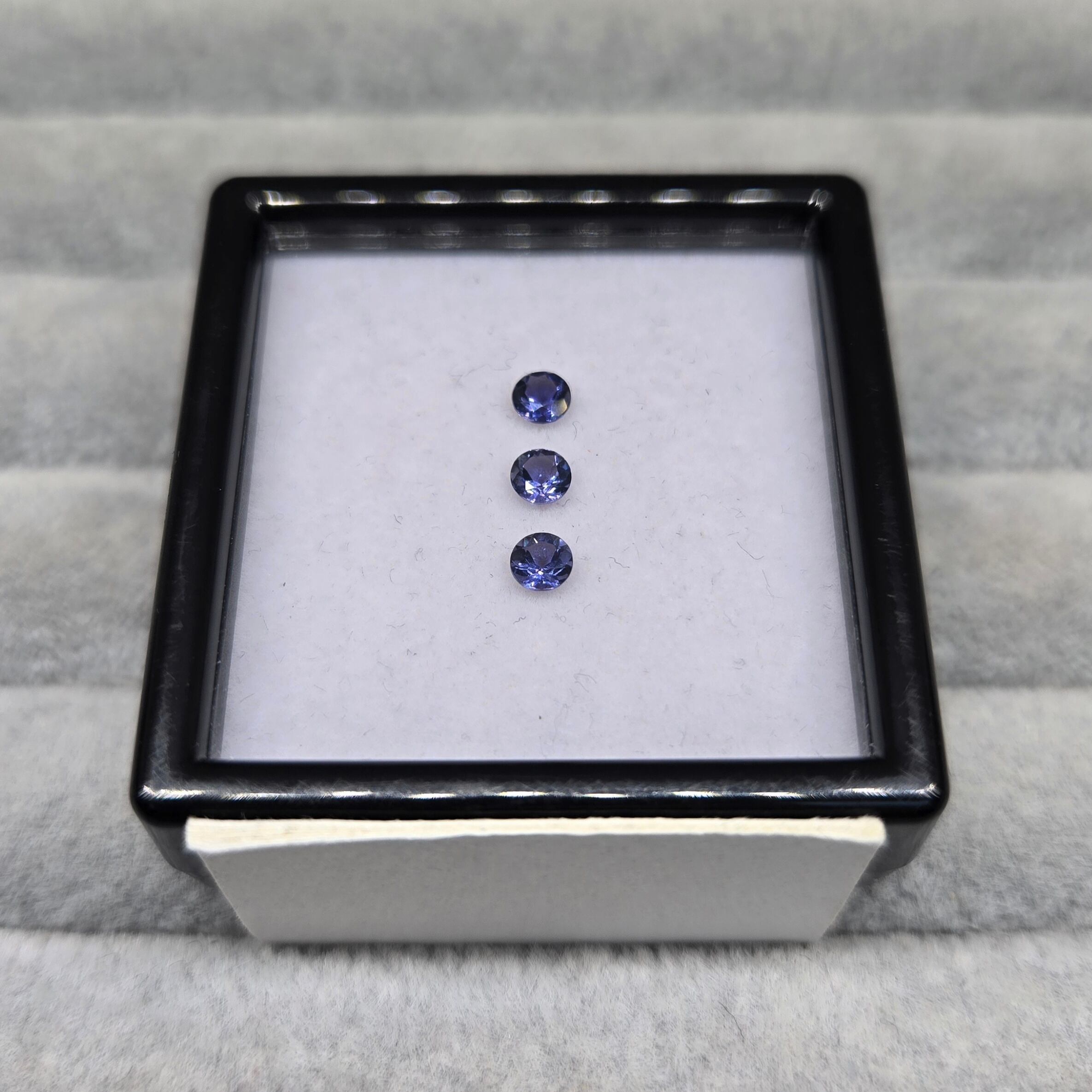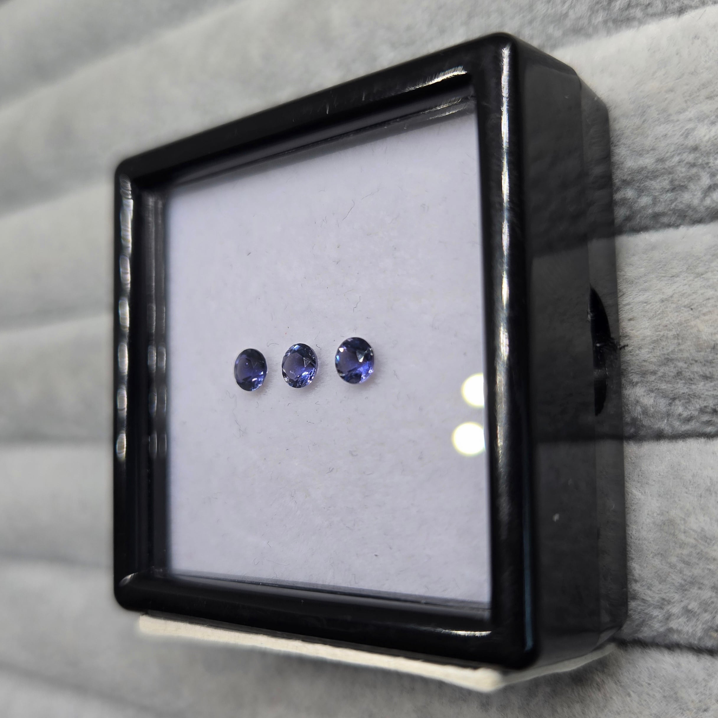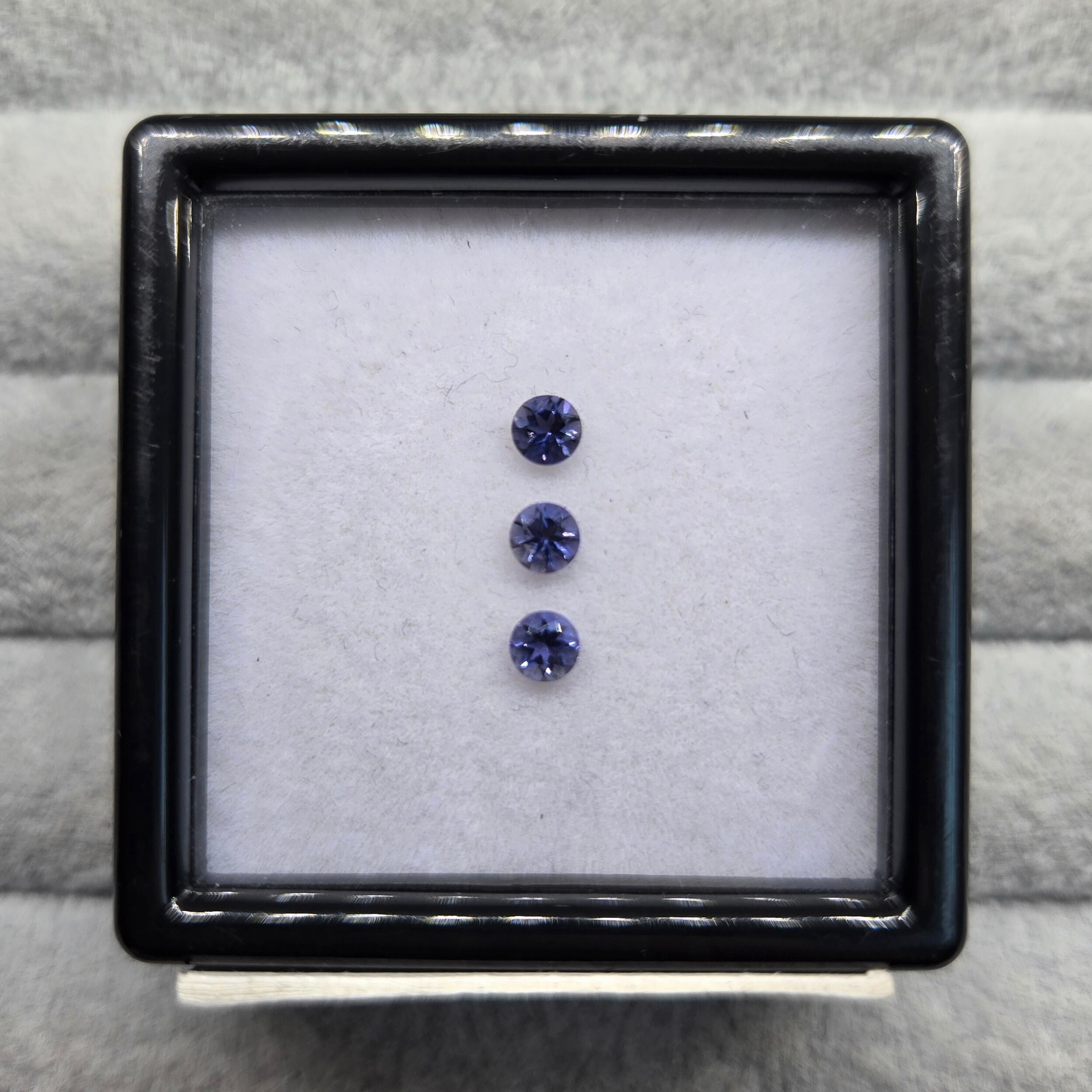 ・正面から見たときは紺色ですが、向きを変えると銀色、カラーレスのようにも見える多色性のある石です。