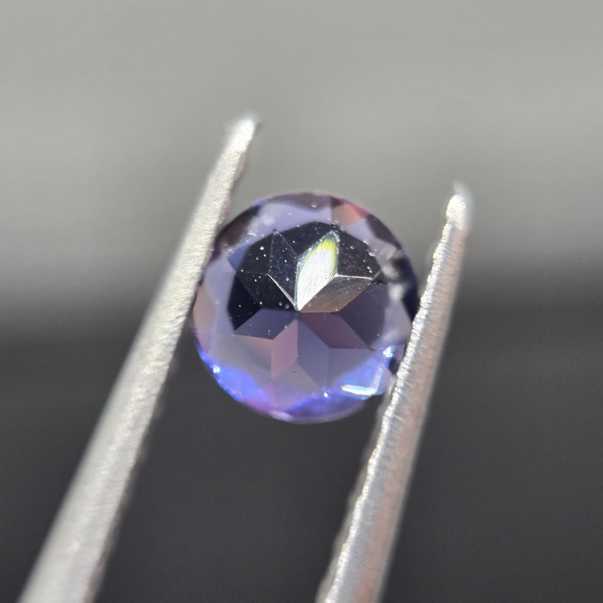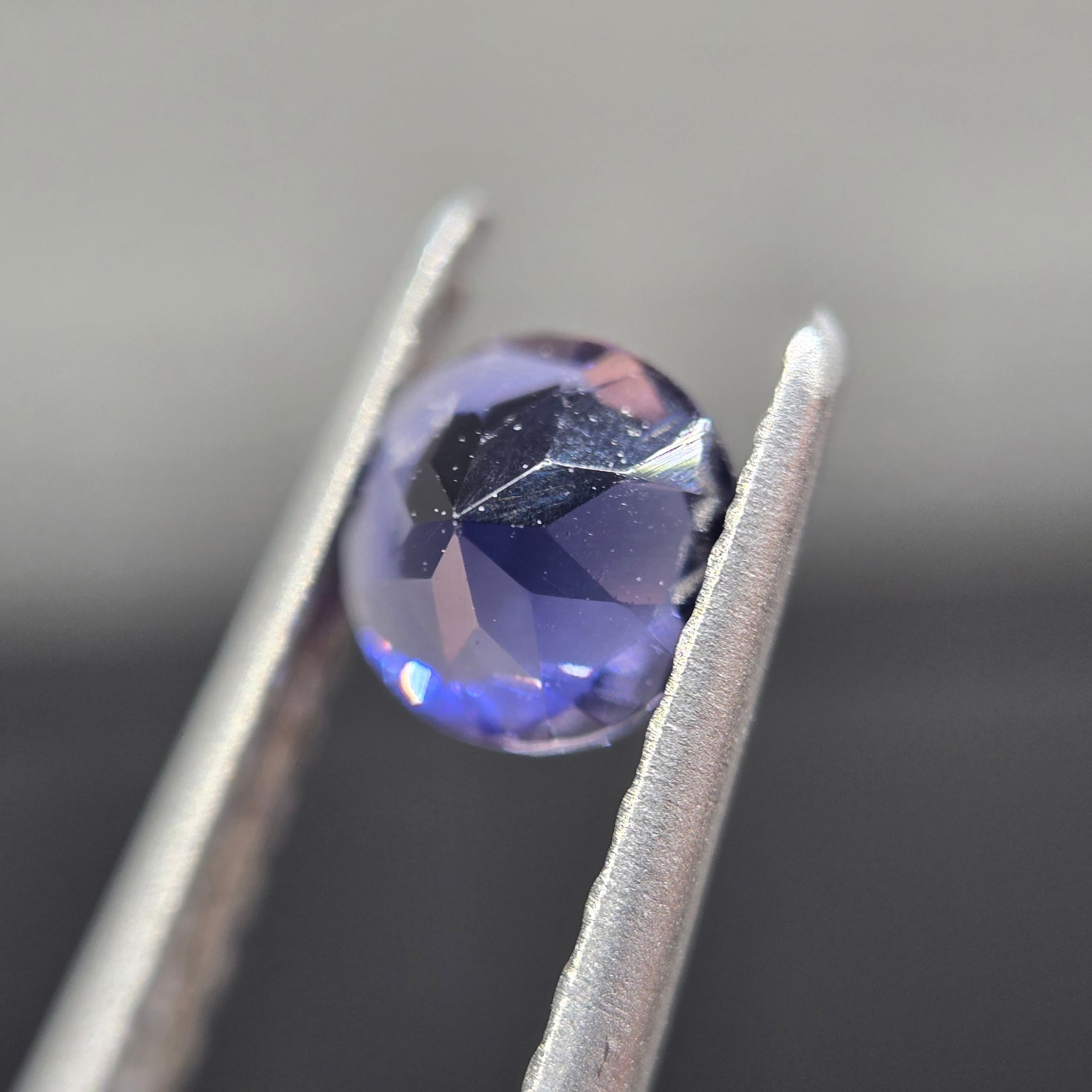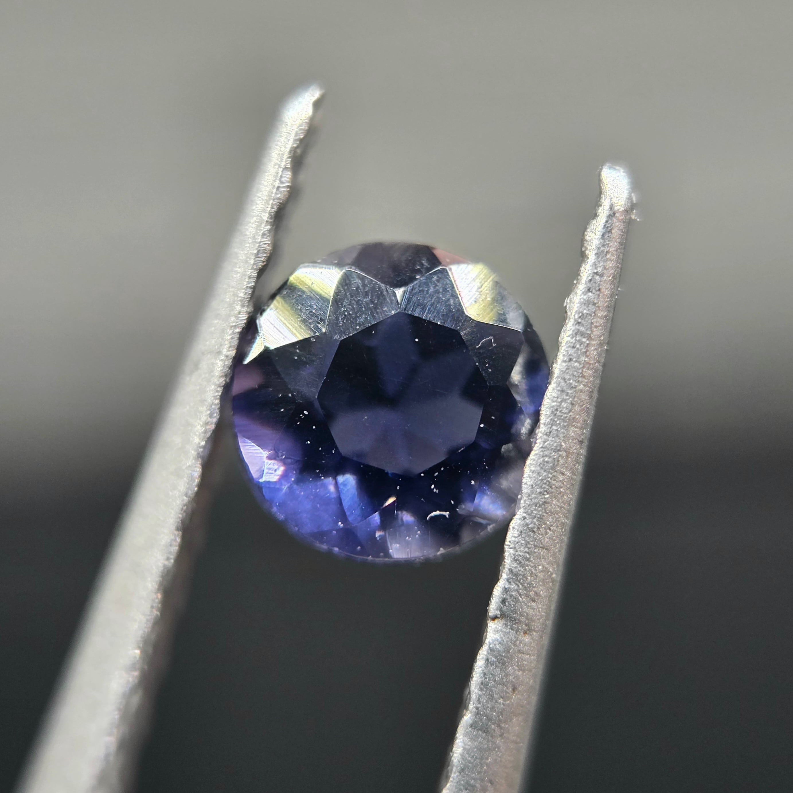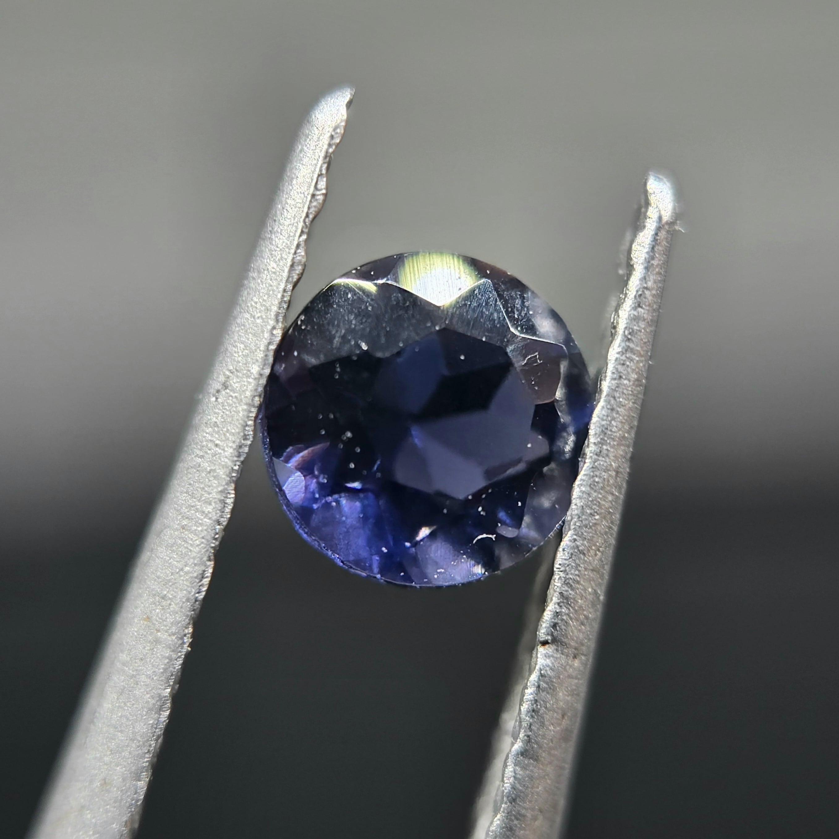 ・正面から見たときは紺色ですが、向きを変えると銀色、カラーレスのようにも見える多色性のある石です。