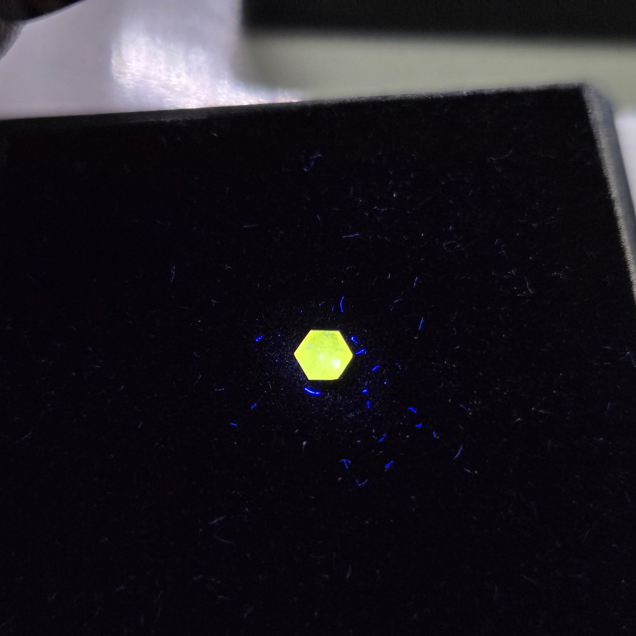 ・UVライトにより、黄色に蛍光します。